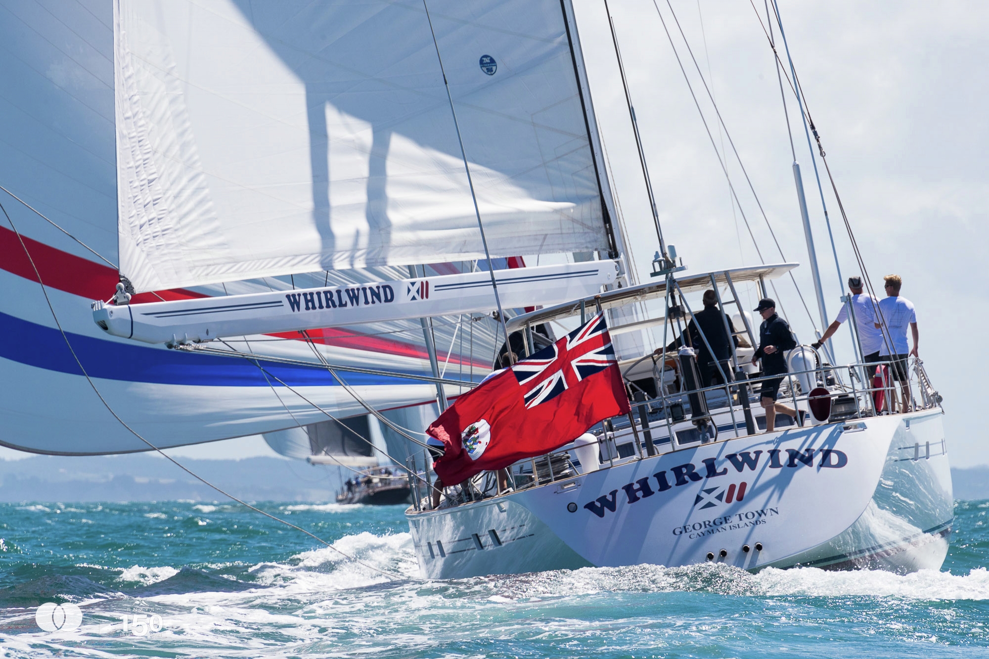 The final leg was the longest of the day, with a long downwind run from the second mark positioned off Long Bay all the way to the finish line set off North Head. Sassafras, Whirlwind and Tawera continued -