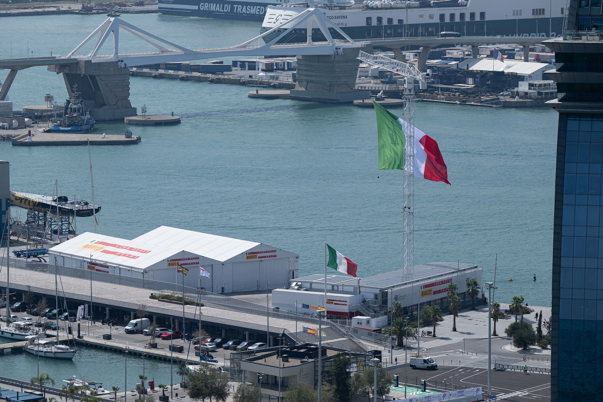 El Portal de la Pau está enfrente a esta base, ofrece unas vistas estupendas del barco cuando atraca y regresa, así como del propio puerto con Montjuïc al fondo. Otro buen mirador es el muro del puerto deportivo que hay detrás. Sin embargo, ten en cuenta que los aficionados italianos son numerosos, por lo que puede resultar difícil conseguir un buen punto de observación.