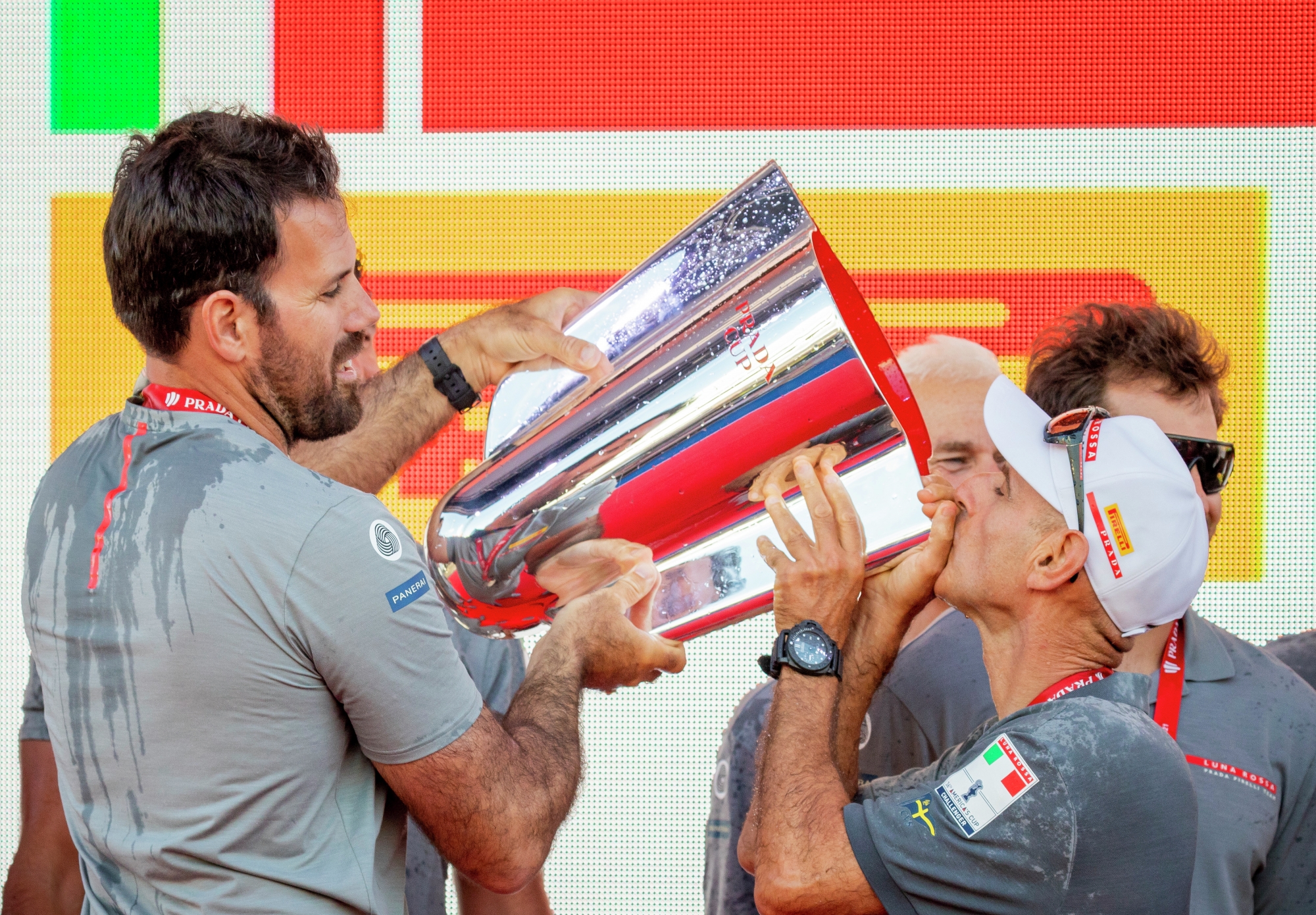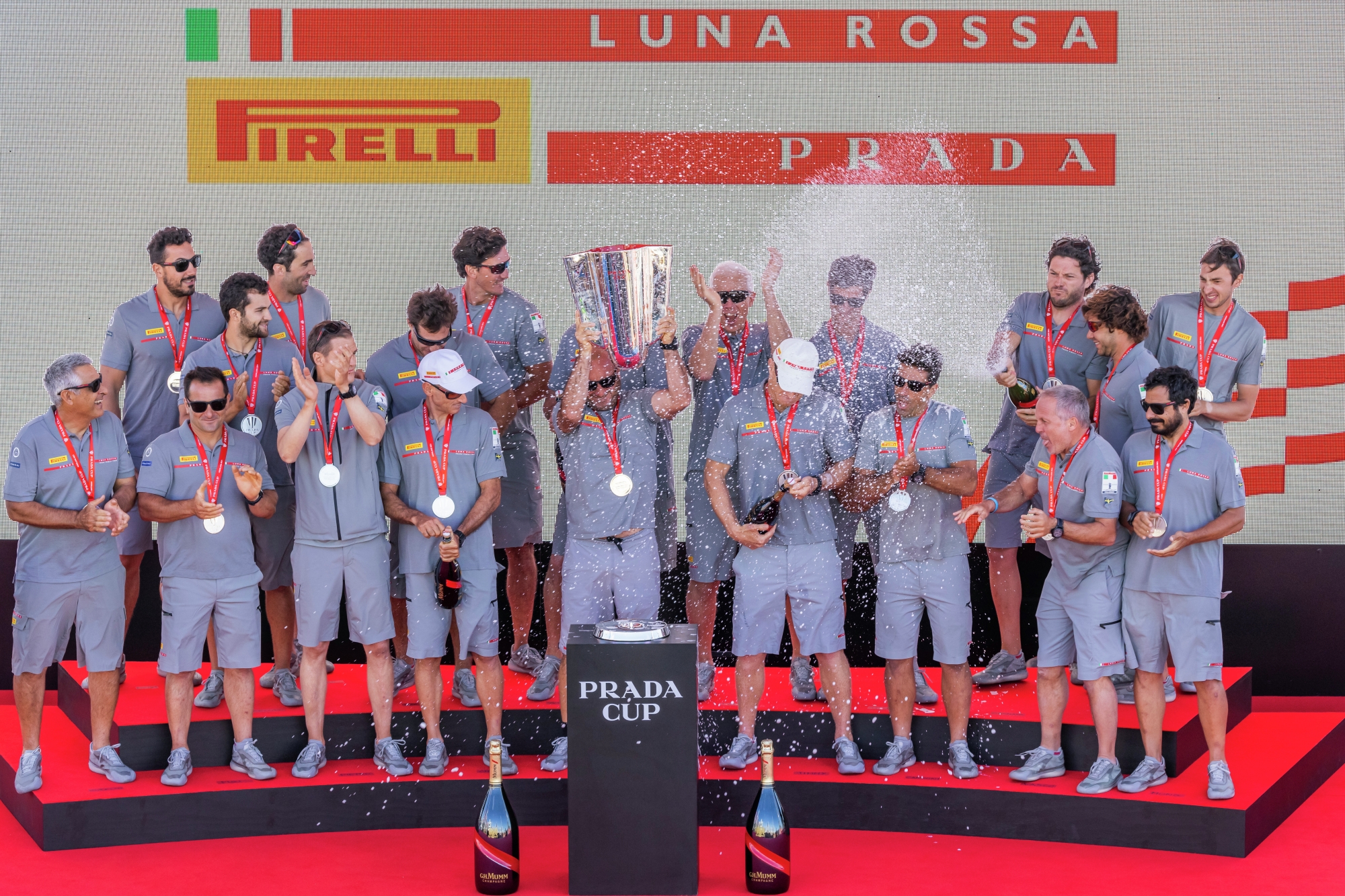 {{'2021-02-23 05:30:00' | amTimezoneGlobal | amDateFormat:'D MMMM YYYY'}} PRADA CUP FINAL – PRIZE GIVING © COR 36 | Studio Borlenghi Celebrate the win of the PRADA Cup with Luna Rossa Prada Pirelli Team.
