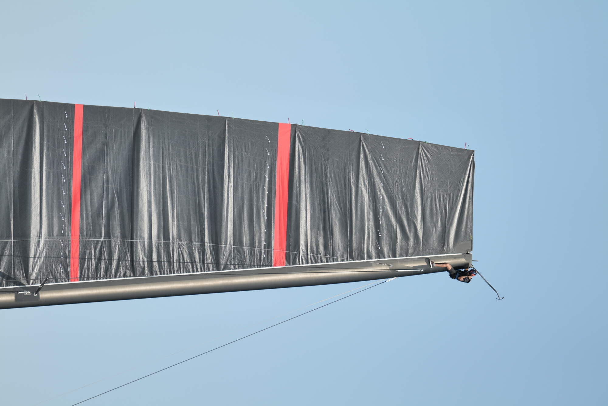 That was enough and another tick in the box on the exhaustive programme before the sails were lowered and the team embarked on a series of fast run tow tests concentrating on pitch and ride height.