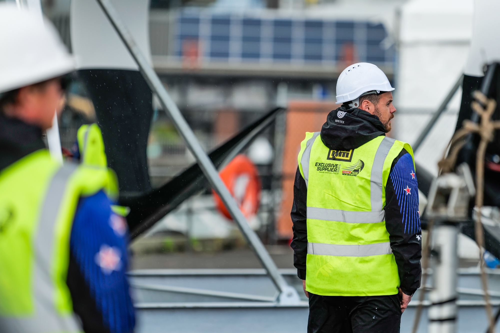 Returning to New Zealand from the European summer circuits, Pete Burling and Blair Tuke wasted no time in re-joining the extensive Kiwi testing programme, stepping aboard Emirates Team New Zealand’s AC40 for a blustery first taste of the most sensational boat of 2022. Nathan Outteridge who’s been steering one pod during the initial outings alongside Olympic bronze medallist Sam Meech were again onboard for an intense afternoon session having craned in at 11.30am and docked-out just an hour later with the rig set for the tow to the sailing area.