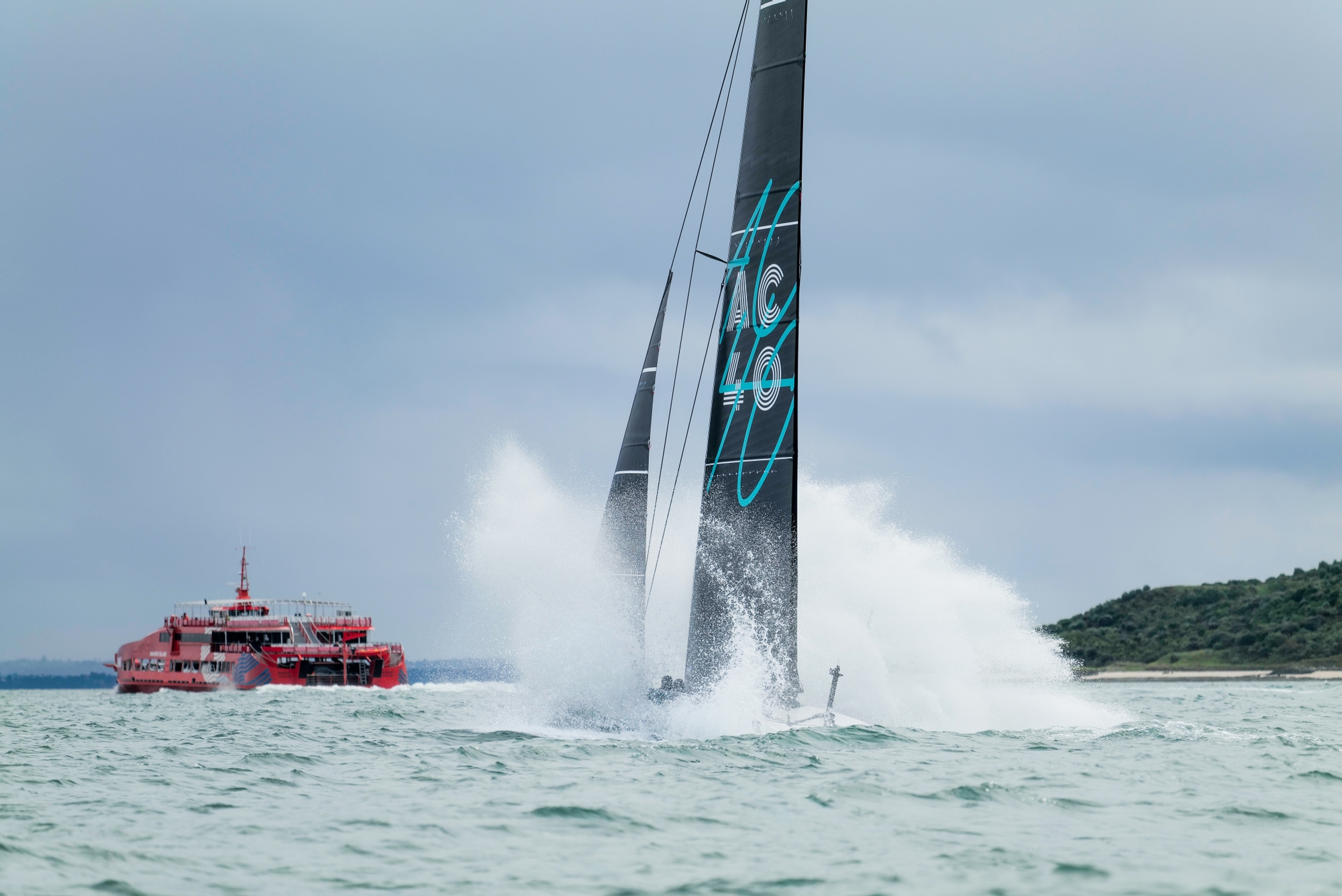 After some getting-to-know-the boat-runs in sheltered waters, pretty soon the team were looking for more testing conditions: “We were tucked in behind Waiheke Island for a bit, so we went out to find more waves in Shark Alley,” commented Tuke, “And then we lined up right on the waves of the Waiheke ferry which is pretty similar swell to what we’ve been sailing in Cadiz recently.”