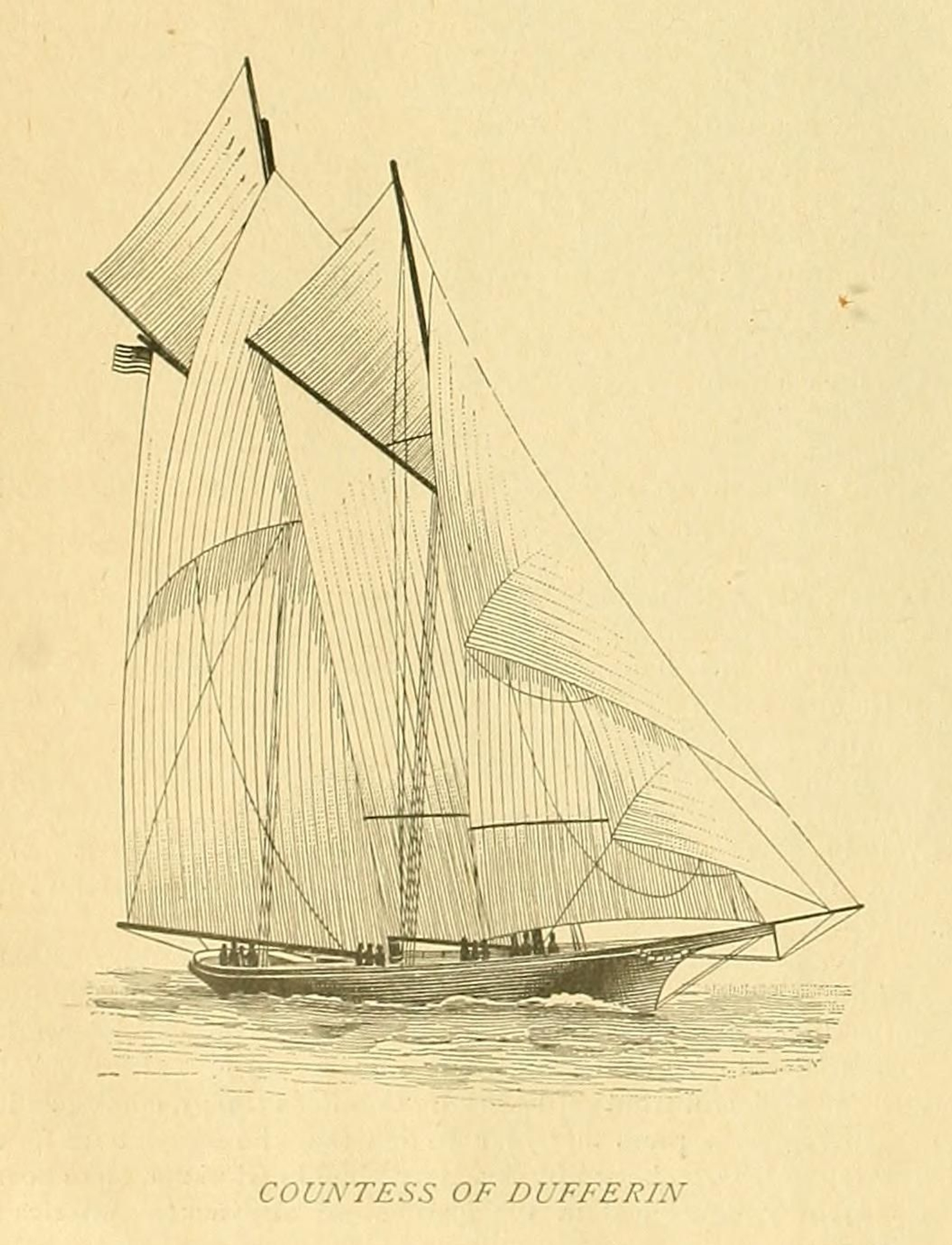 The Canadian challenges most notably saw a shift in boat styles from the schooner to the sloop although both challengers – the Countess of Dufferin (schooner) of 1876 and the Atlanta (sloop) of 1881 – were inland boats brought down from the Canadian lakes and of such varying quality that they were ridiculed by the millionaire owners, their crews and the old salts in New York.