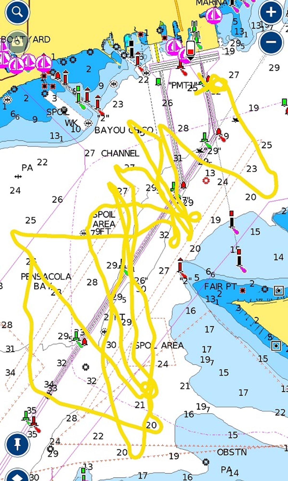 Patriot sailed up/down wind approximately 16 legs combined, traveling approximately 28.2 miles at an average speed of 11k/2hrs24min. The north breeze had approximately 20 degree oscillations. The wind direction (approx 035/5-9k) made it possible to use the entire length of the bay. Patriot seemed to complete tacks on foil but would then quickly fall off. The mast seemed to have more rake as mentioned in the interview.