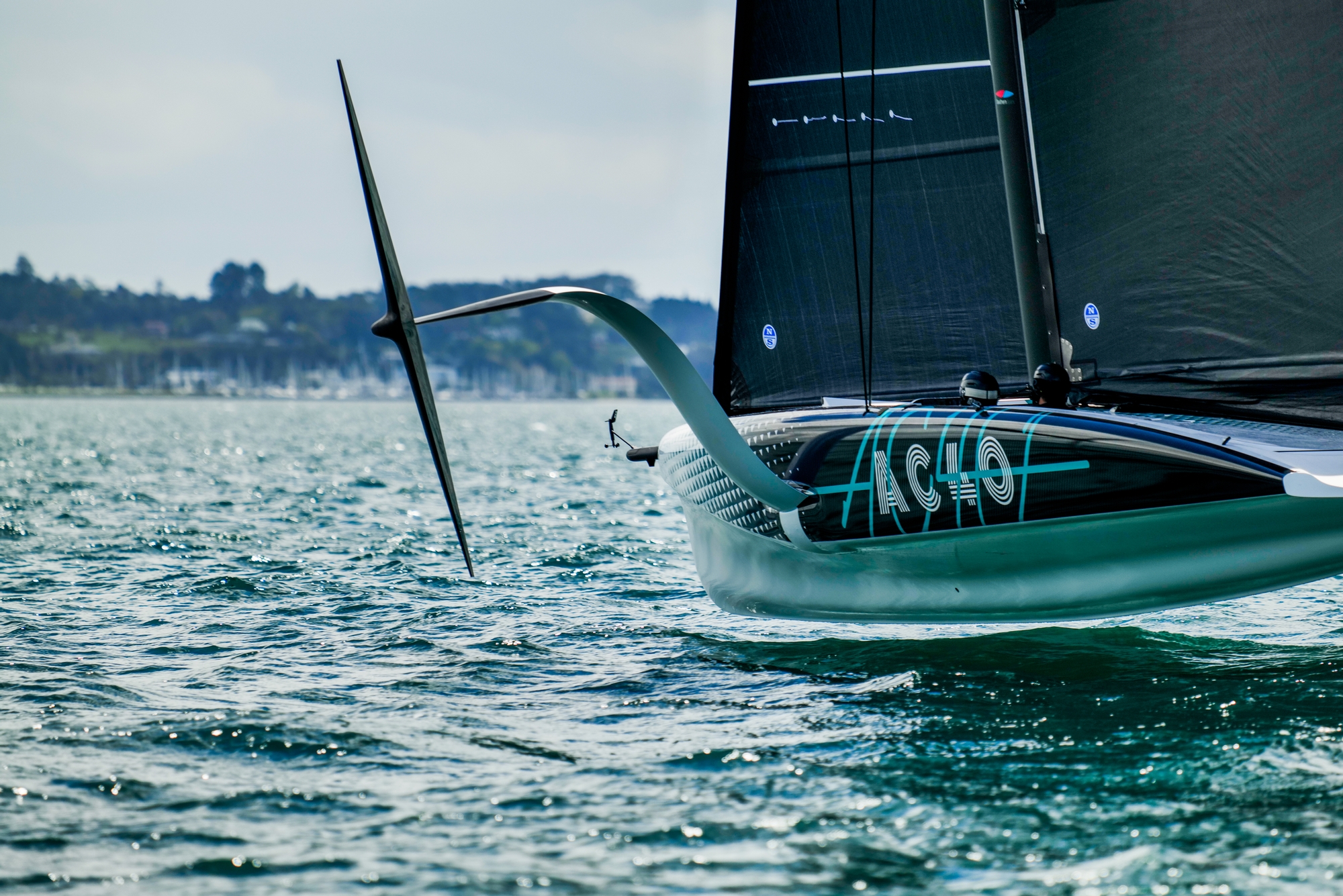 As observers and interested spectators, we’ve been lucky enough to be back-seat passengers on the roller-coaster ride of the Emirates Team New Zealand learning curve throughout the commissioning of the AC40. But now that it’s an LEQ12, (we think), the grind of straight-line data collection and mode discovery becomes the dominant part of the long training sessions and today was just one of those days out on a beautiful early summer Auckland Harbour. Yes, there were 28 tacks and 19 gybes (note – ETNZ have done way more manoeuvres than any other team to date) but there was also an awful lot of straight-lining perhaps at the behest of the design office who really want to gather as much data as possible about how these boats can be tweaked for speed.