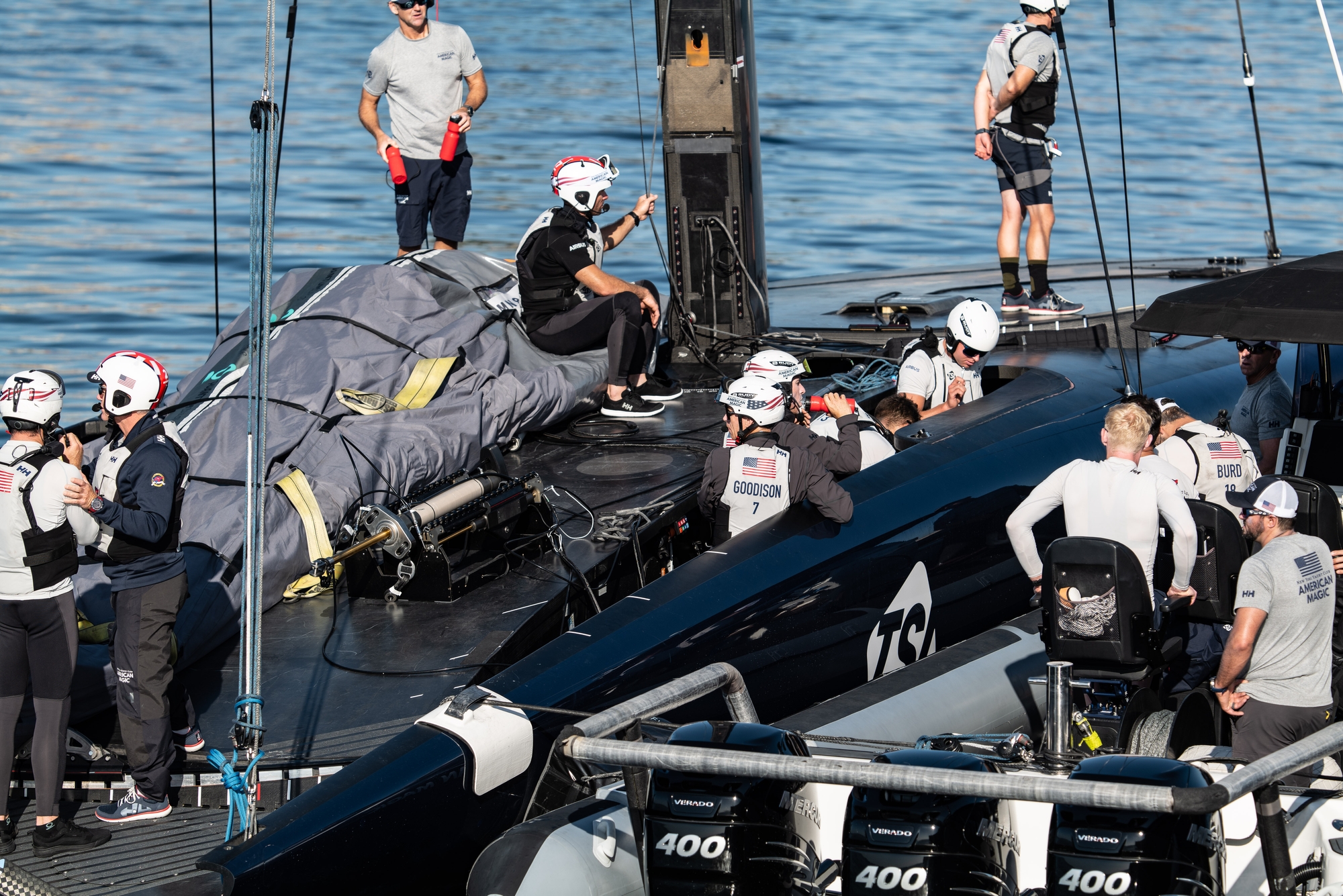 Important therefore for the Magic crew to capitalise on every available opportunity and whilst the breeze held at around 8-10 knots through to lunchtime, the team put in a thoroughly professional performance as they went through what Dan Morris, Sail Trimmer on Patriot, described as a: “long list of things to figure out” in regards systems and controls upgrades. “It’s all related to how the boat works and how we make the boat work, power going in, how we use that power and how that translates into speed.”