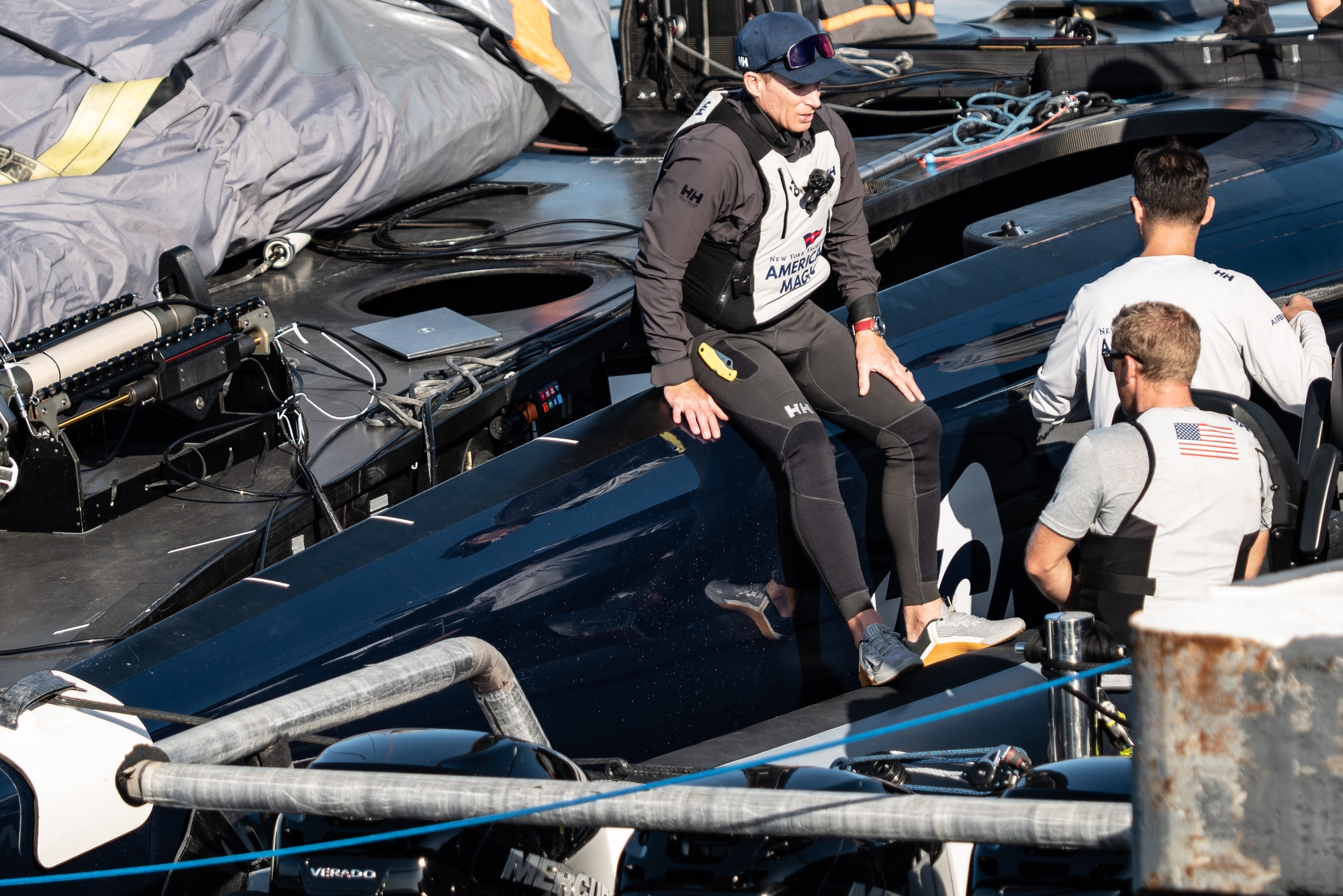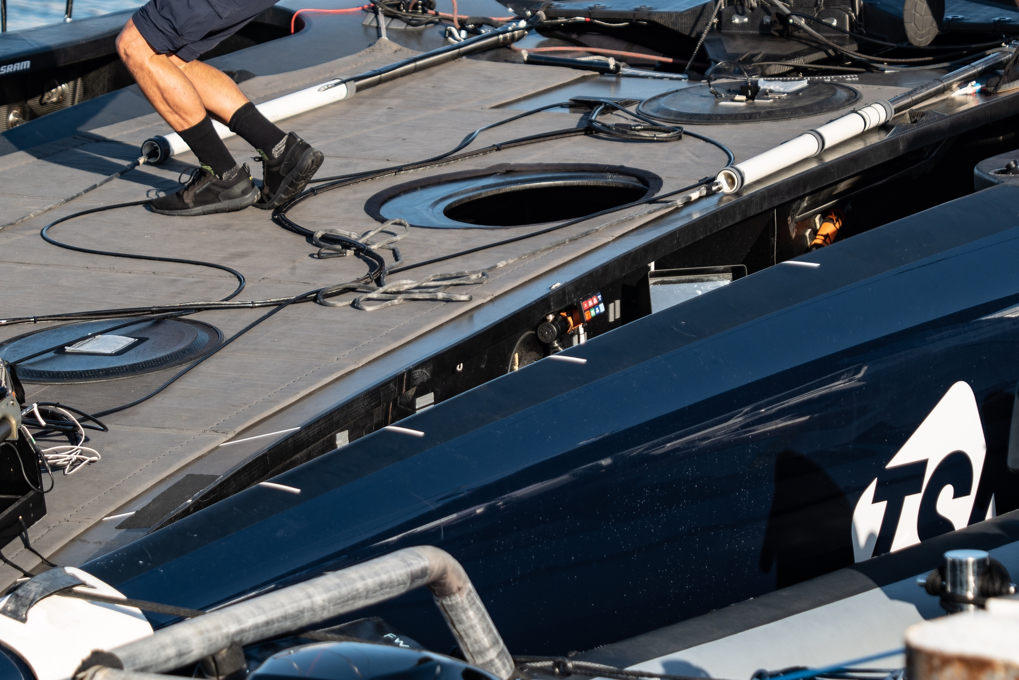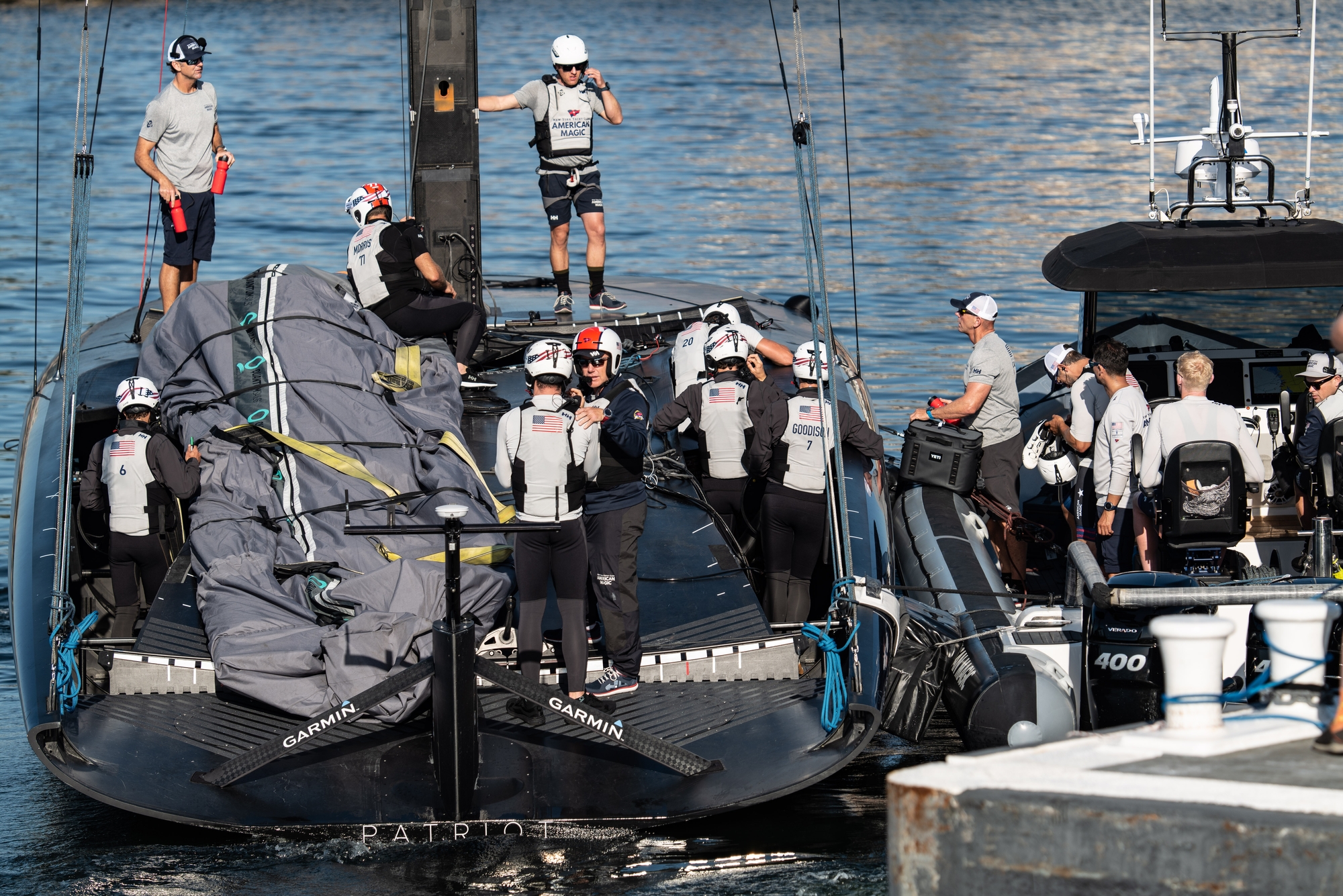 Patriot will be looking to step up through the wind ranges in coming sessions and as Dan Morris confirmed, the rig is the big area of development: “We don’t have runners (running backstays) anymore so that puts the rig under a lot more load, so we just need to address the rig and rigging. Once that’s all dialled in, we can then push up the wind ranges that we sail in.”