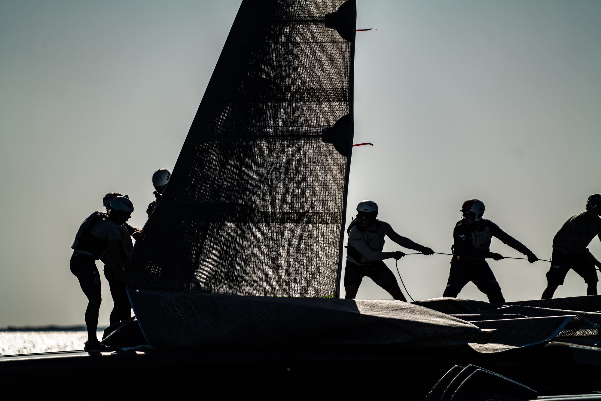 As with all teams operating the boomless system, a lot of attention was being paid by several crewmembers to the clew area throughout the session. Although not new technology in the America’s Cup, clearly this is the area of the most concern in order to replicate settings accurately and ensure the leech tension can be adjusted as the breeze and puffs come through. Expect more development in this area as the sail designers and technical teams are pushed to deliver more control in this crucial area to enhance both the power of the mainsail when required and de-power accordingly through the wind ranges.