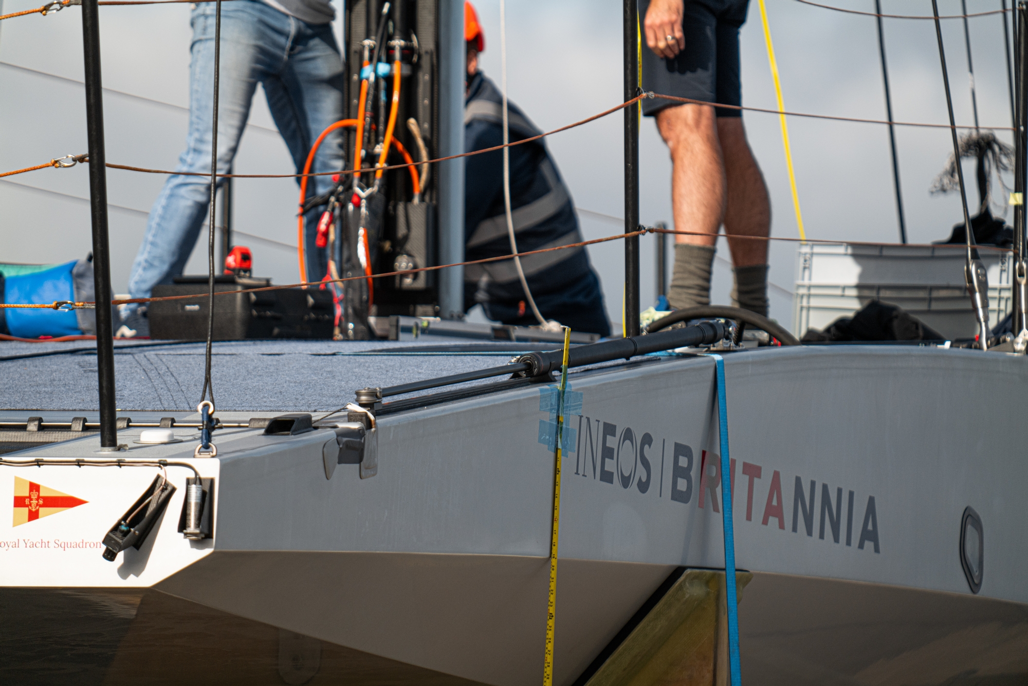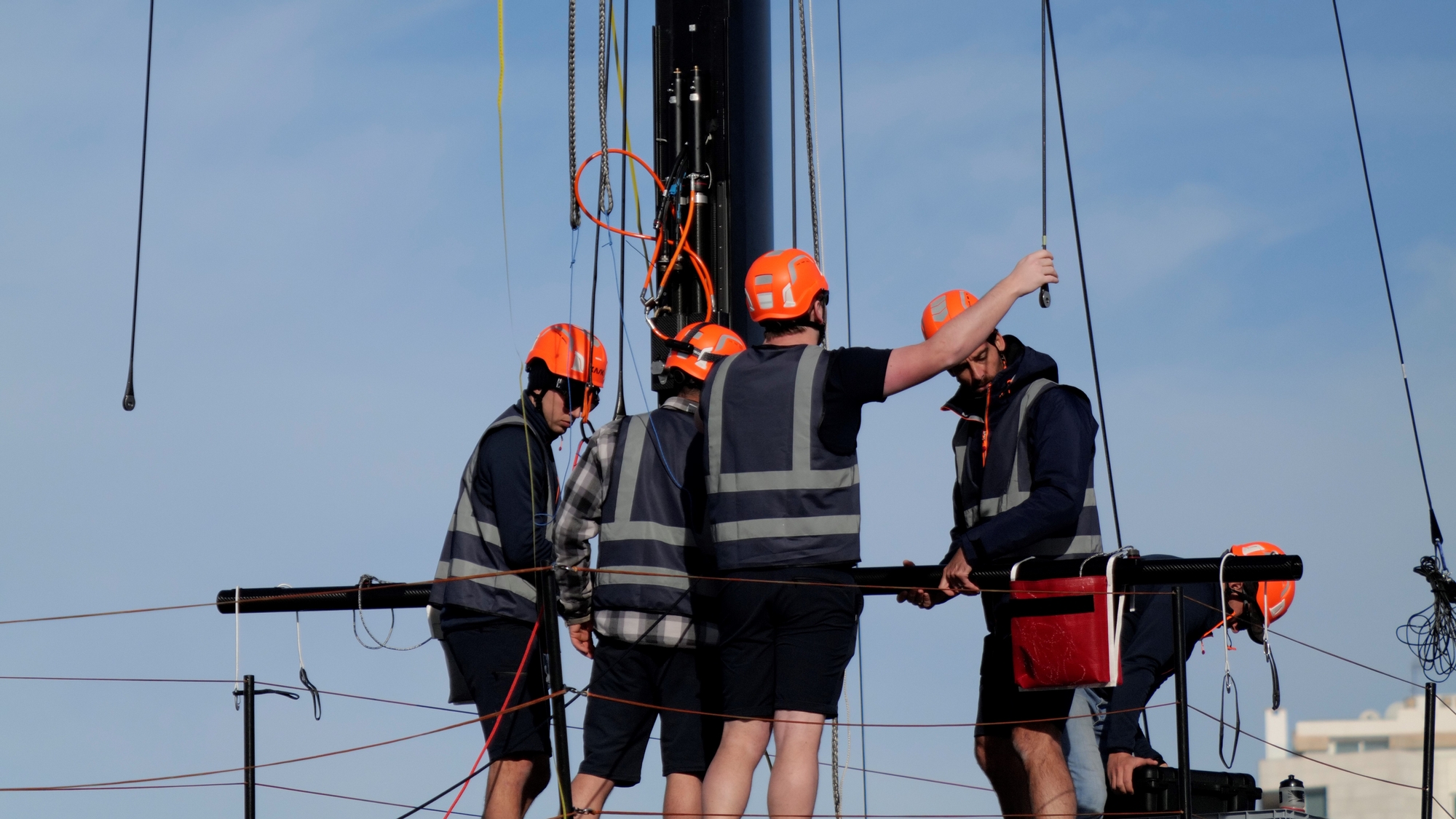 There’s a famous line that says: ‘you can’t improve what you don’t measure,’ and today out in Palma, Mallorca at their winter training base, it was the turn of the INEOS Britannia shore team and engineers to run through a re-step of the mast on T6 and thoroughly check and analyse everything ahead of a busy week of testing. The programme is relentless from here on in and the beautifully detailed LEQ12 mast was stepped and re-stepped with laser measuring tools, and traditional plumb lines and theodolites used to make sure perfection, or more like precision, was achieved – nothing is ever ‘perfect’ in the America’s Cup world.