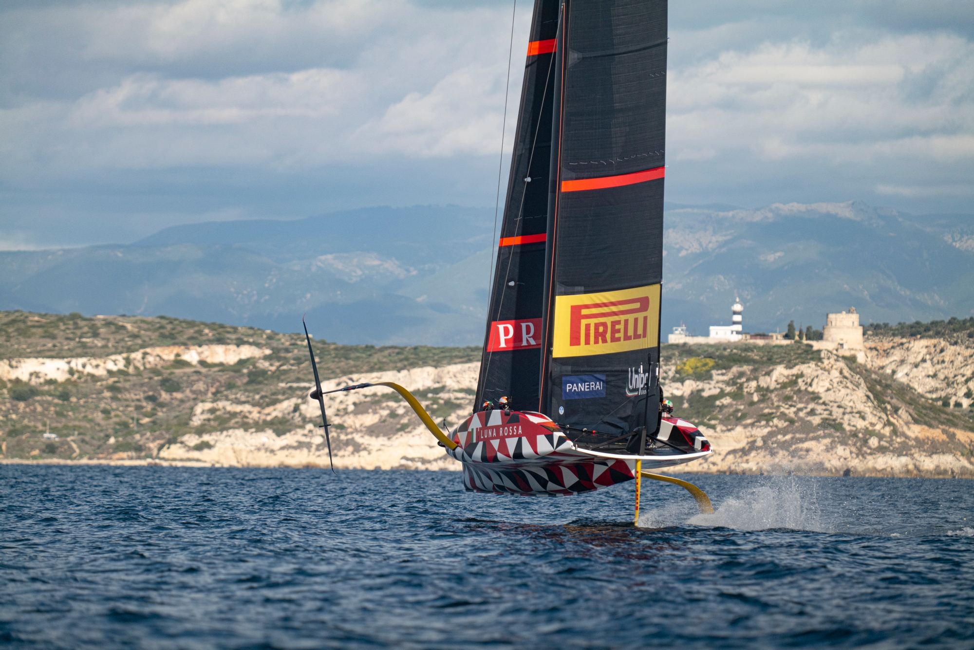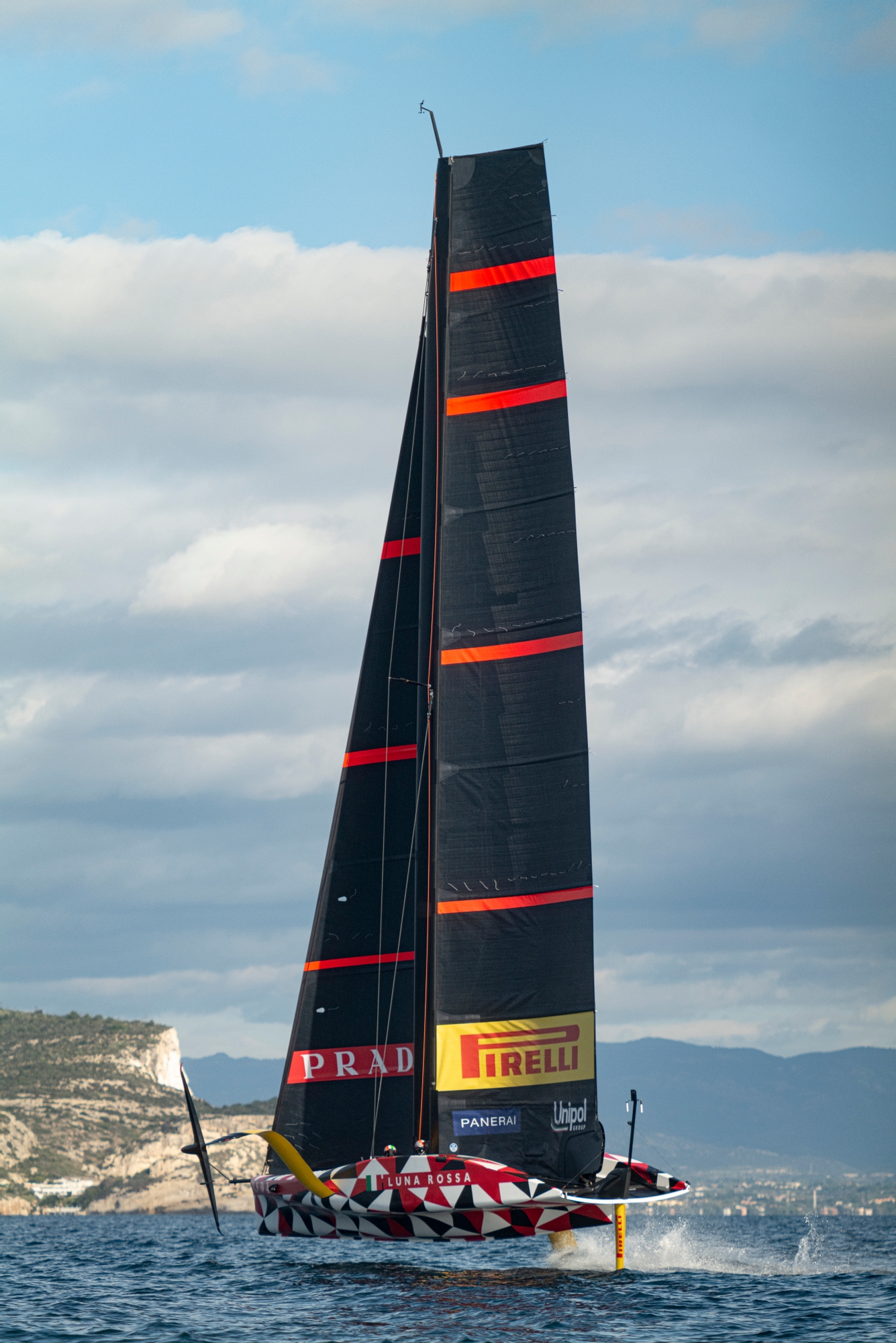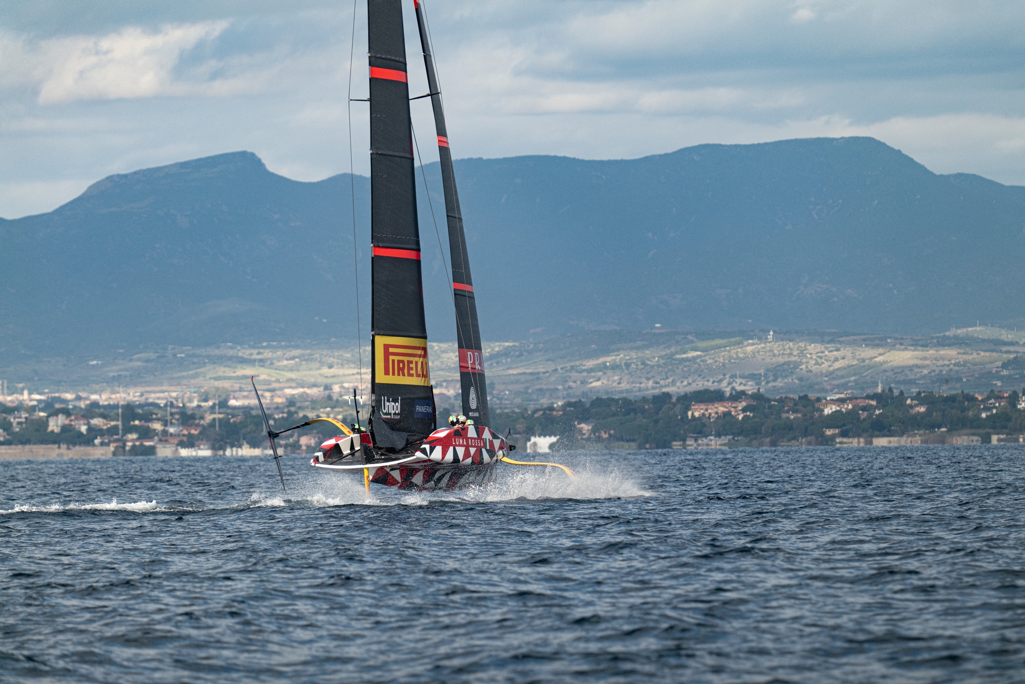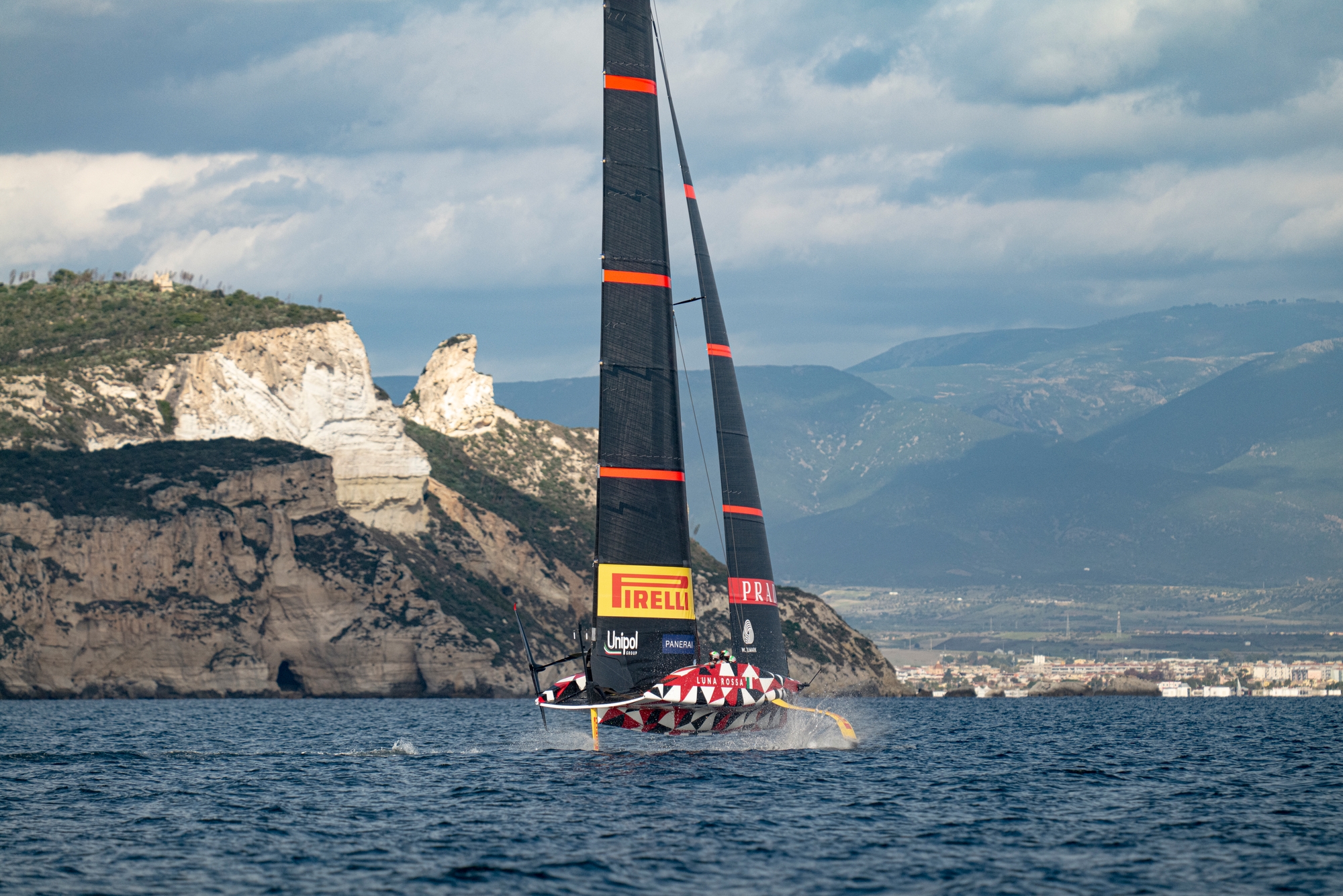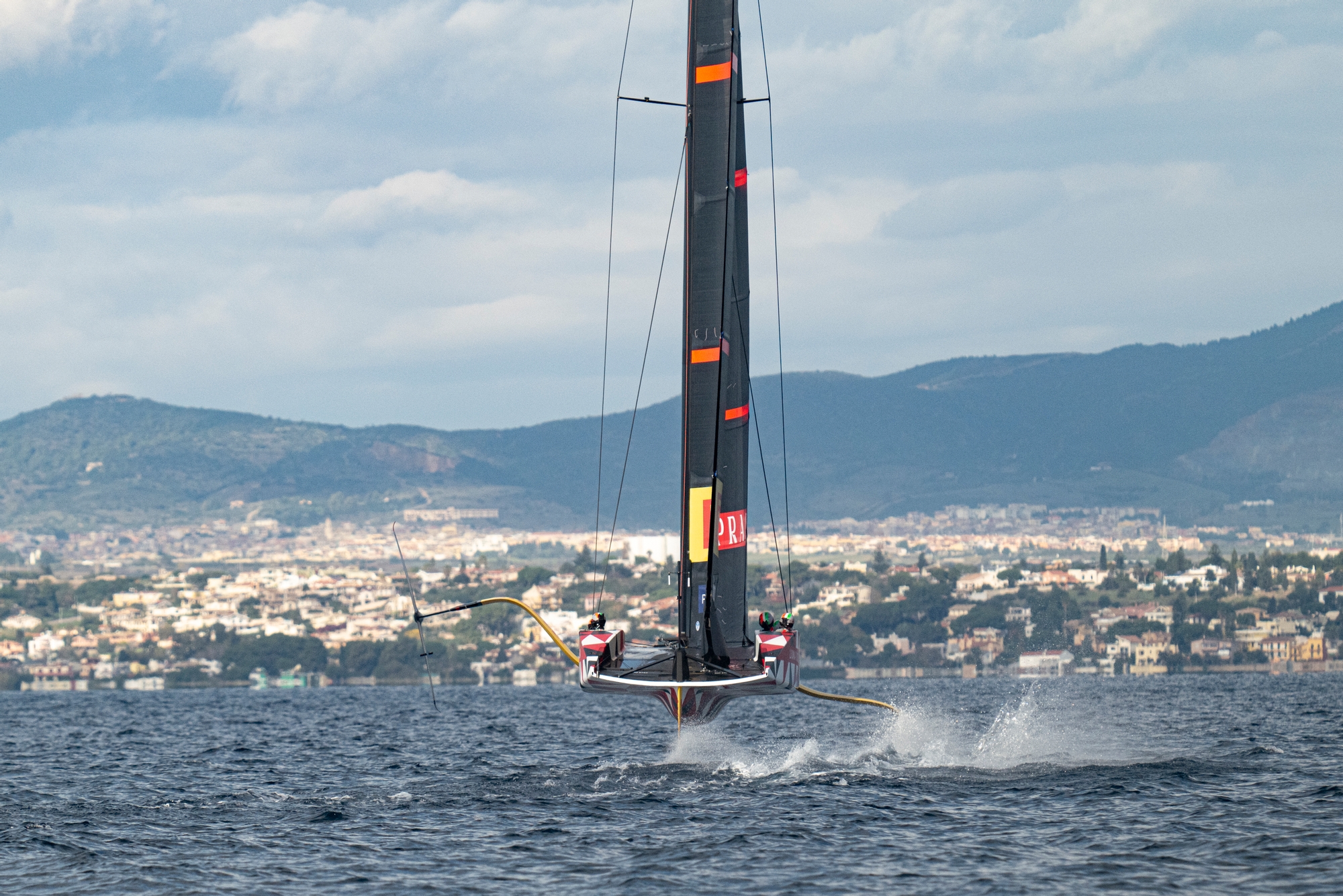 On-Water Recon Unit: Productive sailing day for the team. While the team was running through the usual checks on the LEQ12, Francesco Bruni and Hamish Wilcox left the dock (Molo Ichnusa) on a RIB to check the wind conditions out of the Porto di Cagliari and decide where to head and hoist the sails later on. After dock-out, the team headed towards Capitana to find some light NW breeze in the large Golfo degli Angeli. Breeze increased and shifted to W-WNW in the afternoon giving the team the chance to push the prototype. Observation of slick foil-to-foil manoeuvres in higher breeze while several touch downs and go’s in lighter conditions with different on board crew configurations.