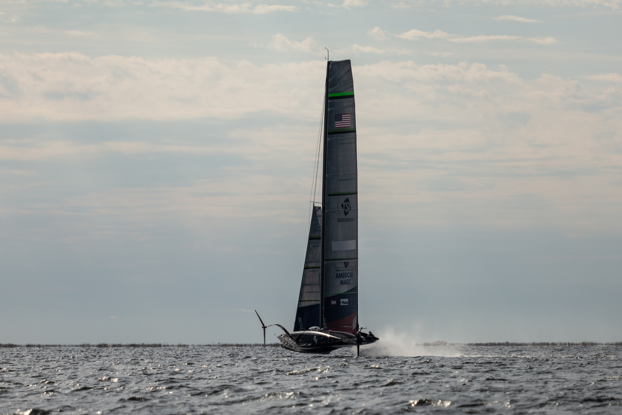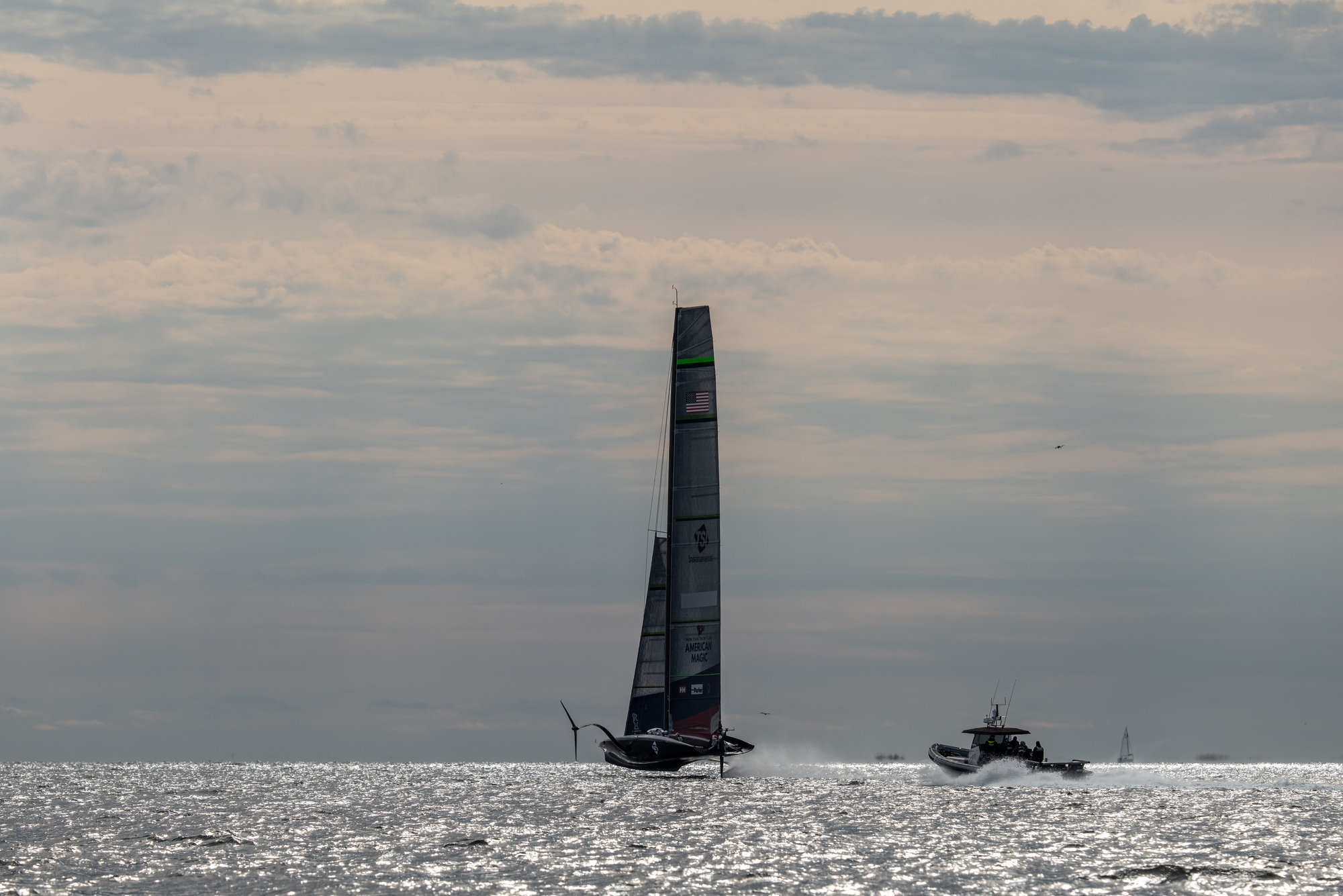 Once up and flying again, the Americans completed some 20 windward / leeward legs and recorded a total flight time of some 113 minutes which is a considerable marker on their impressive journey to Barcelona 2024. The team that has everyone talking at the moment just keeps on banging in the miles and the time-on-the-water and simply look better and better with every session. The team looks galvanised and co-ordinated whilst genuinely enjoying the process and the camaraderie that is building up – body language doesn’t lie – and the shore team are operating at the very highest levels.