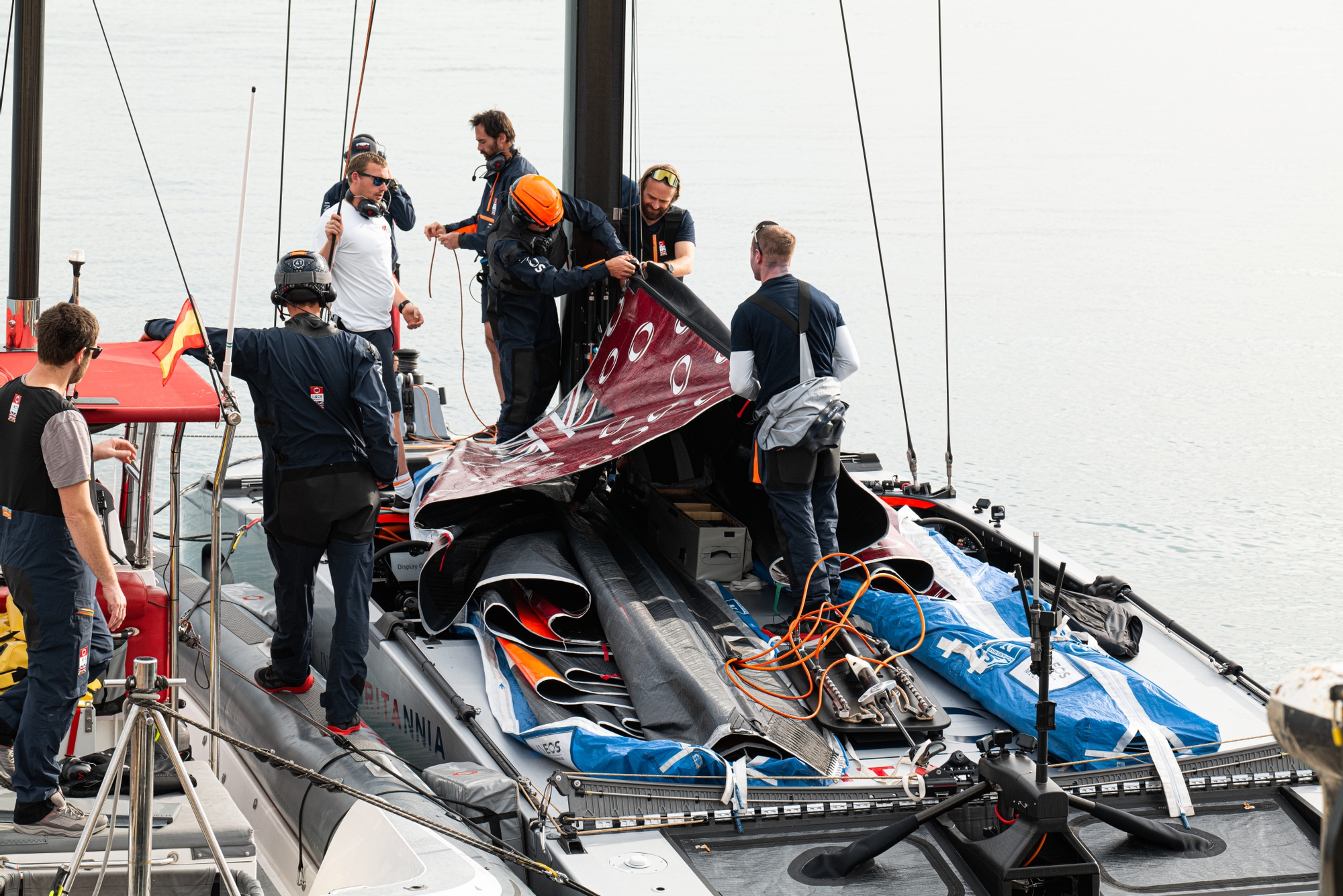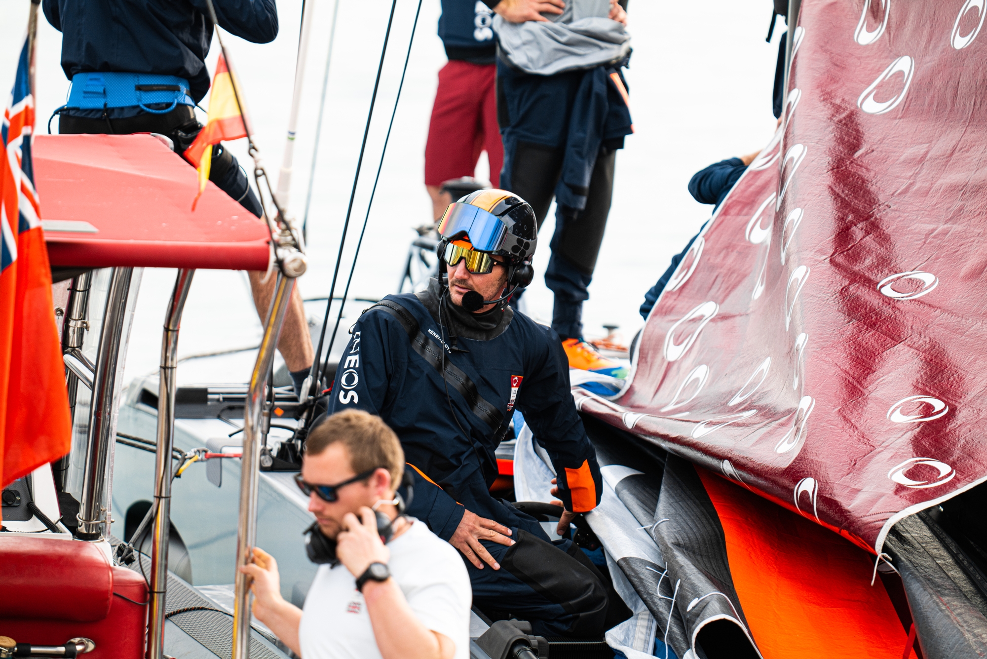 On board were helmsmen Ben Ainslie and Giles Scott, along with trimmers/flight controllers Iain Jensen and Luke Parkinson, and Bleddyn Mon in an additional oversight role.