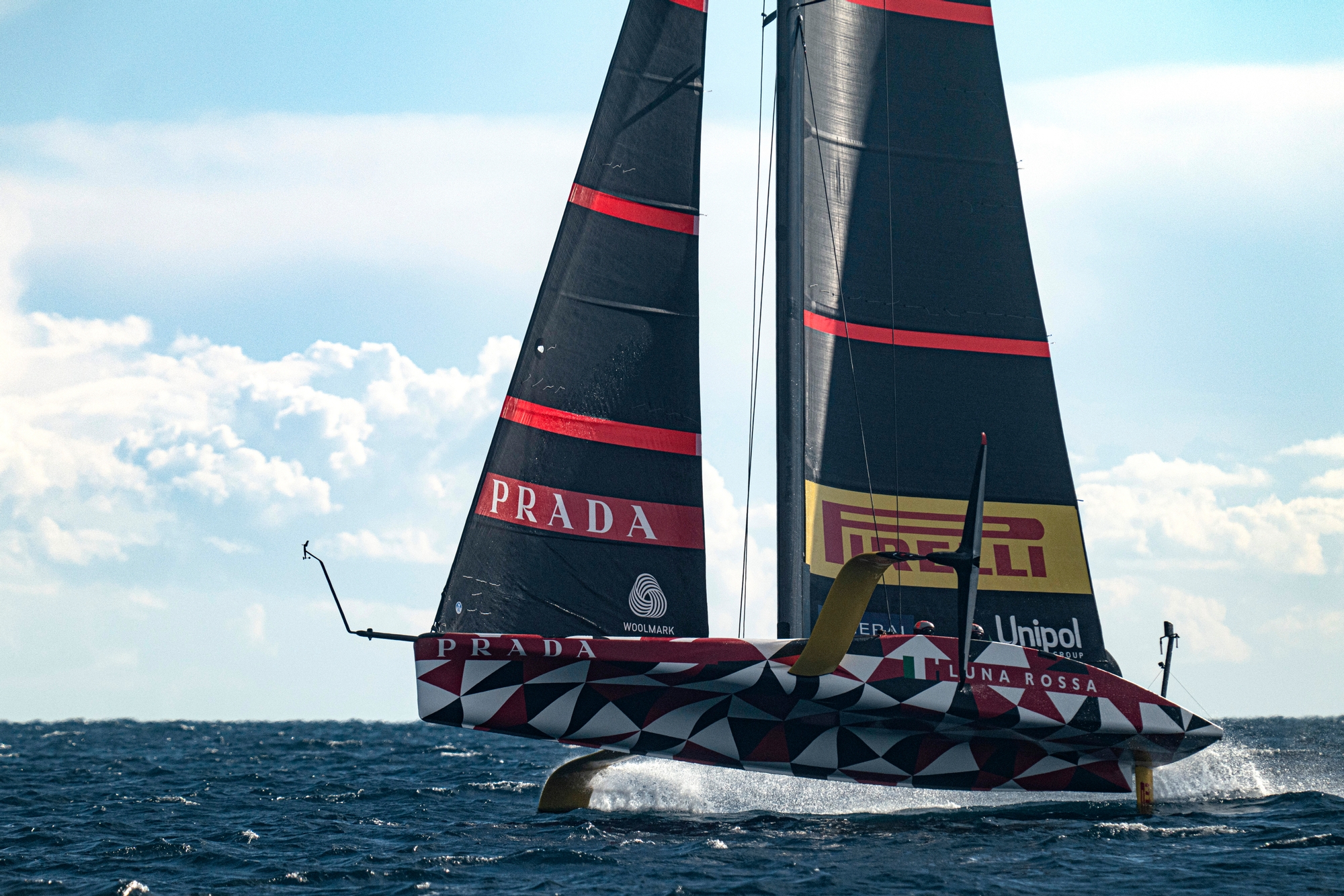With so much concentration on the lower third of the mainsail, it’s days like today when we can see the results and understand why the brightest minds in the America’s Cup aero world are working so hard on this vital area of control. Through the tacks, noticeably, as soon as Luna Rossa Prada Pirelli complete, there’s huge movement, pumps if you like, on the traveller as the helmsmen fight for stability and the correct exit angle. On the longer runs at high speed, the sail controls seem more finessed with micro adjustments to angle and depth being controlled by the trimmers.