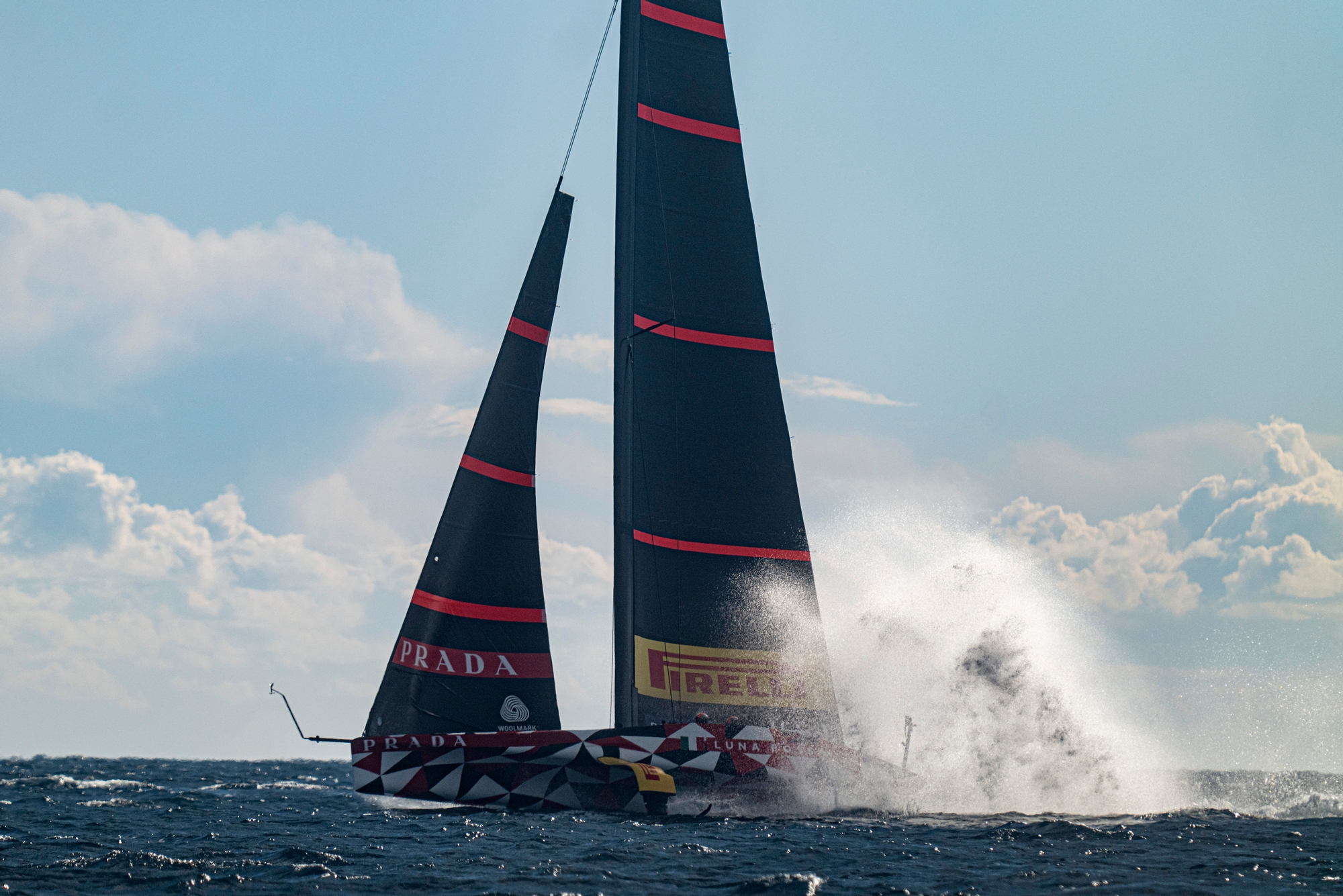 Luna Rossa Prada Pirelli was on rails today and the team thoroughly deserve a warm shower and a hot drink. Sometimes America’s Cup sailing isn’t all sunshine and bluebird days – as those training in the northern hemisphere are more than aware. (Magnus Wheatley)