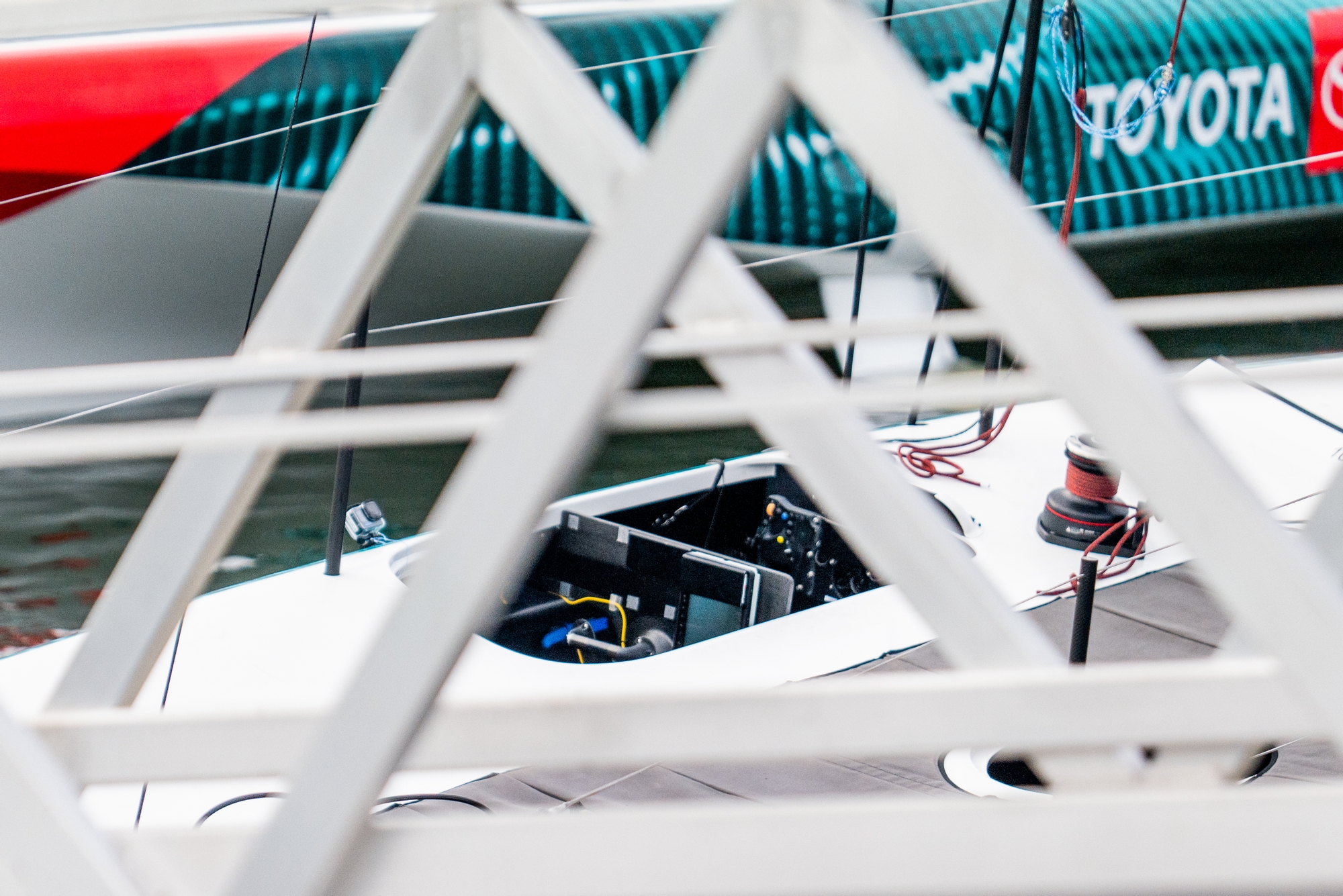 Just how quickly Leo and Liv have got up to speed on the AC40, admittedly with some of the best tutors in the world whispering through their headsets, shows just how exciting the AC40 class is going to be. Straight out of the box it has been a sensation and with the full one-design package on display today, the differences between that and the LEQ12 with its adaptations was hard to quantify until right at the end of the session on a blast run home. Around the racecourse that Ray Davies had set up, and through the manoeuvres, both boats looked remarkably equal but what the Recon Unit picked up most prominently was that in a straight line, the LEQ12 looked to: “have another gear, low and fast and high with turbo pace.” Over a short course the effect of the beautiful anhedral span foil is perhaps, and it’s a big ‘perhaps’, less pronounced but on a longer run, it really starts to work. Interesting.