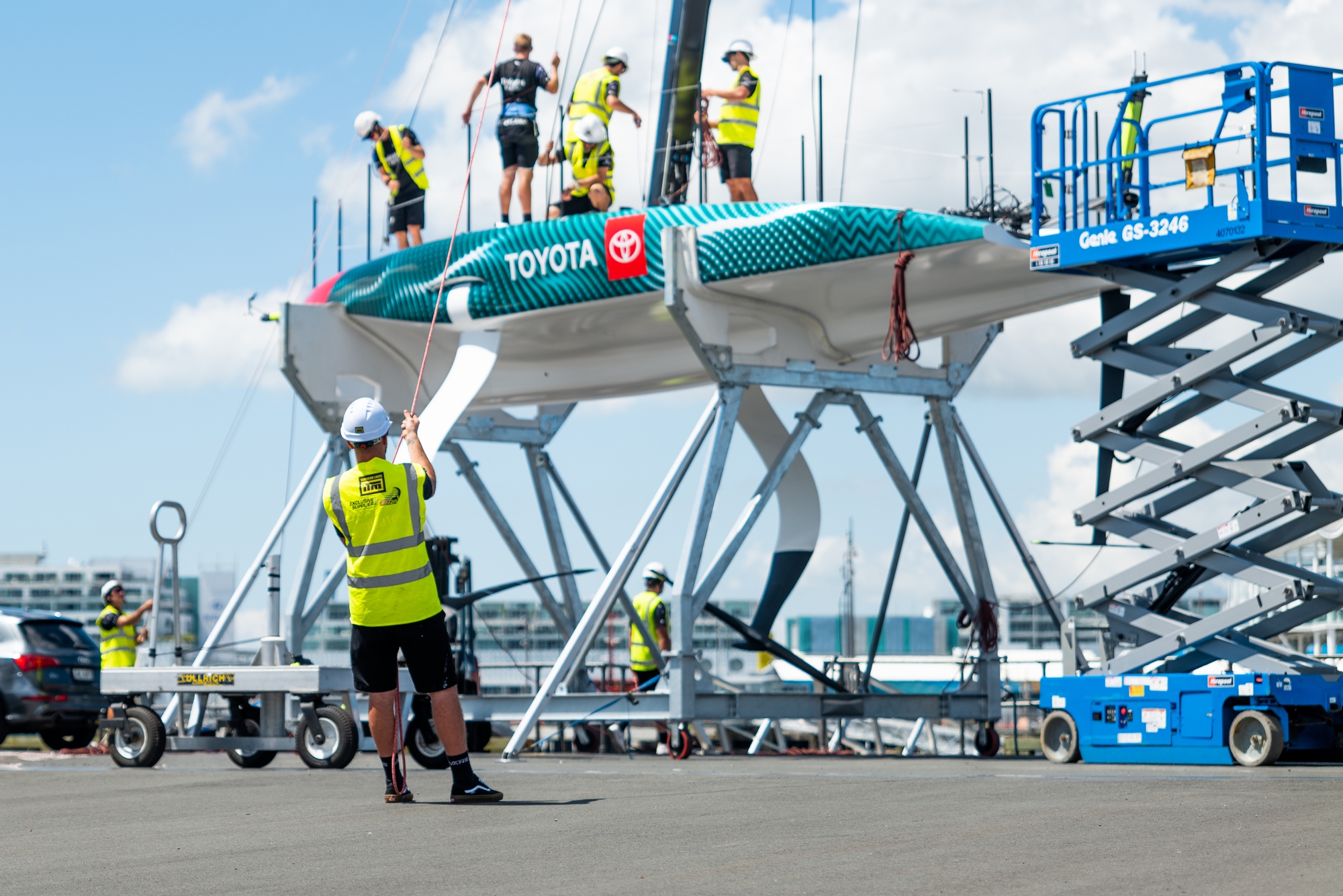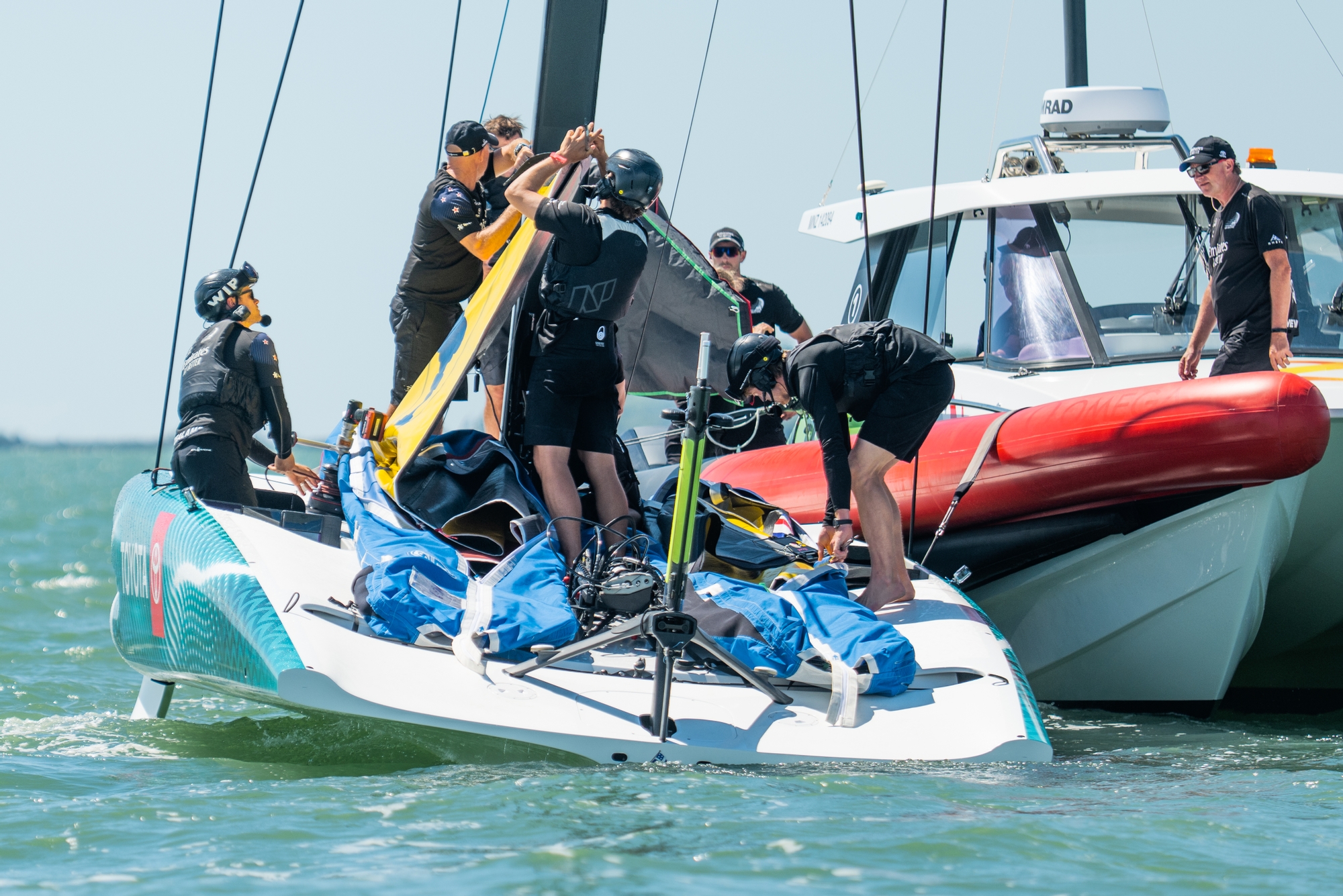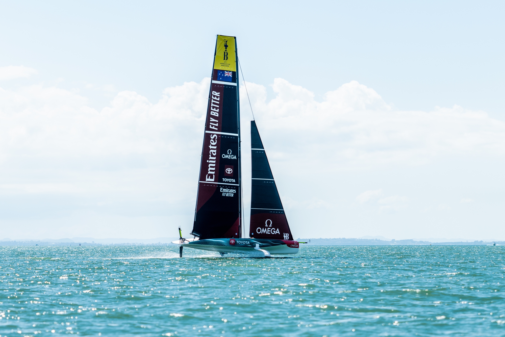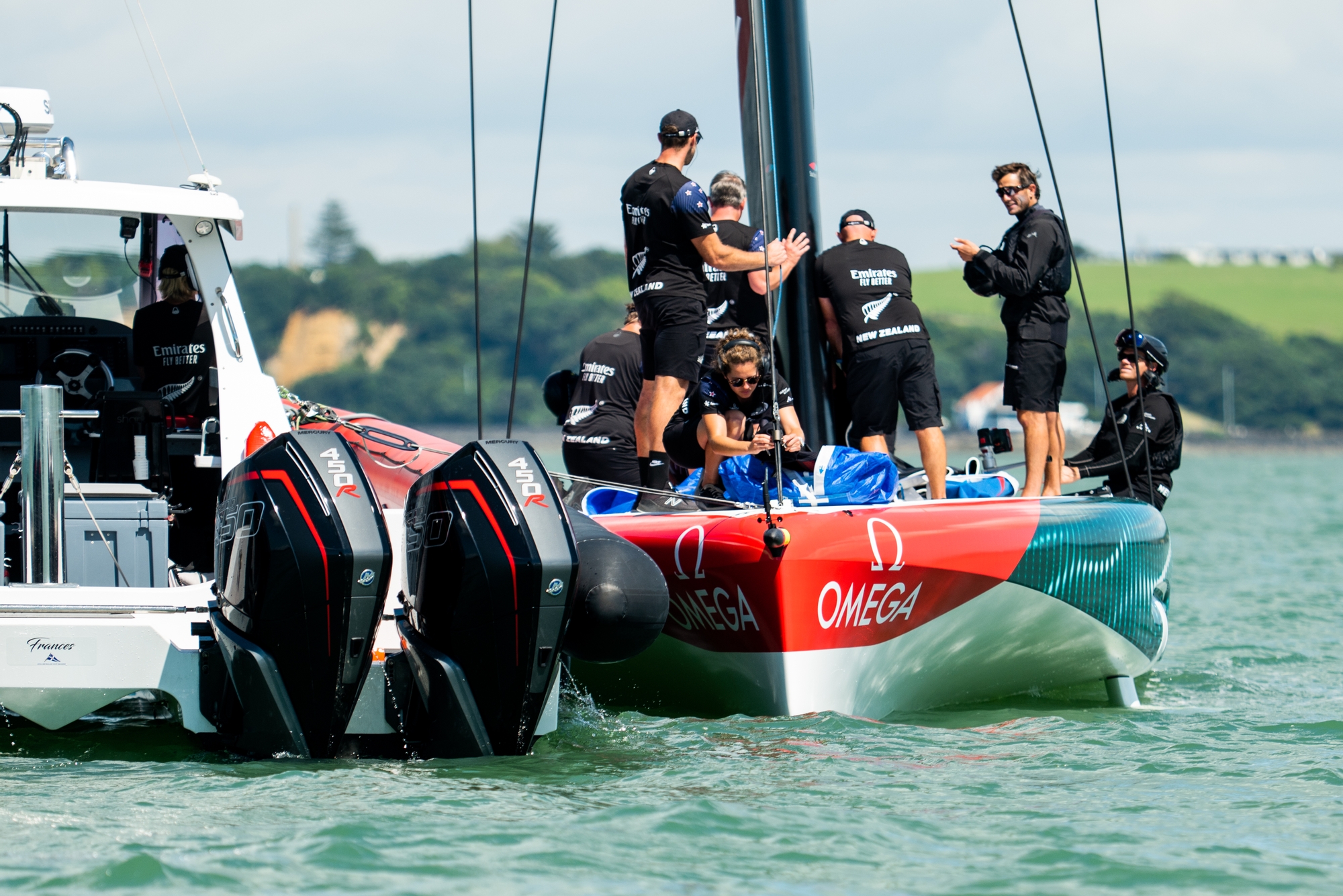Curly Salthouse, the legendary Kiwi head of on-water operations who is now in his tenth America’s Cup campaign summed up the short afternoon session accurately saying: “We waited for the breeze, sort of a typical sea-breeze day here in Auckland…and left the dock about 2.30pm something like that, unfortunately on one of the boats we've made a little change to the sail configuration, and we’ve done some damage to some battening, something that we couldn't really replace and keep going on the water. So, one boat’s back in early and we’ll lift that out and fix it for tomorrow, that's not a big job, but it's just something we’re trying…and it wasn’t up to the task, we’ll rectify that and go again.”