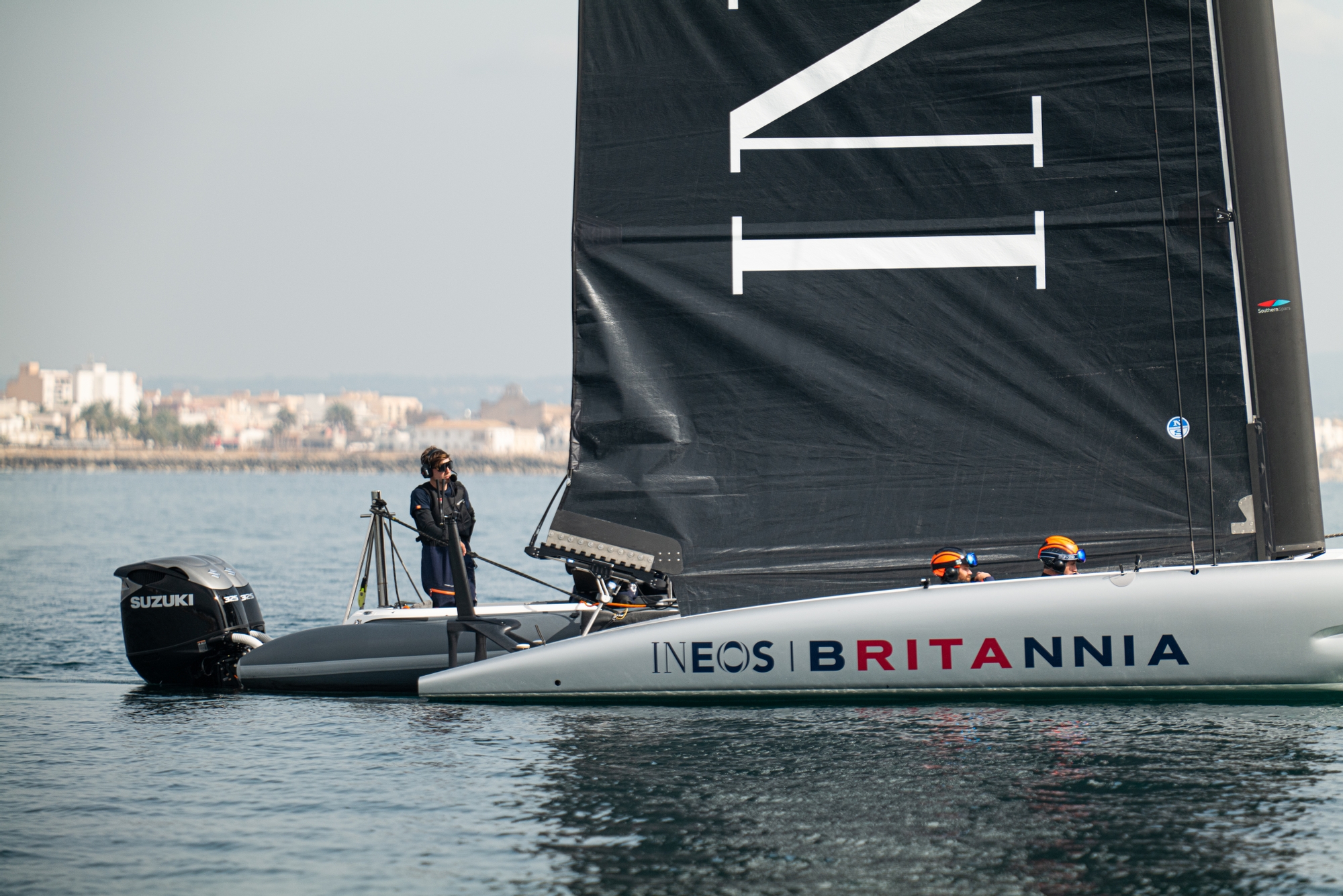 The playground was flat, the wind was fair and gusting in at 12 knots at times, but the pervading sense of the racing sailors was that they are itching for more to really put some miles on the clock in Athena. A tow-up in the morning as the pervading boredom of waiting finally cracked, offered the first flight for Ainslie who liked what he saw, saying: “Yeah it's a great boat I'm really impressed…it was relatively easy to sail for these kind of boats and performed really well in this light to medium breeze so yeah I had a great time. I think it will be a great asset for all of the teams and of course looking forward to the Youth & Women’s Cup next year in Barcelona - great tool.”