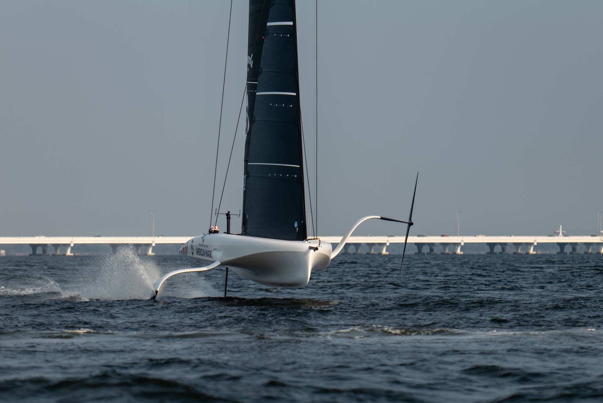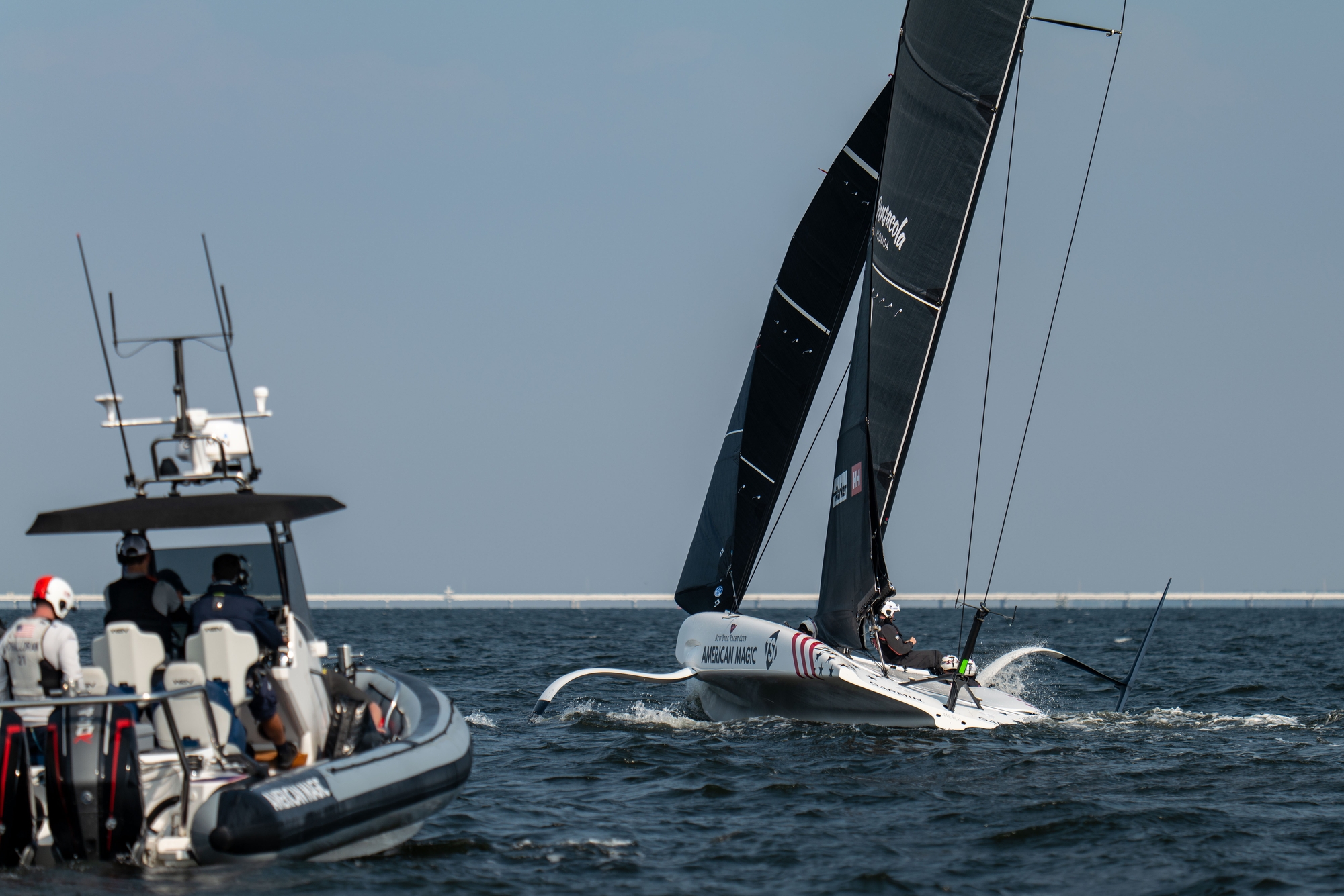 The M1 was hoisted at 1120 followed by the J2 at 1130. Sailing began at 1157, America completed 76 manoeuvres, covered a distance of approximately 80nm, 24W/L's, and was on foil for 145 minutes total.