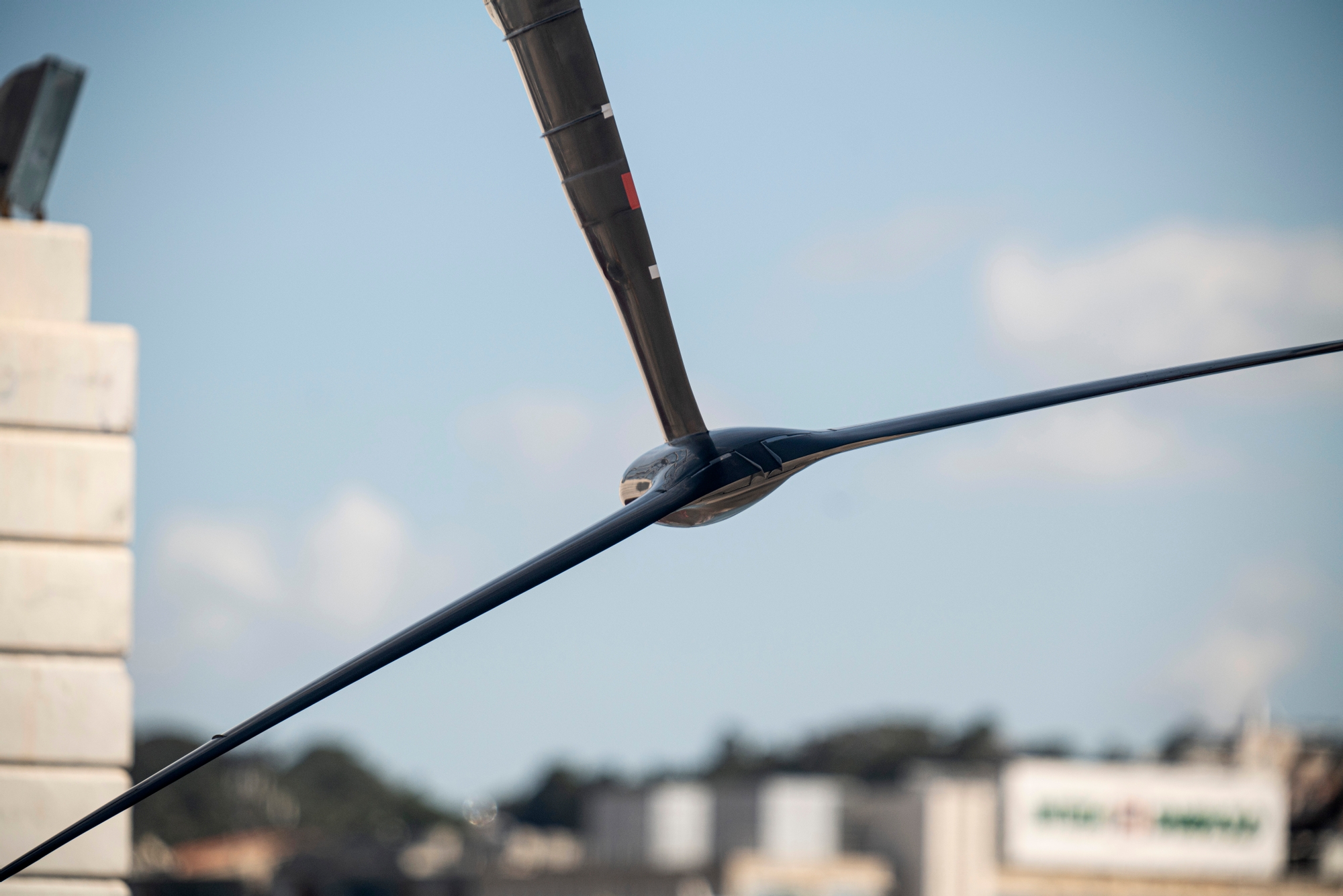 At noon there was still offshore NW breeze of the early day hours which is usually not as consistent as forecasted during these warmer spring days. Instead, the team targeted the afternoon sea breeze for some chop which filled in the Gulf just when the LEQ12 was being towed out of the harbour. The team quickly hoisted the M1 mainsail with the J2 jib and six crew members boarded the prototype. With the first self-take-off looking very composed with stable transition, the prototype headed upwind for a first tack and stopped shortly afterwards due to a speculative issue on main clew/trav. Nothing major as the LEQ12 kept on sailing, executing one more tack before bearing away and heading downwind for some gybes. The wind had increased slightly to 12-14kn according to the Recon anemometer and the team decided to lower the J2 and hoist the J4. While the chase boat dropped some marks, two for a leeward gate and one on windward, the LEQ12 self-took-off heading towards the racecourse for two legs before stopping to lower the J4 and hoist back up the J2 as breeze decreased t 9-11kn.