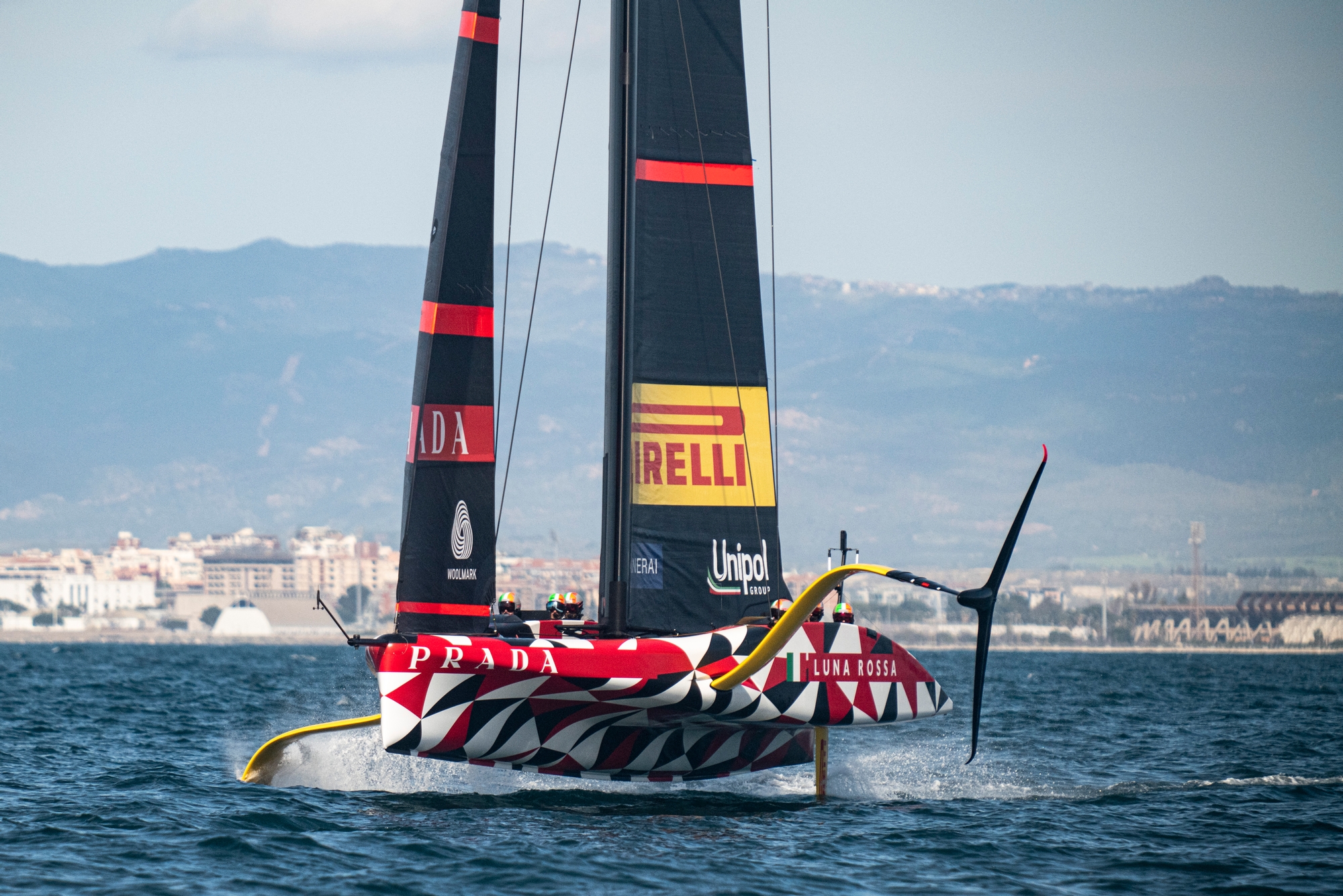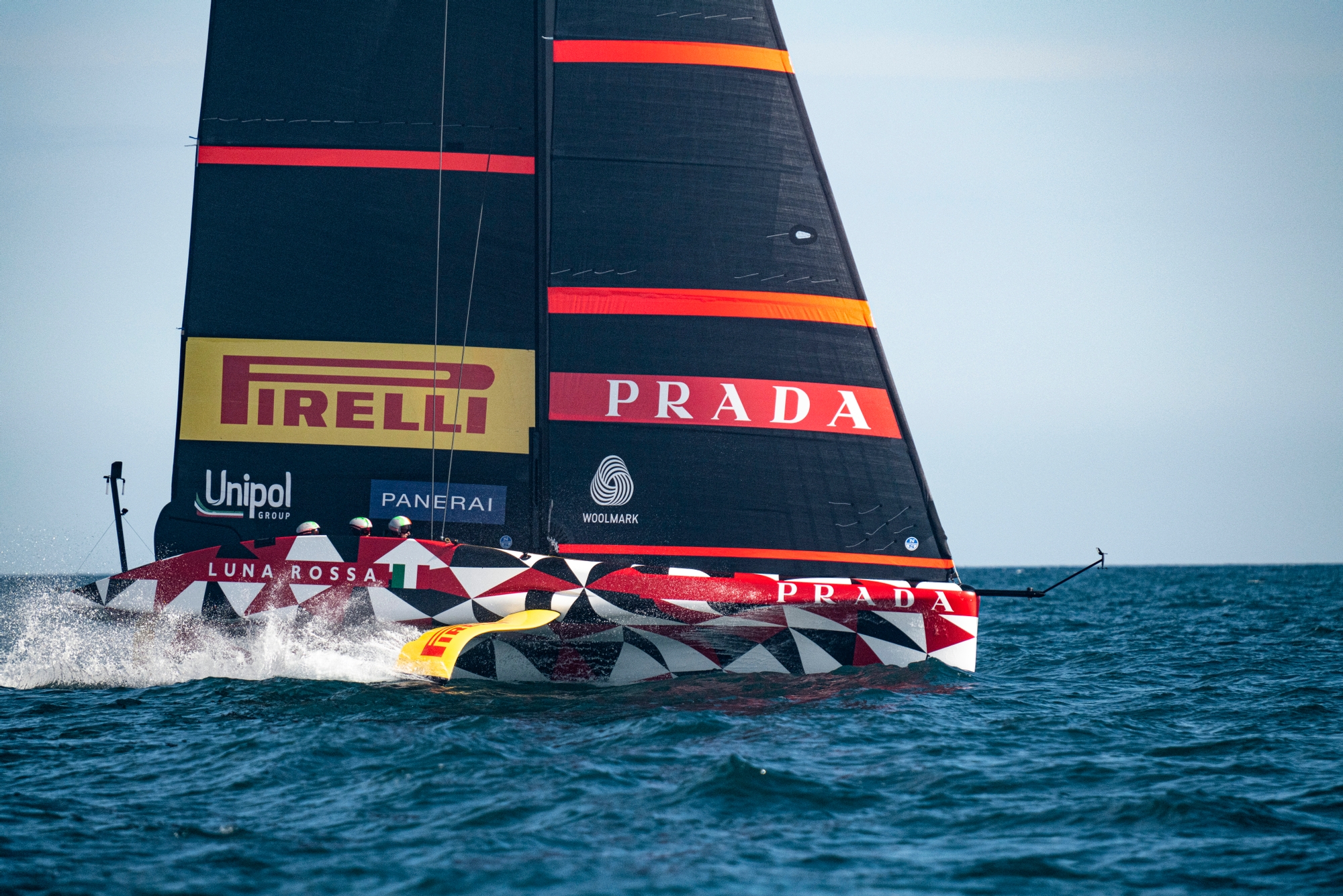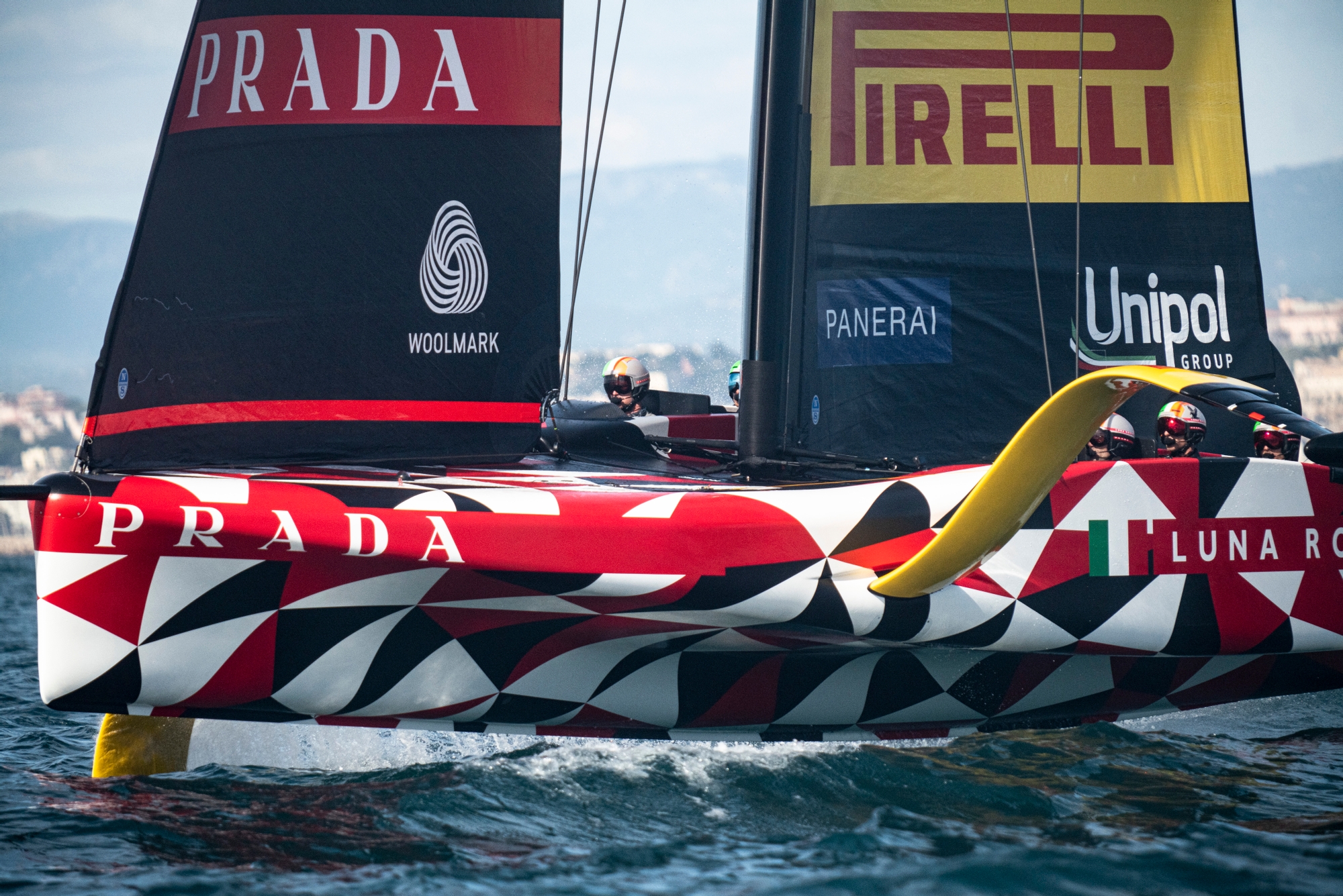 The young guns of Luna Rossa Prada Pirelli are seriously impressing. Ruggero Tita and Marco Gradoni are the coming superstars not just of Italian sailing, but the America’s Cup itself and it will be fascinating to see how they progress through AC37 in Barcelona. Untouchable for nearly three years in the Olympic foiling Nacra 17 class, a gold medallist at the Tokyo Games of 2020 (held in 2021), Ruggero Tita is set to be one of the stars of the future in the America’s Cup. For sure, he will have a big say in AC37 and is combining an Olympic campaign to Paris 2024 with the Luna Rossa Prada Pirelli America’s Cup campaign. Speaking about the day today he gave a superb interview the day after his 31st birthday, saying: “Yeah it was really nice. I mean the sea breeze today was very strong up to 16-17 knots and we managed to sail pretty well and also the water was flat but with some swell underneath so kind of tricky. We did many jib changes and then the wind dropped so we had to give up.”