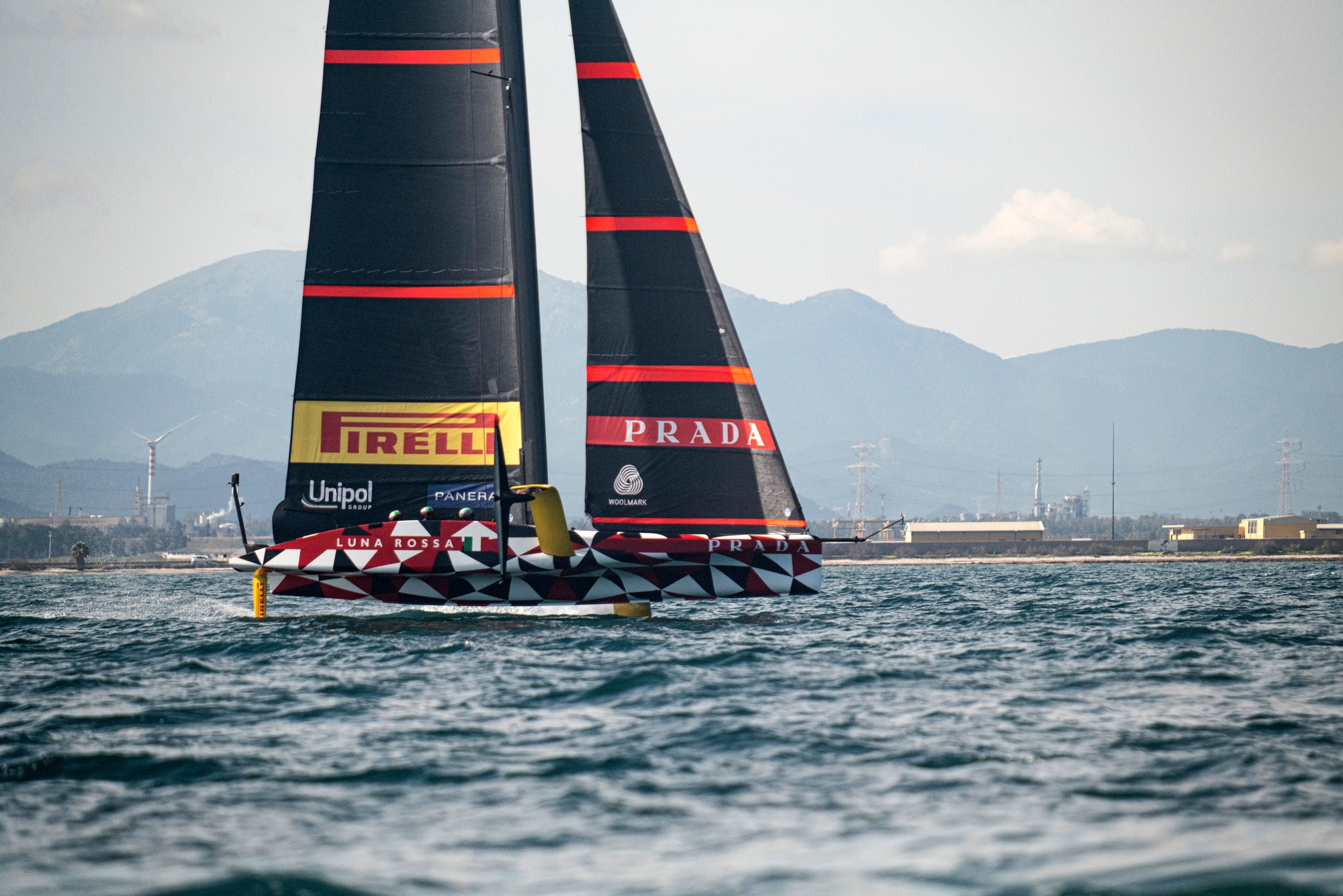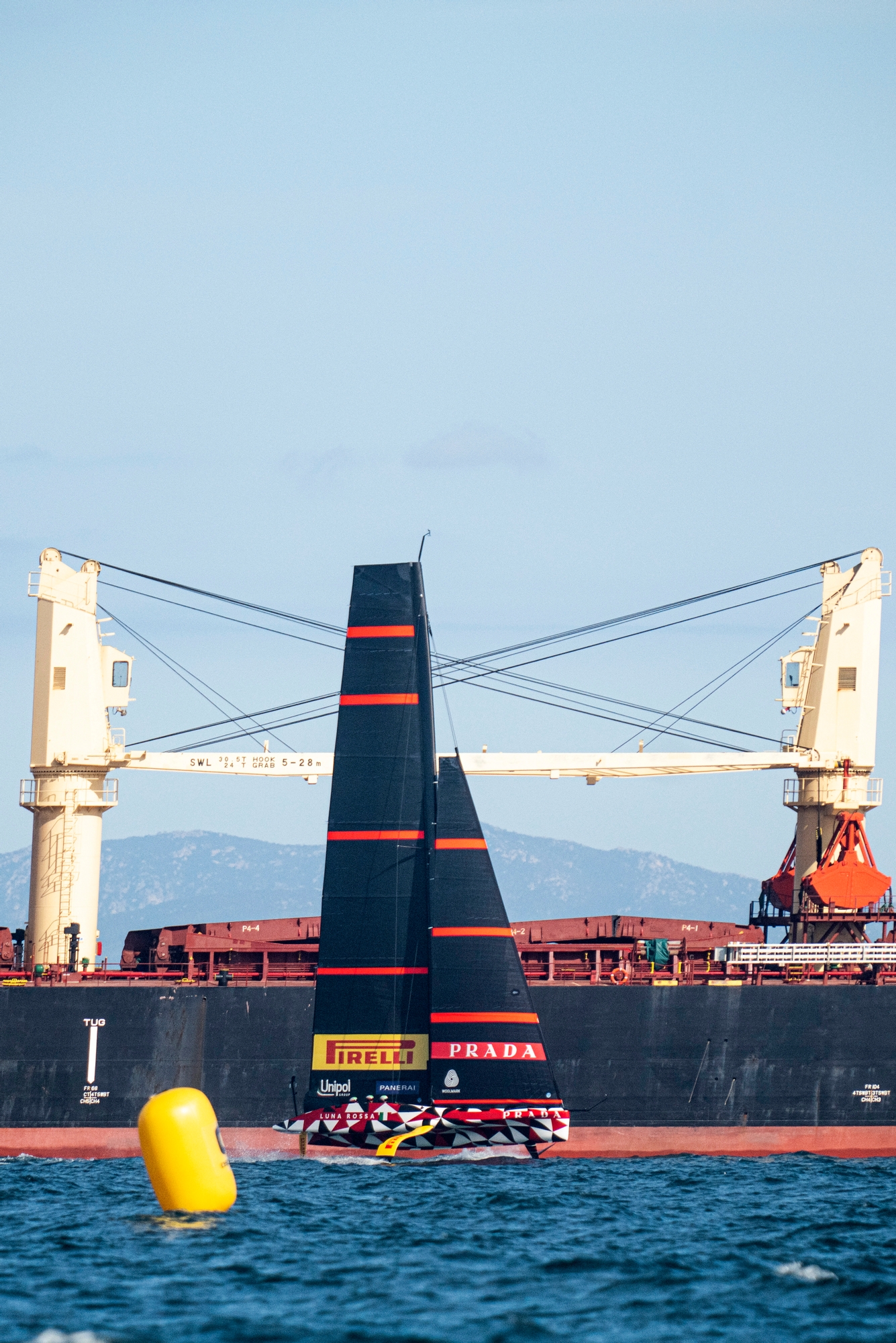 Comparing the Olympic Nacra 17 dinghy with the super-fast LEQ12 of Luna Rossa Prada Pirelli, ‘Ruggi’ as he’s known in the team gave a great insight, saying: “I think the biggest difference is that in the LEQ12 or the big boats you are all the way covered inside the cockpit and the feeling of the speed of the boat is much less. On the Nacra you are on the trapeze only staying attached to the boat with the foot-straps so you have much more the feeling of the speed even if you are going half of the speed or even less. So yeah, that's the biggest difference but in general I think the managing of the foil, the ride height, and the trimming of the sails, the traveller, it's very similar and there are a lot of things that we learn on the Nacra that we can bring here and vice versa, some things that we will learn here we can transfer to the Nacra.”