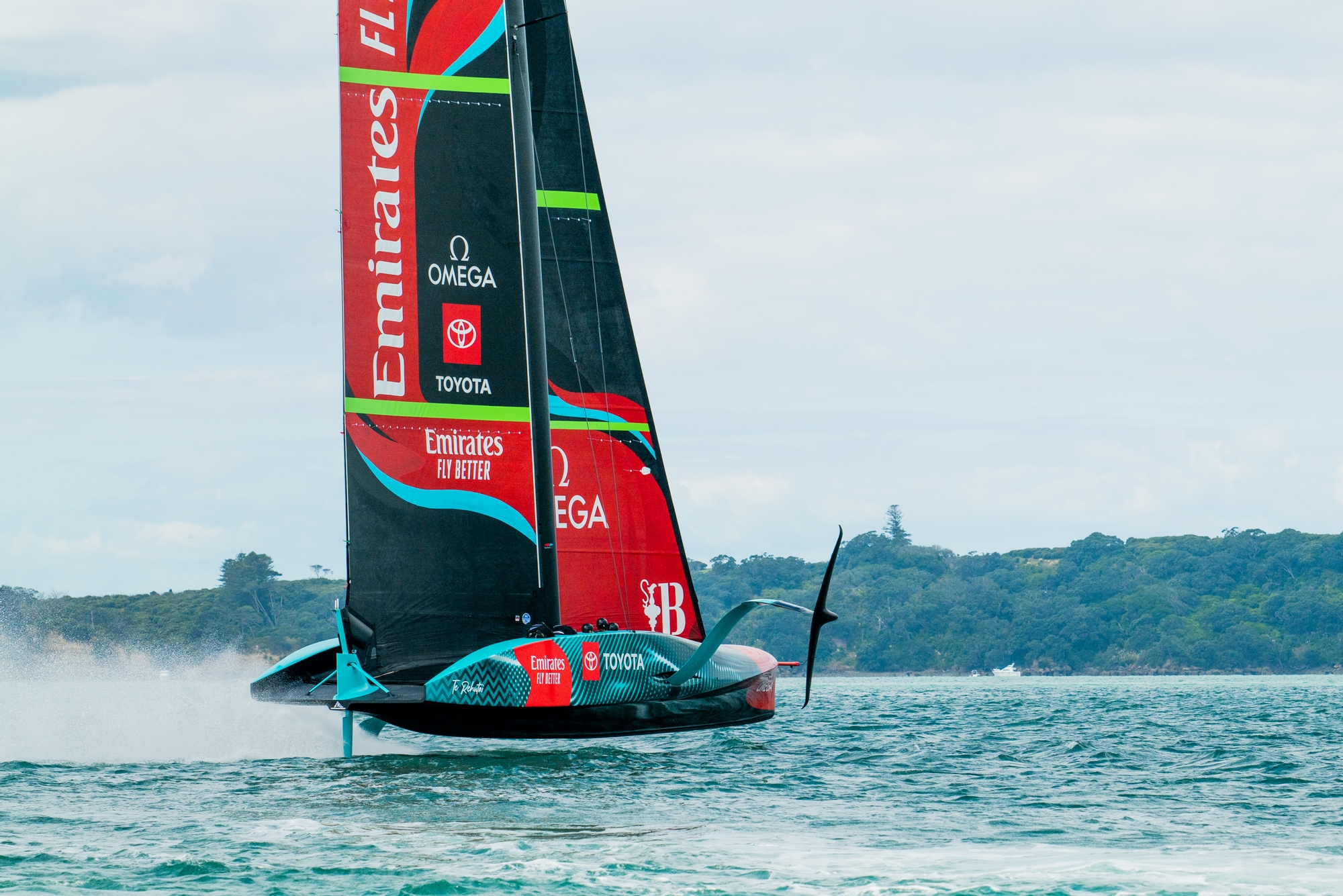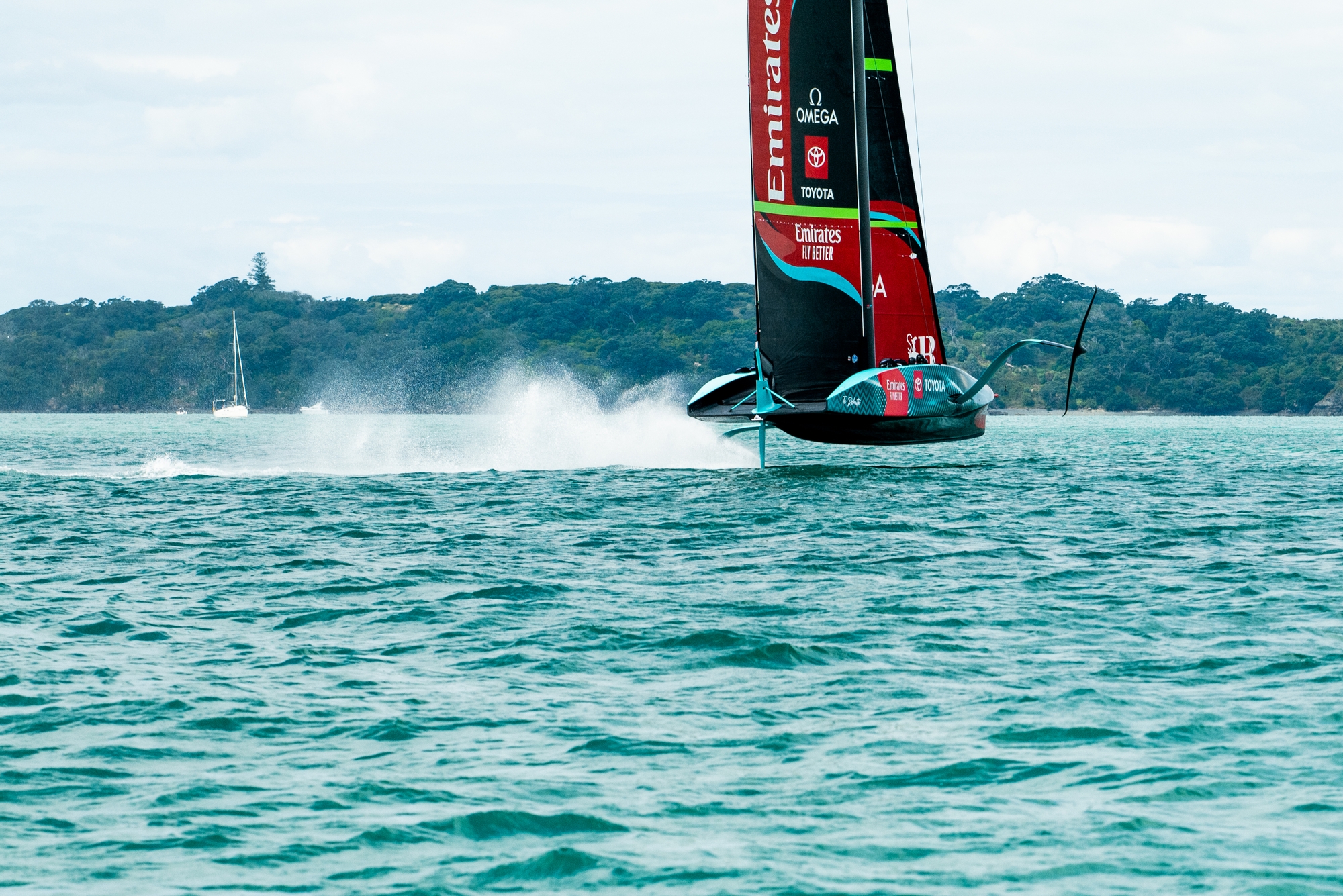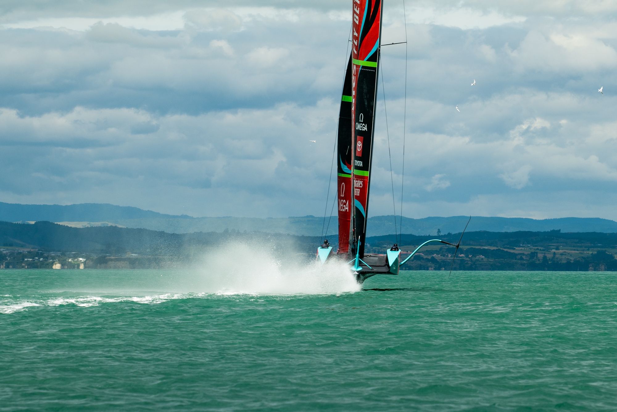 Emirates Team New Zealand put on quite a show out on the Hauraki Gulf on Saturday with ‘Te Rehutai’ the team’s much modified AC75 at full bore with the recon unit struggling to keep pace. Initial estimates suggest that speeds in excess of 50 knots were recorded but the team kept tight lipped about the performance with Elise Beavis, the team’s Performance Engineer, only confirming that it was “the fastest we've gone this campaign.”