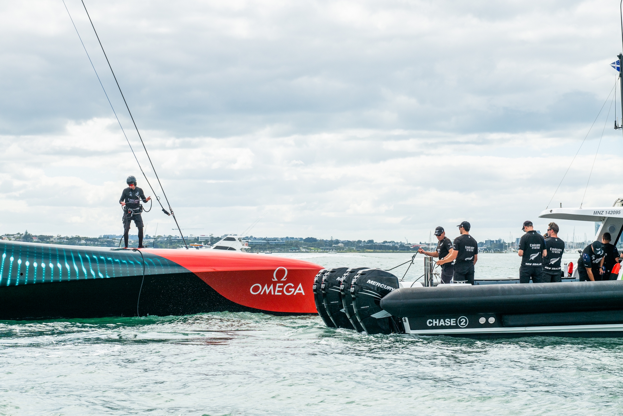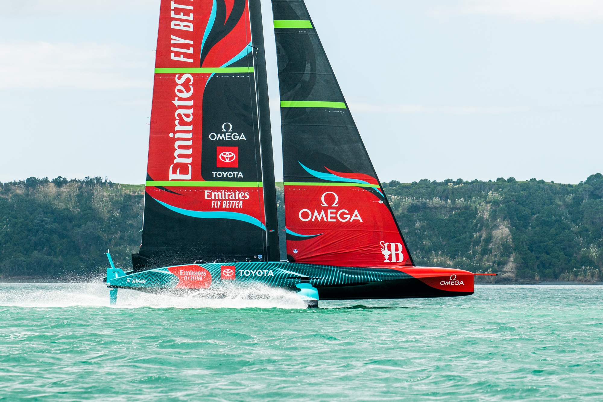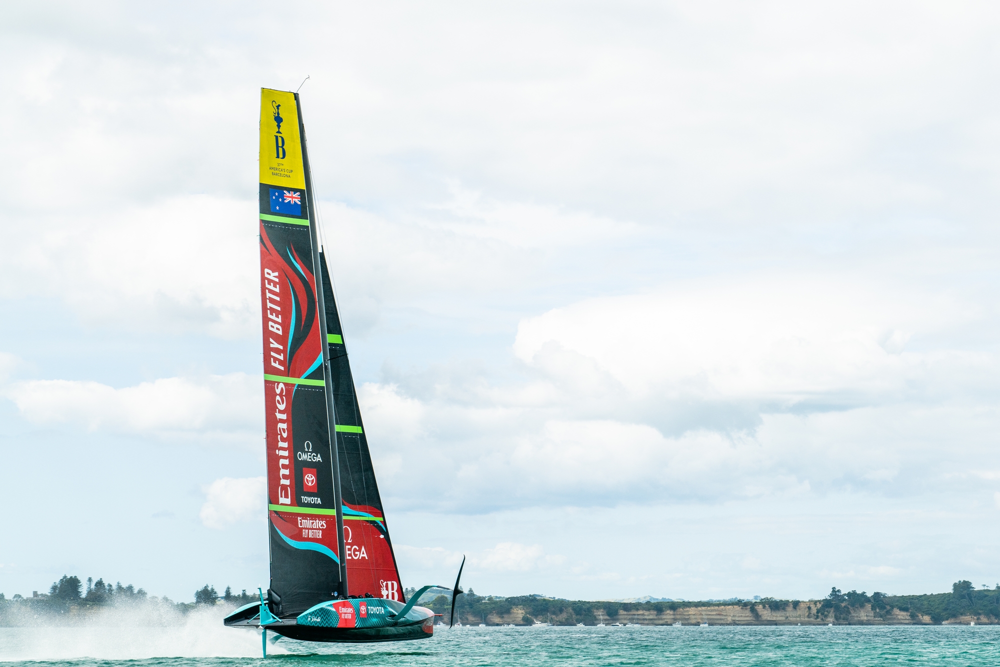 Emirates Team New Zealand put on quite a show out on the Hauraki Gulf on Saturday with ‘Te Rehutai’ the team’s much modified AC75 at full bore with the recon unit struggling to keep pace. Initial estimates suggest that speeds in excess of 50 knots were recorded but the team kept tight lipped about the performance with Elise Beavis, the team’s Performance Engineer, only confirming that it was “the fastest we've gone this campaign.”