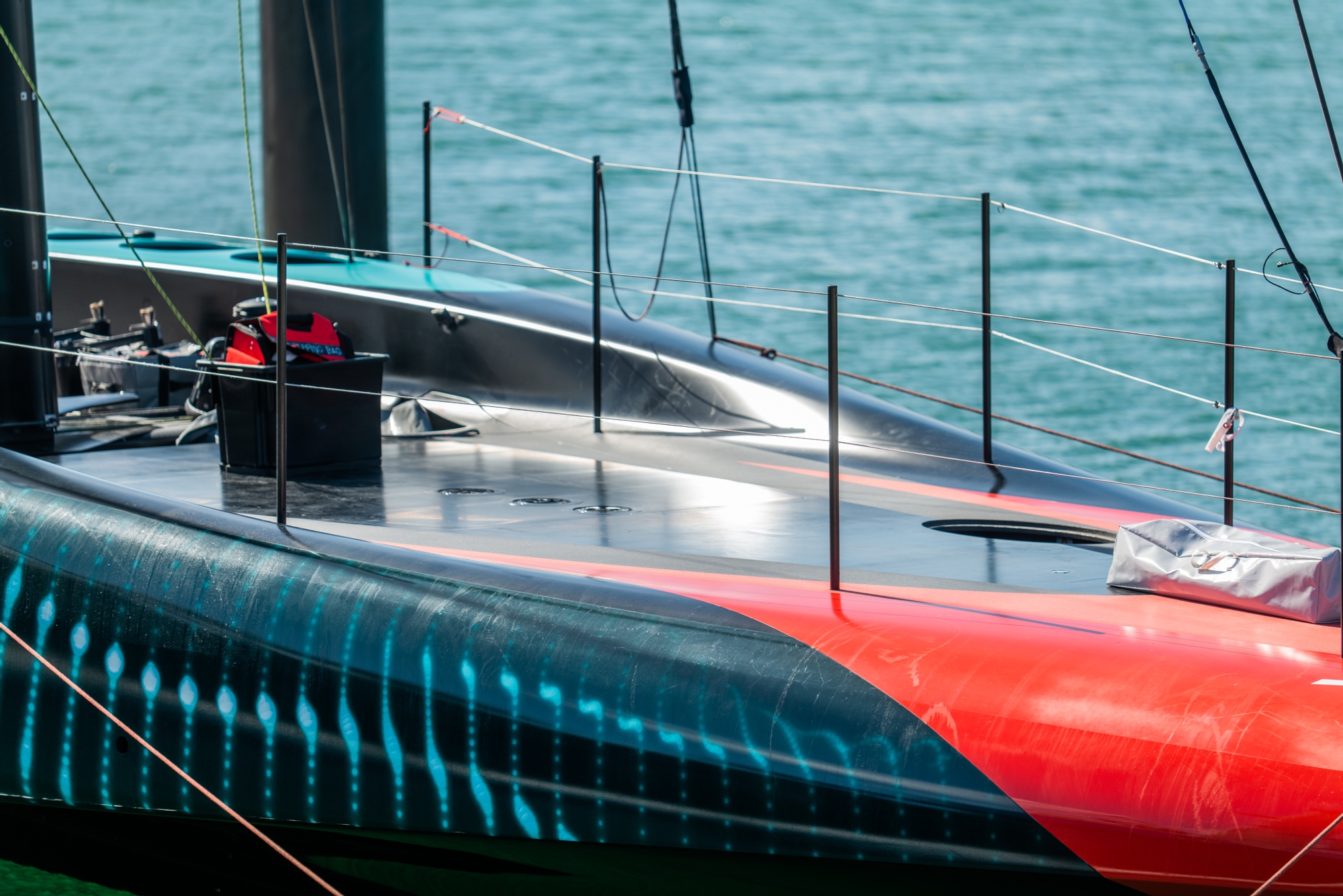 Systems are the primary gain and the whole powertrain of cyclors mounted aft throws up a wealth of issues that no doubt will be refined, re-refined and refined again and again over time. Getting a full sailing team of helms, Flight Controllers and trimmers out and performing at 50 knots + is also a huge added bonus as the time clock clicks over but with no foil testing allowed in the legacy AC75s, the notion of blasting around far offshore, distancing the reconnaissance efforts who simply cannot keep pace in waves, perhaps hints that the most innovative team in the America’s Cup is up to something.