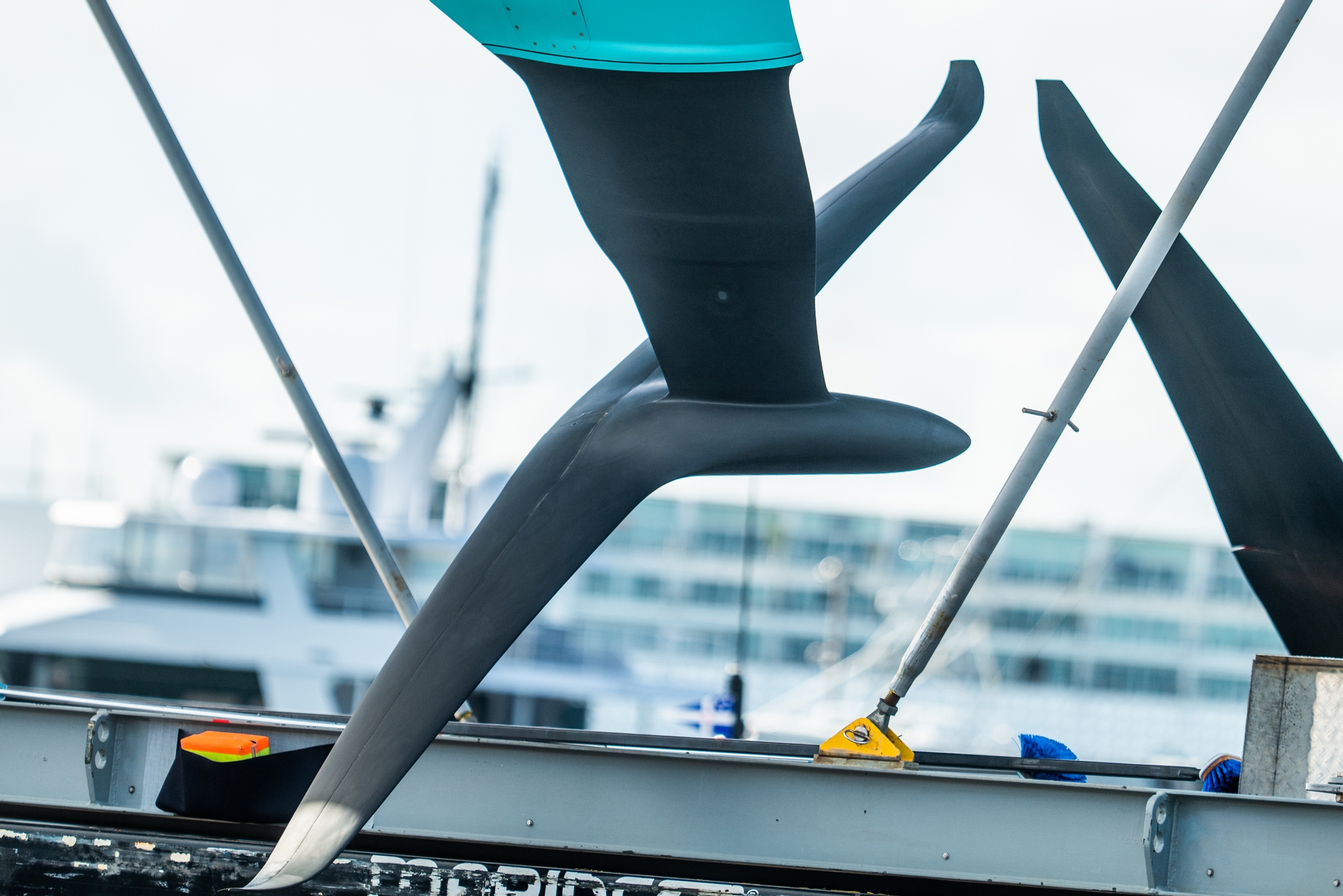She came off her foils about 12.40 in a big puff and looked to feather through it in displacement mode for approximately 5 minutes before getting foil borne at 12.45. Catching up with her after this time in displacement mode for the last part of the beat up into Takapuna a large kink was observed in the forestay just above the head of the Jib.