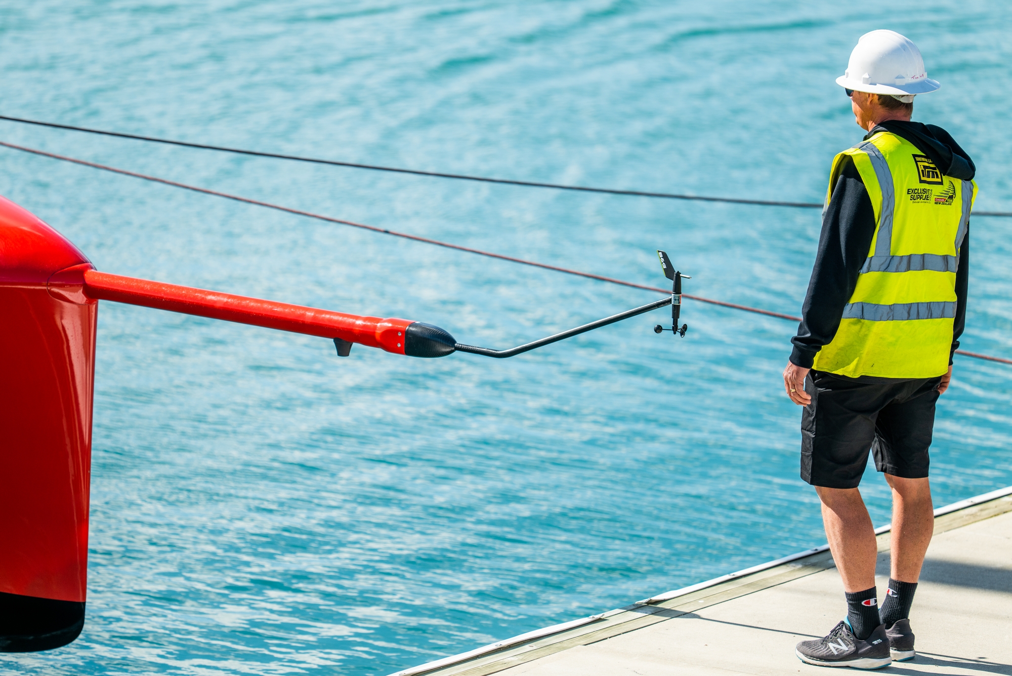 Recon Unit Notes: Te Rehutai was rolled from her shed at 9.45, had the mast on its ball at 10.02 and in the water in the pen by 10.30. The headboards were loaded while alongside the dock, she was eased from her berth and towed down the harbour to about 1NM NNW of Rough Rock where she dropped the tow and took Chase 1 alongside. At 11.43 the main sail was on the lock quickly followed by the #3 jib.