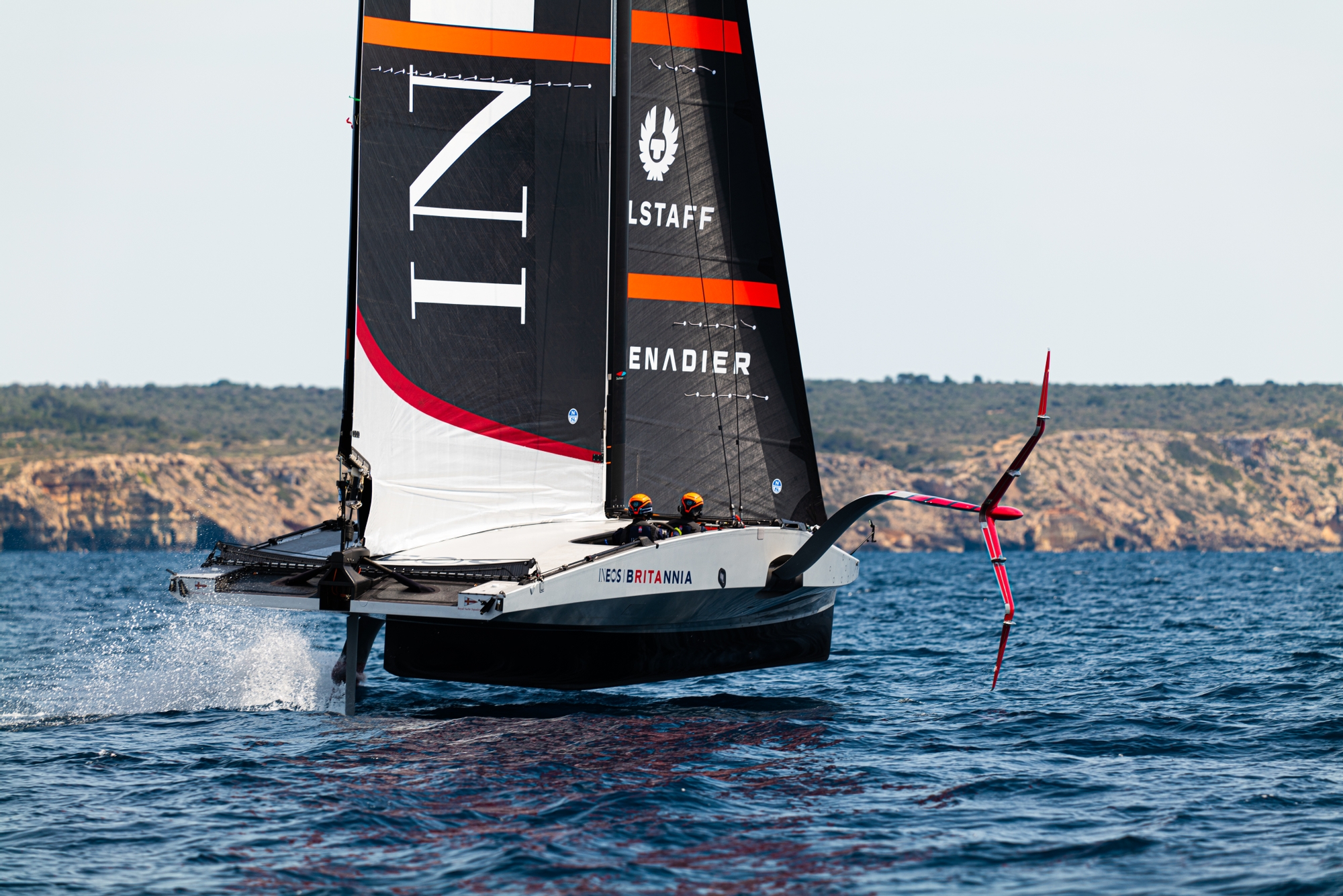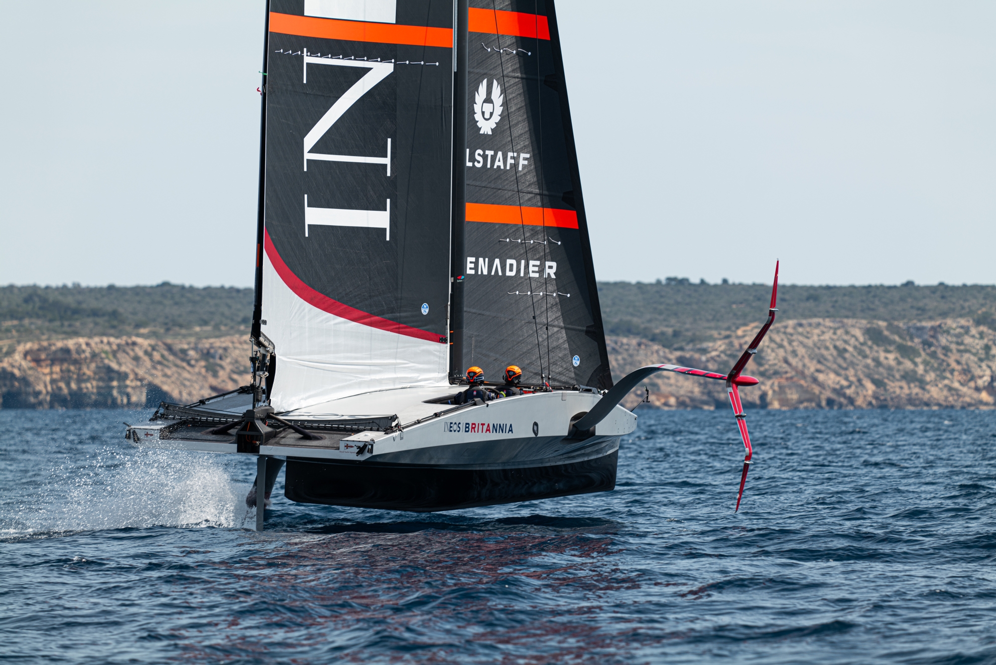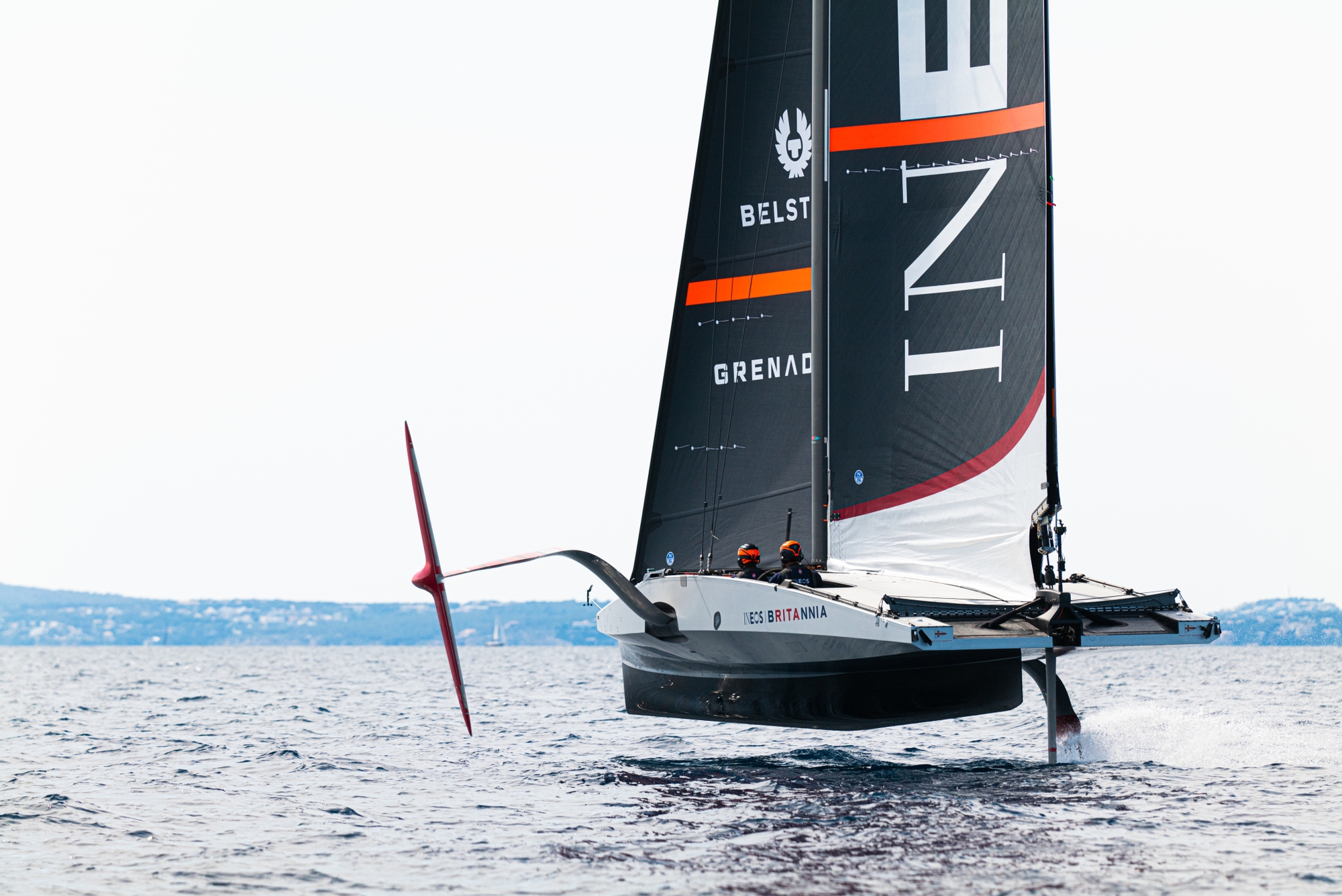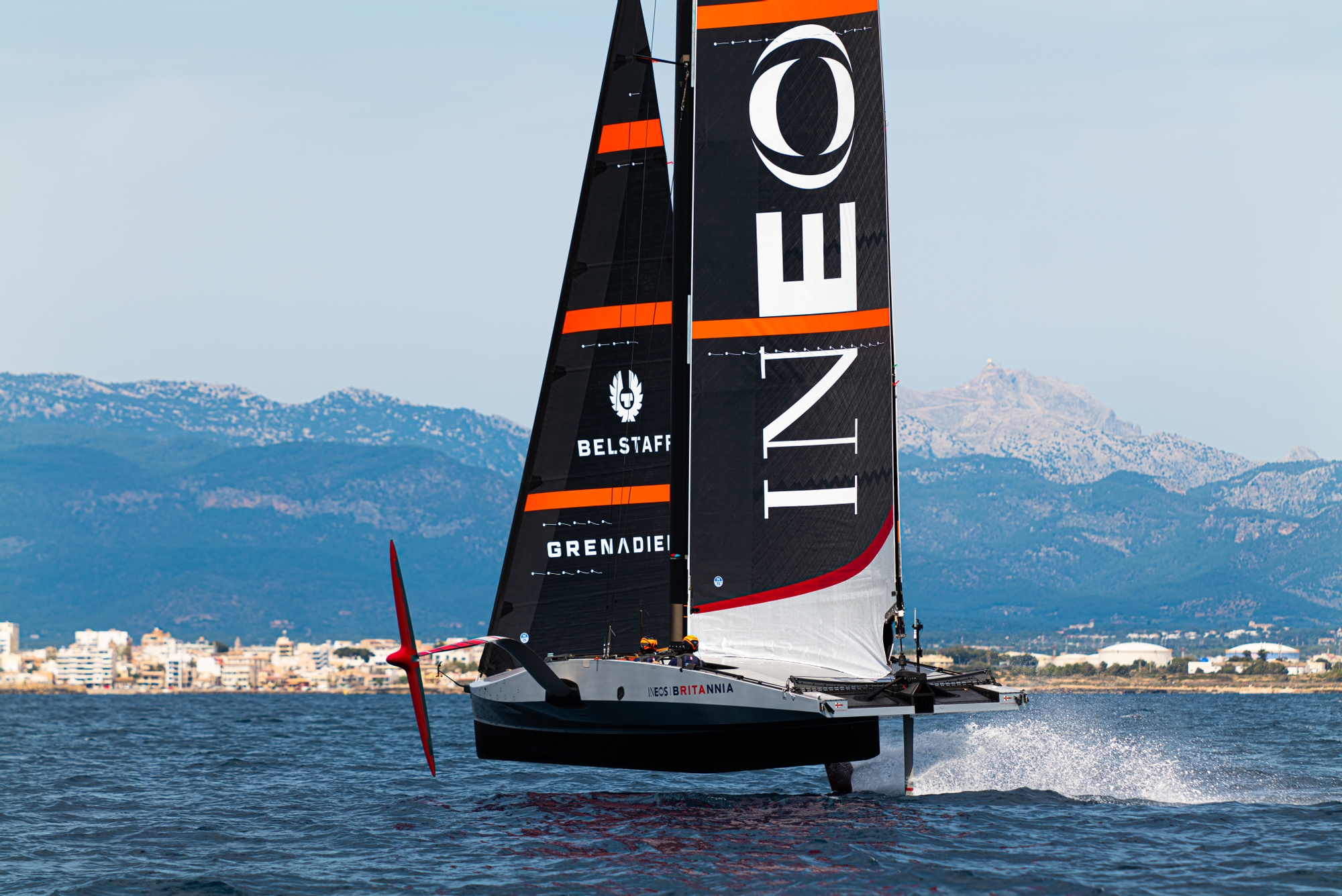 INEOS Britannia’s upward trajectory continued today with an entertaining light airs session out on the Bay of Palma that saw the team rifling through an intensive test schedule and looking remarkably comfortable all round on ‘T6’ the ‘silver bullet’ LEQ12 prototype. Flight was stable, manoeuvres were slick, windward heel was induced both upwind and down, and the sailors looked the most assured since the team introduced the W-Foil concept on their starboard foil arm on the 21st March.