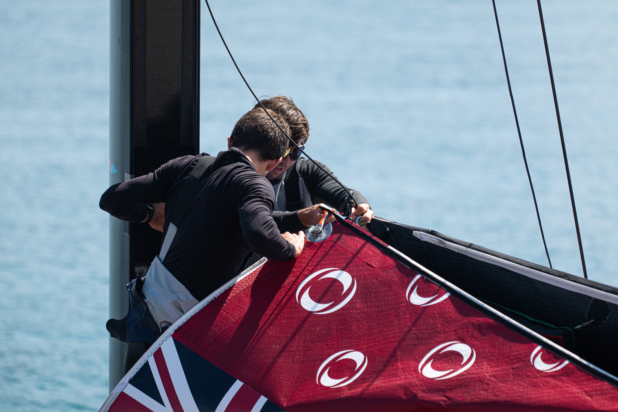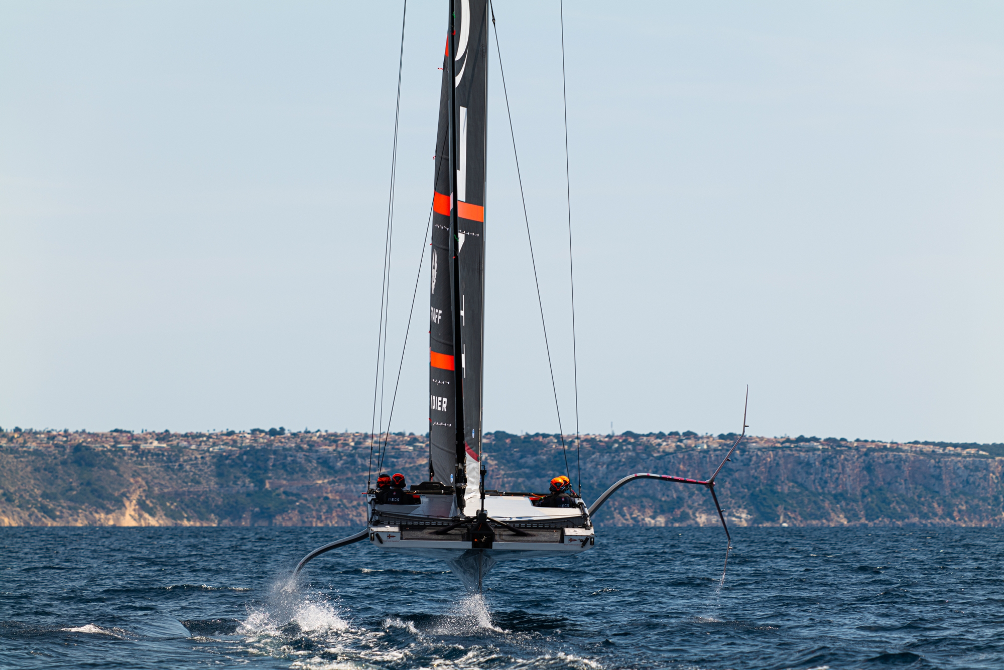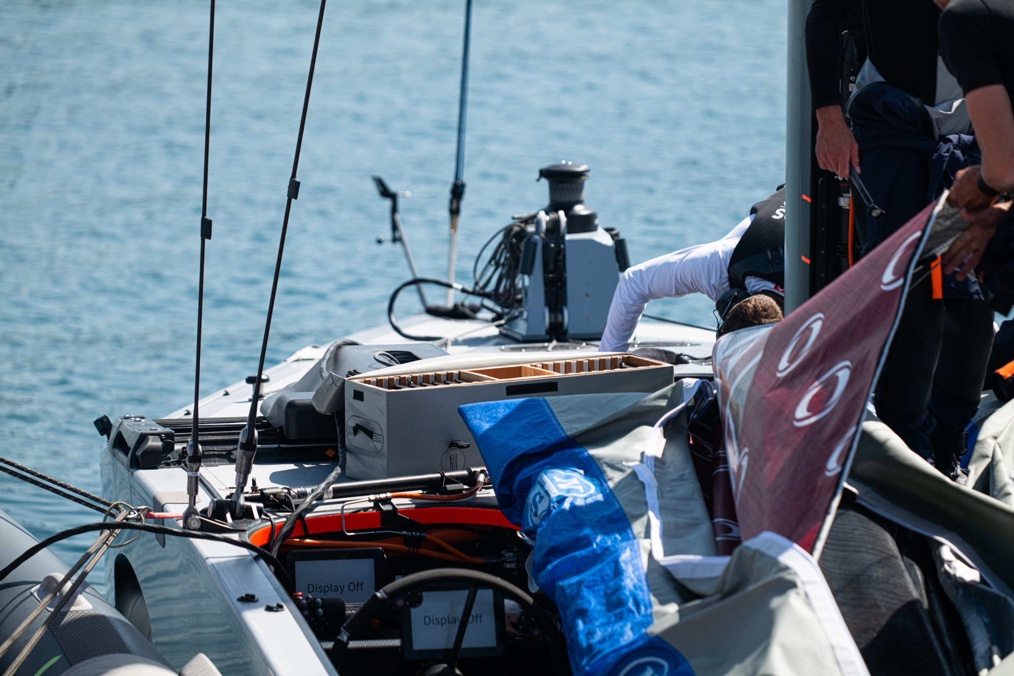 Speaking about the test session and his role as flight controller, Iain Jensen, one of the world’s top-rated foiling sailors and gold medallist in the 49er class at the 2012 Olympic Games gave an insight into his crucial role onboard, saying: “You spend a lot of time looking at the foil and maybe looking ahead a little bit to see what's coming ahead of you but a lot of times looking at the foil when you're flying… it was a light day so we put up a new J1 and had a look at that sail and still learning about the new foil a little bit so trying some take-offs and other things like that…in these boats flat conditions make it a lot easier but it's not what you'll get in Barcelona.”