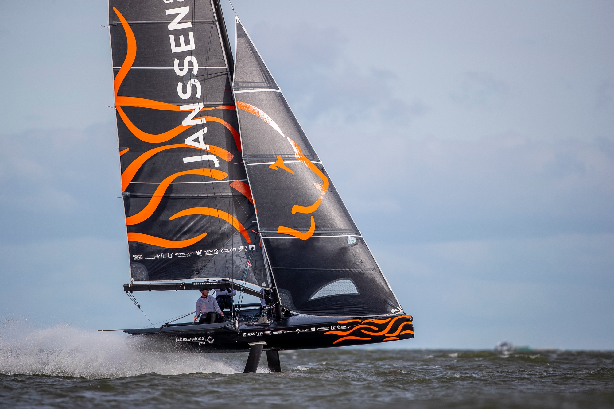 Candidates for the DutchSail youth and Women's America's Cup team train on a 69F