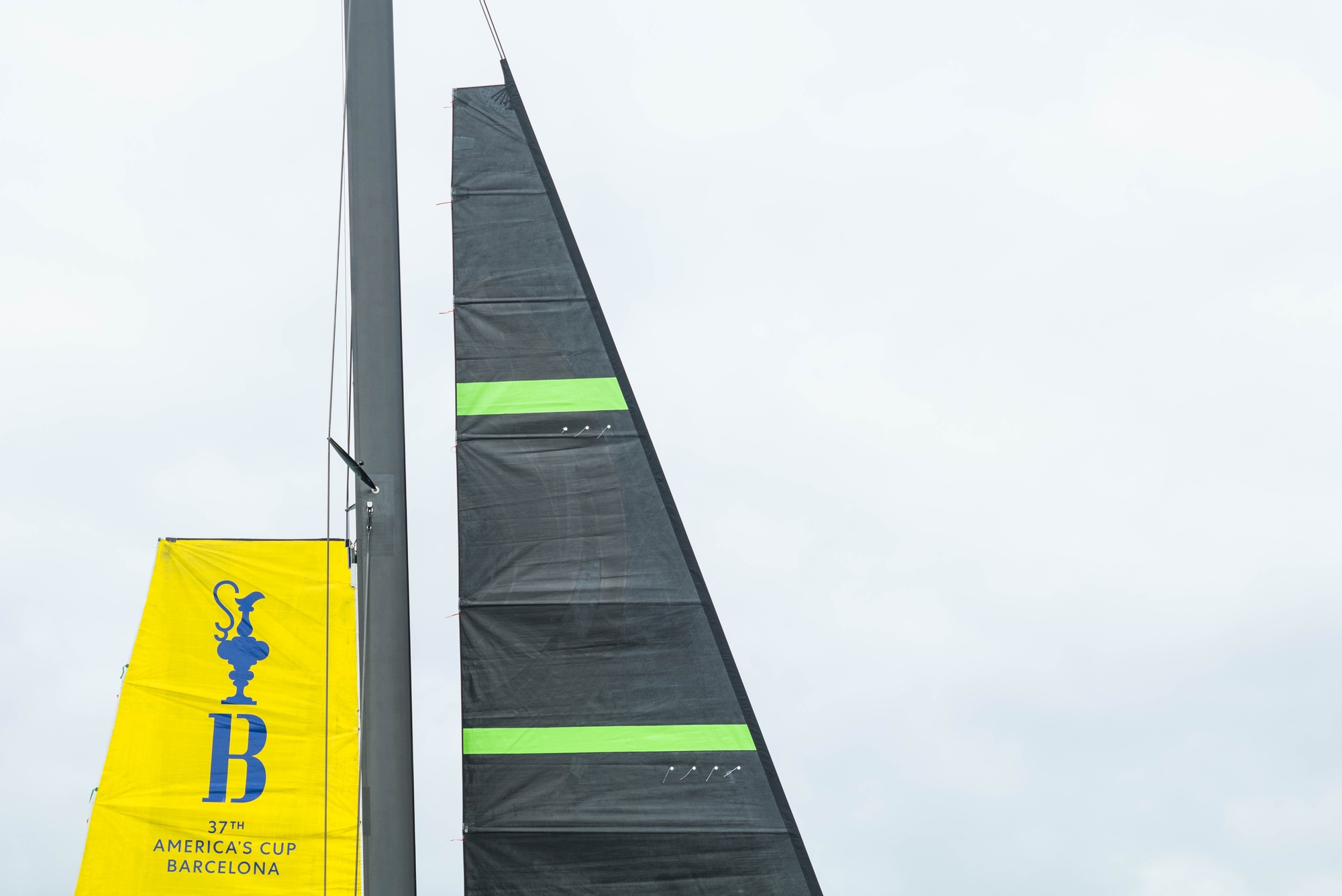 Chase 1 moved off the yacht and the foil arm was inspected. At 11.43am the J5 was hoisted in 18-22 knots of south-westerly breeze and she was sailing again at 11.49am ripping upwind and then down around a virtual course of about 5 nautical miles. After 2 laps she came to a stop off Thornes Bay at 12.18am. The yacht did three more 20–25-minute sailing sessions around a slightly shorter course, in the second session here she did some straight lining with big ride height changes.