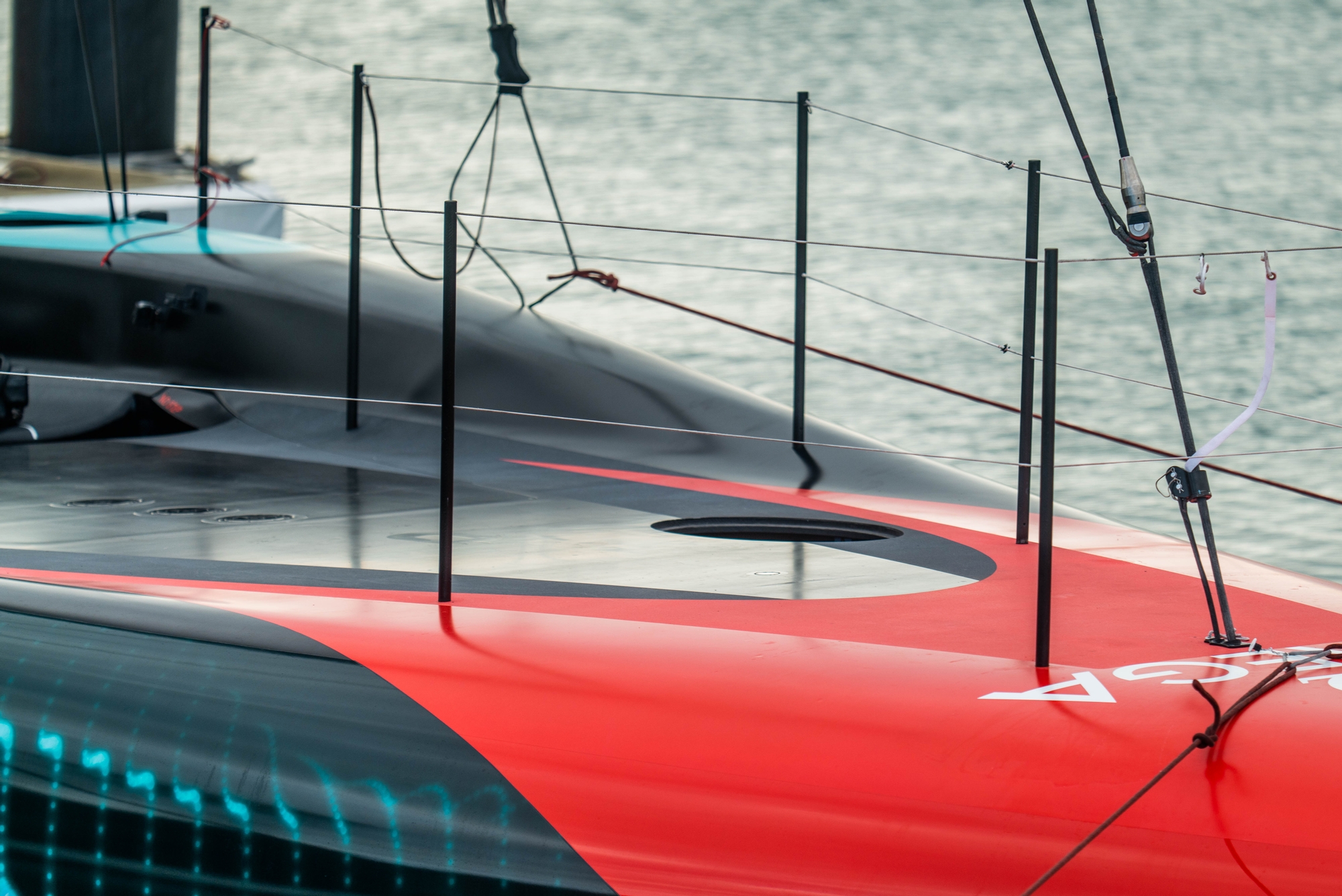 Top speeds on the bear-aways in the afternoon were later confirmed as being in excess of 50 knots and the recon team caught up with Bobby Kleinschmidt, one of the Emirates Team New Zealand Naval Architects who was onboard today, just behind the helms, checking out foil immersion through the waves, cant angles, flap angles and cavitation points. For the Kiwis it’s all about sailing to the simulation targets and on this performance, they look to be hitting the high numbers. Certainly, no hint of doubt from the design team. Emirates Team New Zealand look very strong in every department.