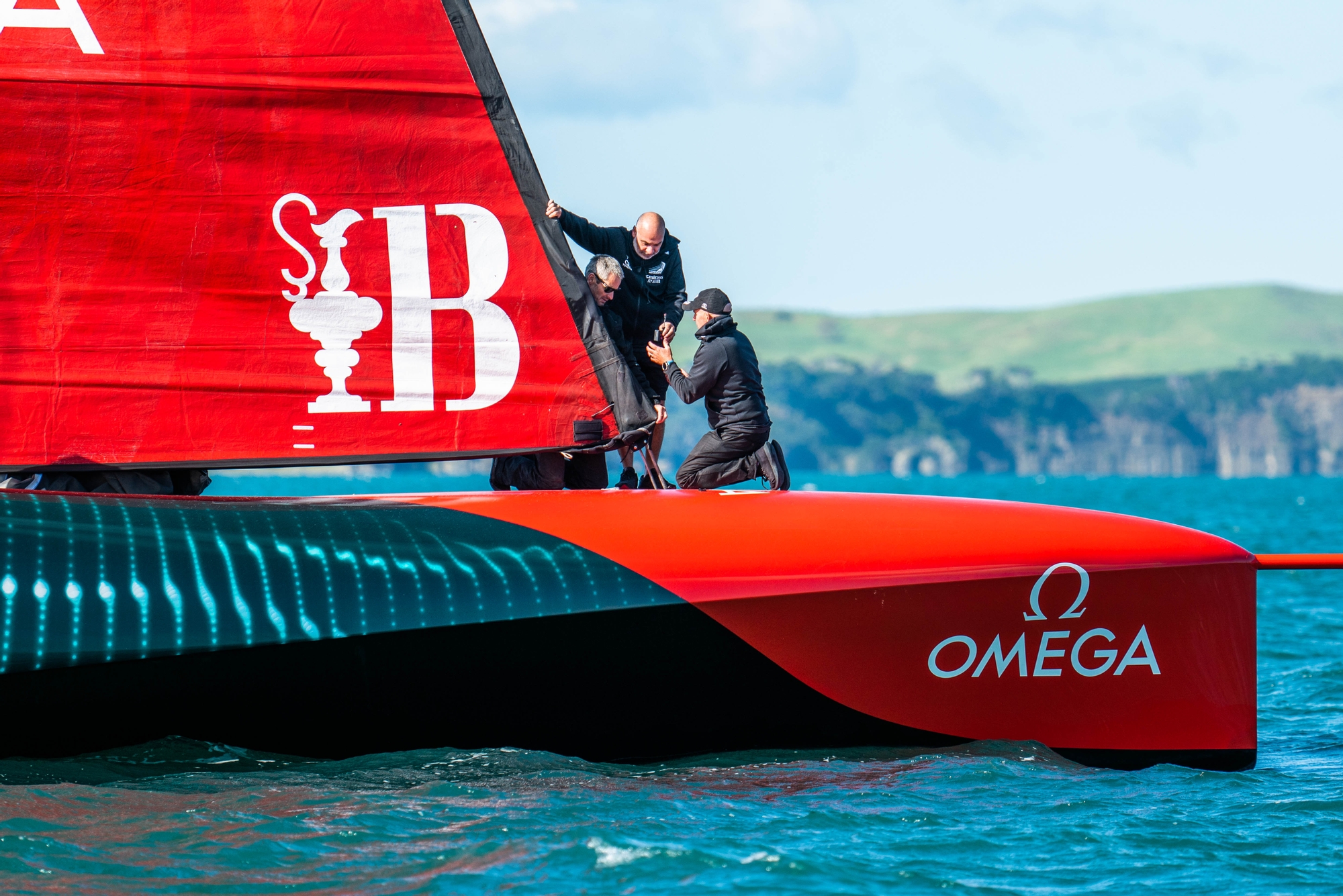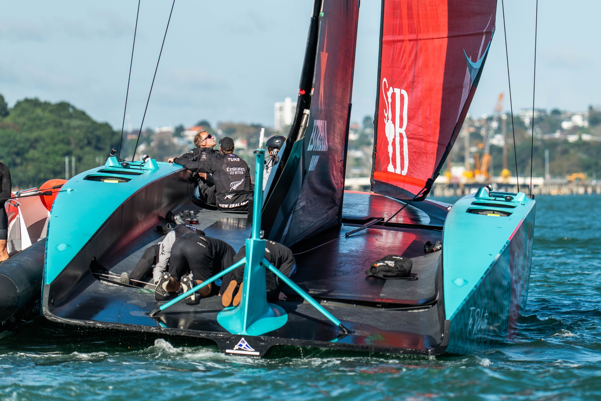 After a week of, at times, monsoon rain that yielded to persistent inclement weather patterns and strong breezes out on the Hauraki Gulf, Emirates Team New Zealand had a sense of relief as Friday produced near-perfect conditions to take to the water in ‘Te Rehutai’ – the Cup winning boat, much modified, from AC36.