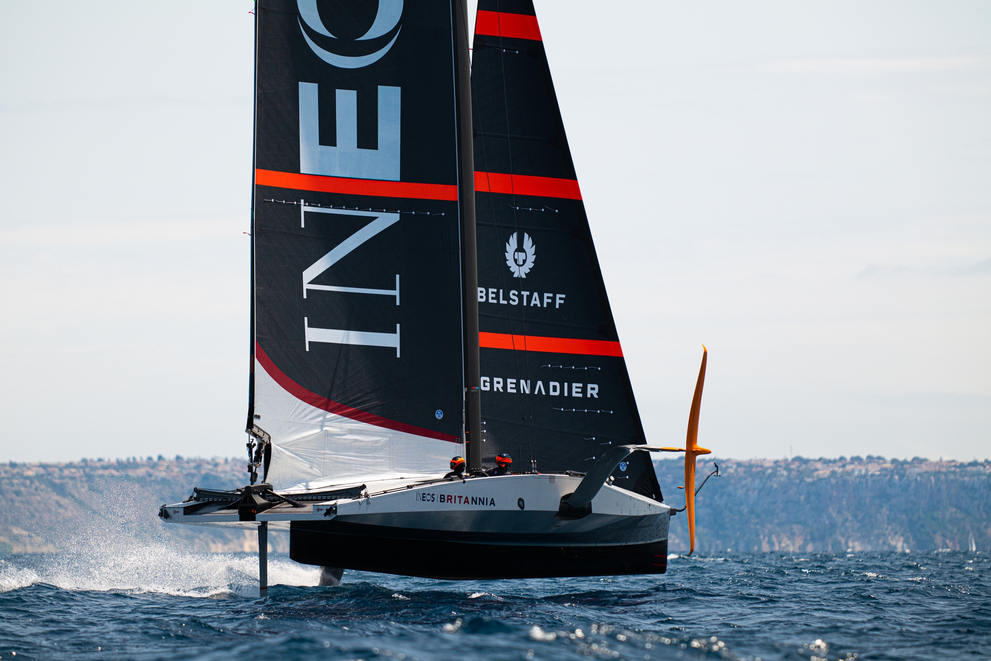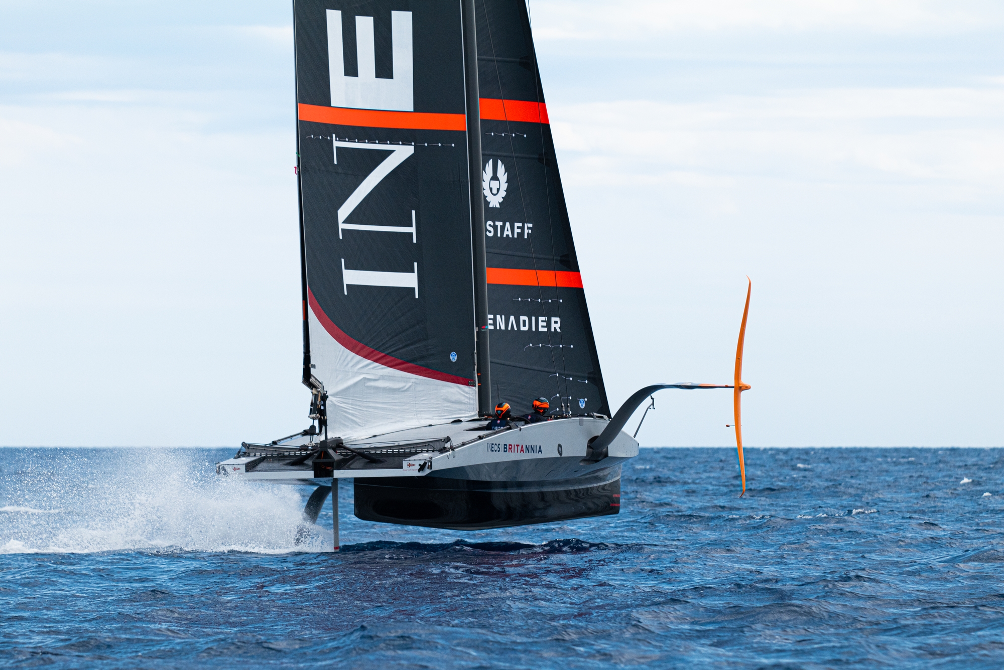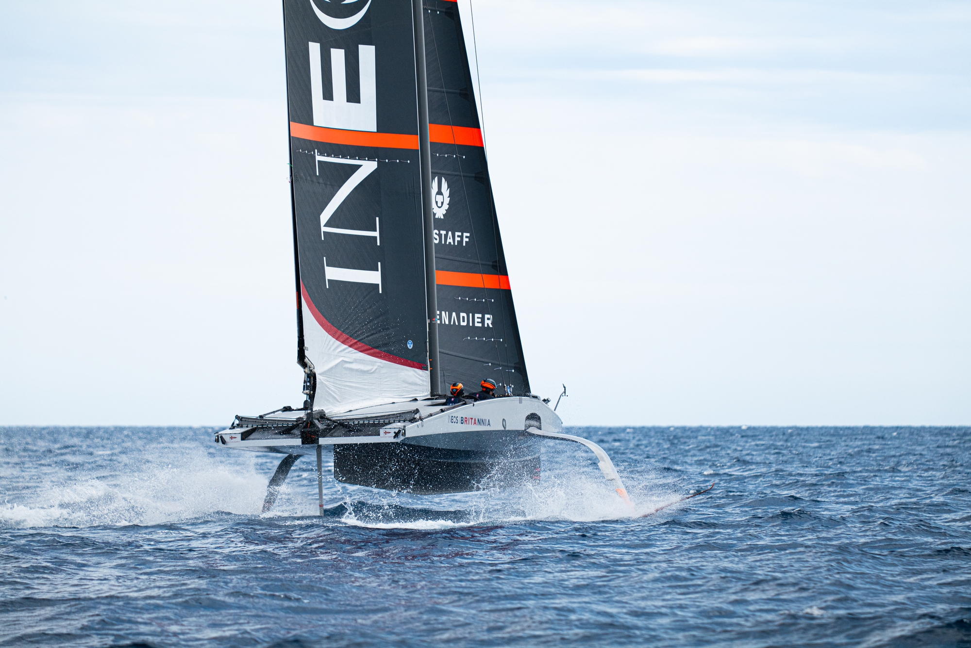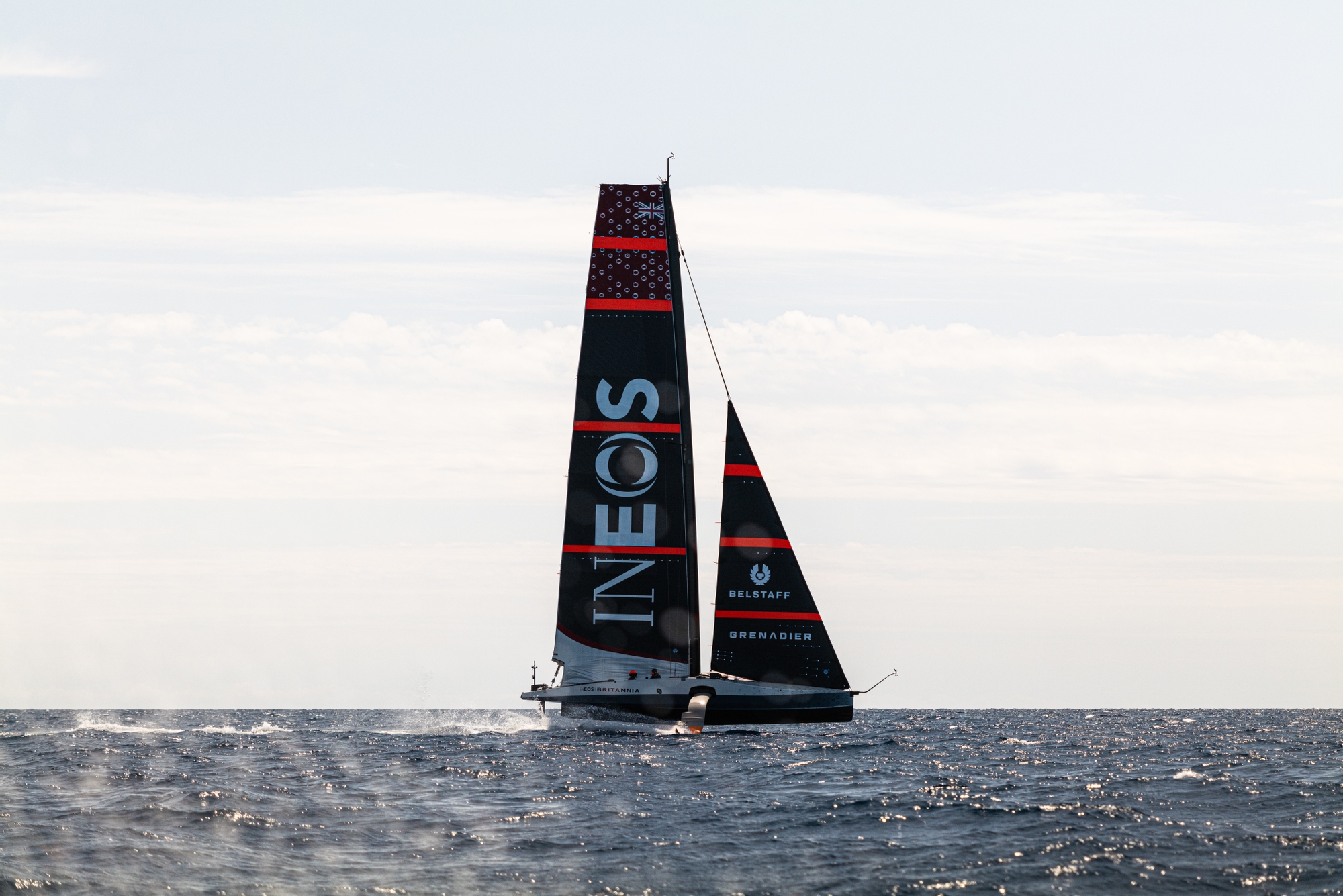 On-Water Recon Notes: INEOS Britannia's third and final day of sailing this week was a barnstormer of a day sailed in a south easterly breeze that built to 16-18 knots. After rolling out at 1100, launching at 1130, and docking out three minutes early at 1257 the British team had the sails up on their T6 LEQ12 test boat (M1-2 mainsail and J4-1 headsail) by 1325.
