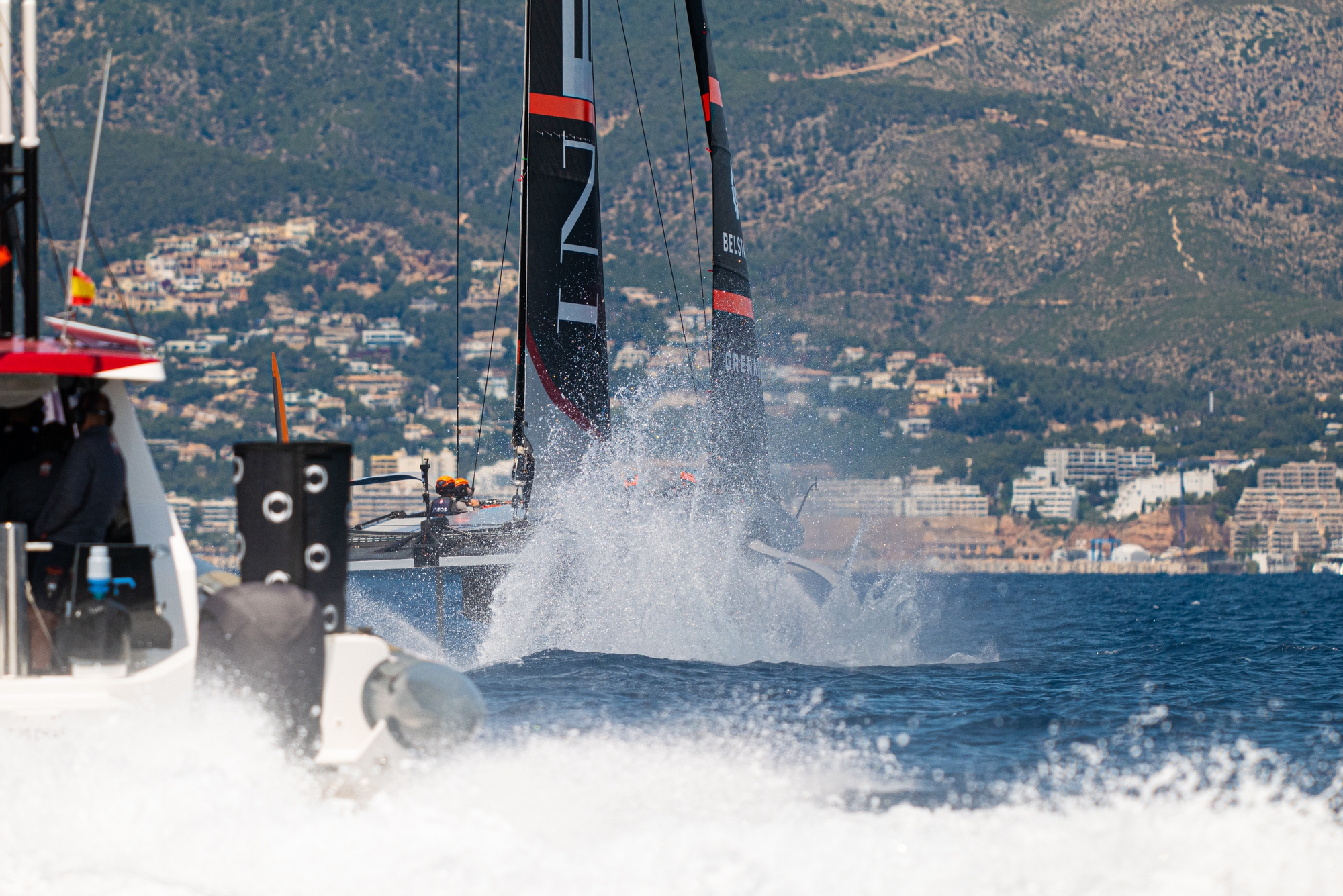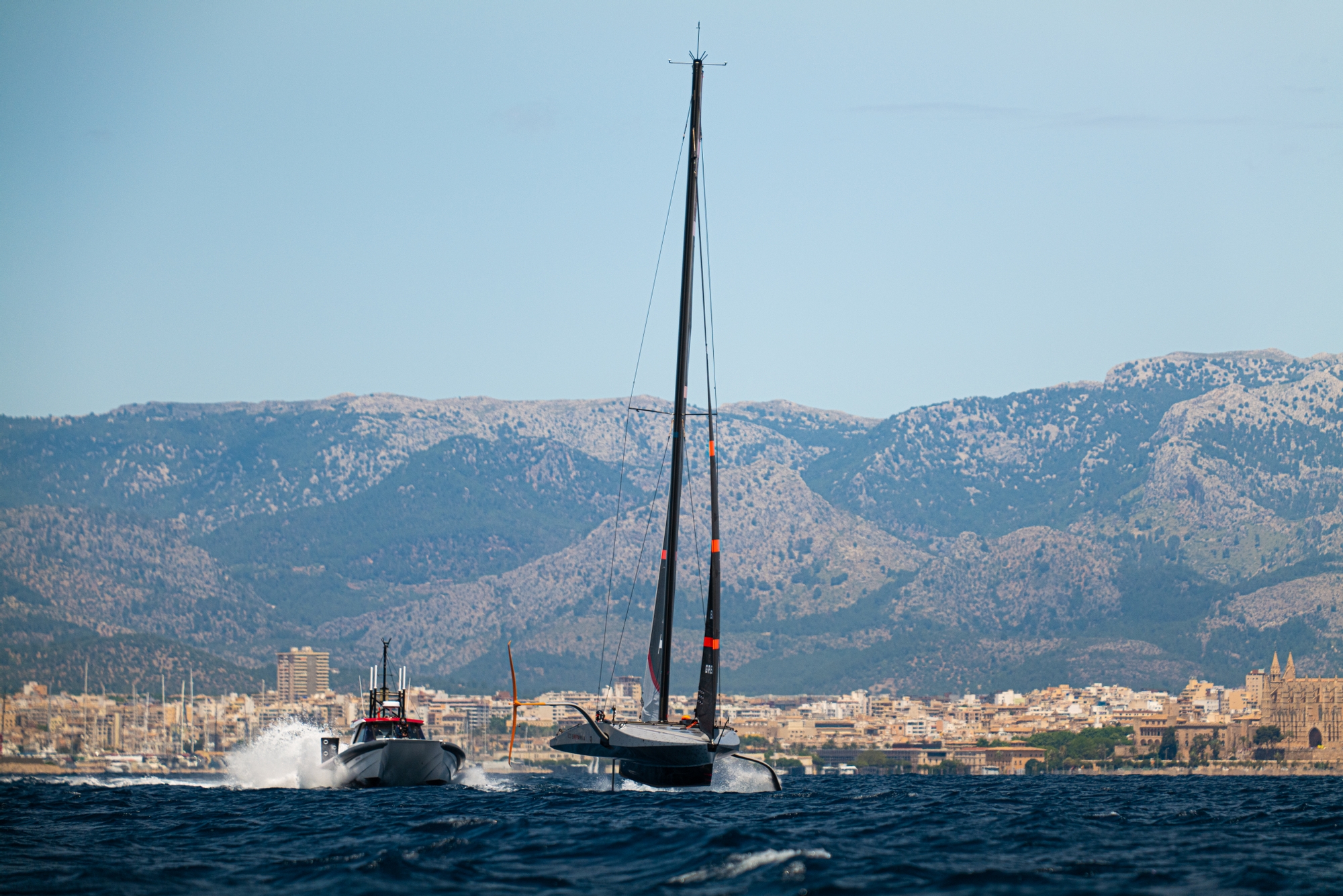 It was not possible to ascertain whether there was any noticeable speed difference between the two foils. The session concluded with a short series of downwind high-speed bear aways and round ups before a final blistering run to the team's regular start/finish zone off Palma Cathedral where sails were dropped by 1645.