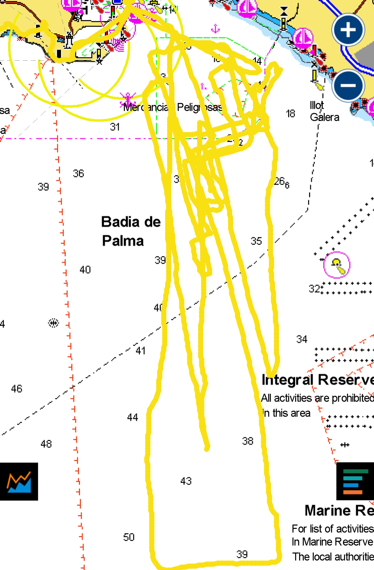Later the focus switched to fast straight-line sailing with the crew first sailing upwind on one tack from the Palma city front, south out of the confines of the Bay, where – after a tack or gybe – they would sail the reciprocal angle back downwind. After three rounds of this a stop was made for new batteries and to change from the J3-2 to the J4-1 headsail (wind now around 15 knots with gusts to nearly 17).