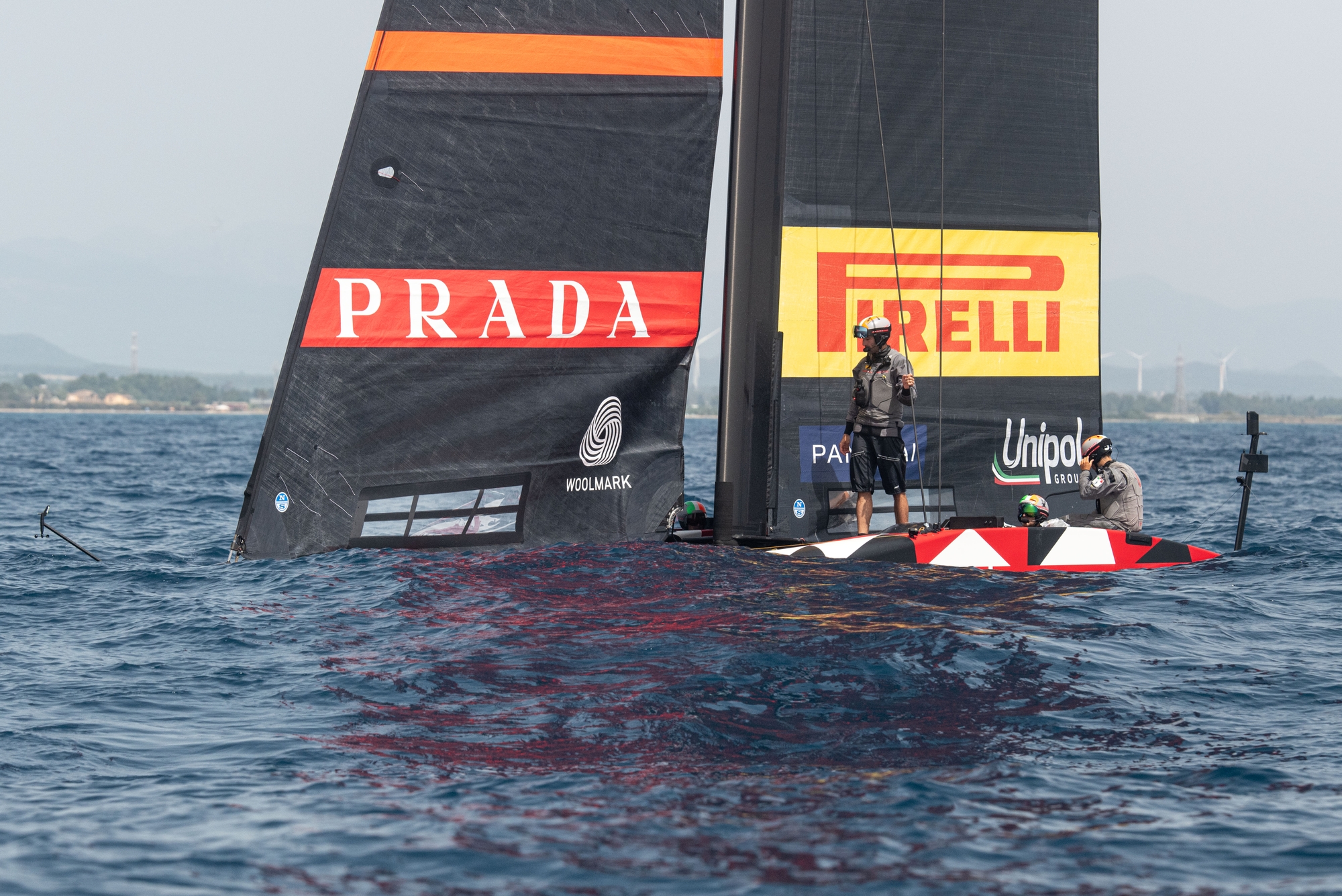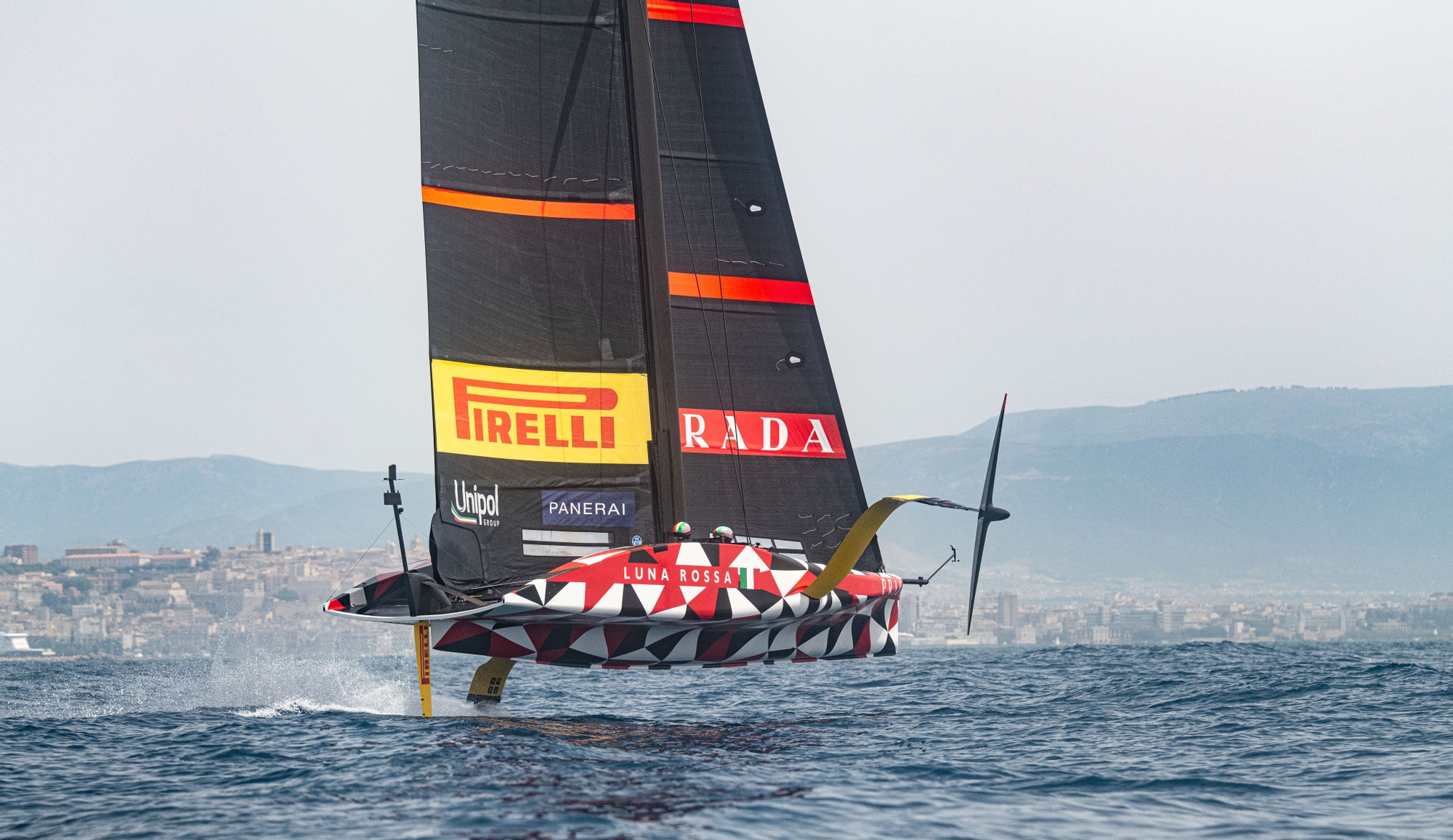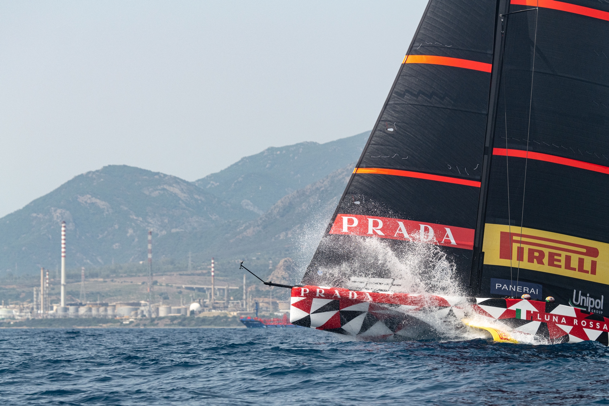The summer is well and truly in down in the Mediterranean climes, and beneath sunny skies with the temperature at 26 degrees, Luna Rossa Prada Pirelli had a testing Cagliari day where the Gulf just wouldn’t yield consistent breeze but delivered a Barcelona-type chop that really tested the Flight Controllers.
