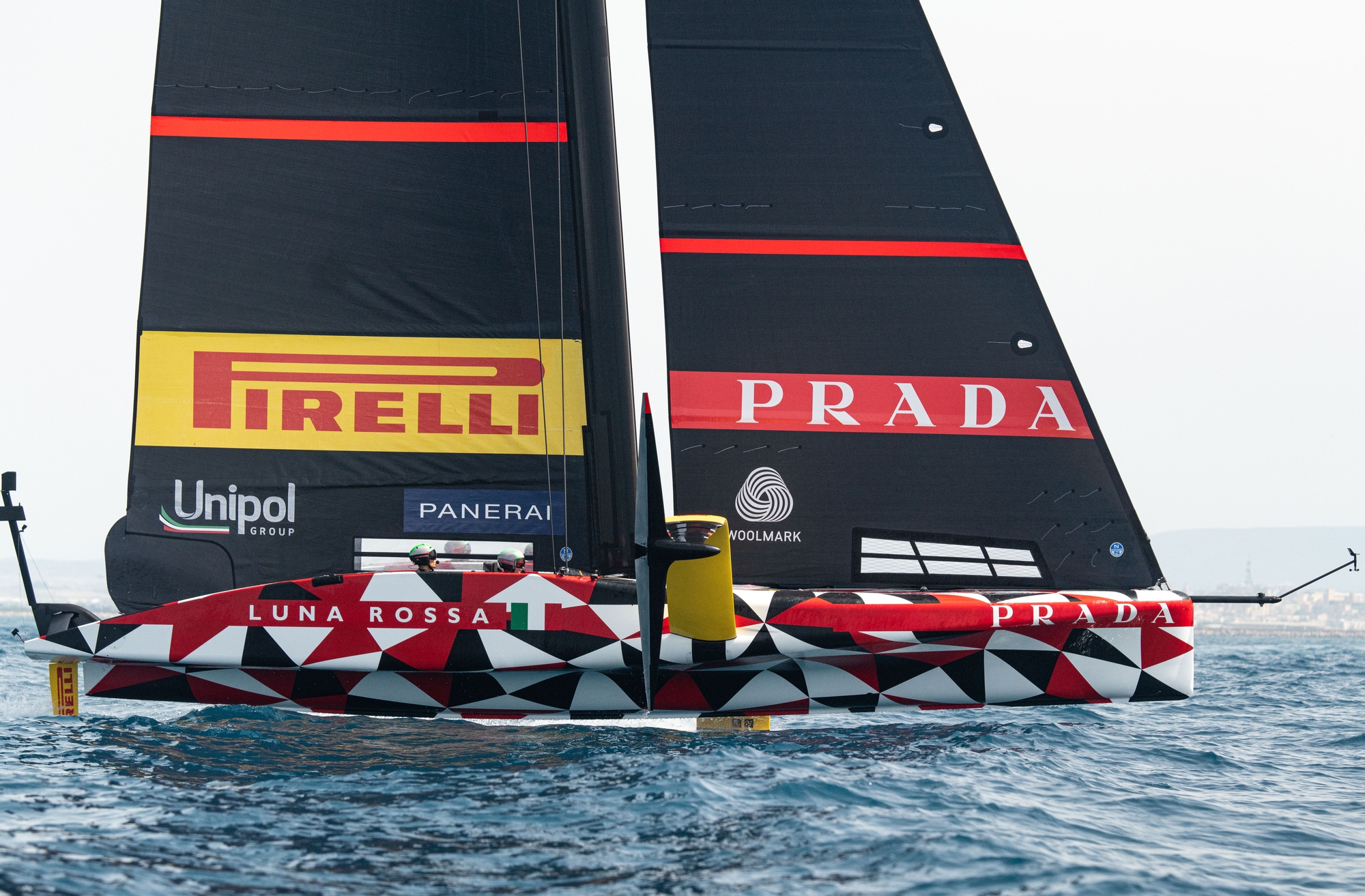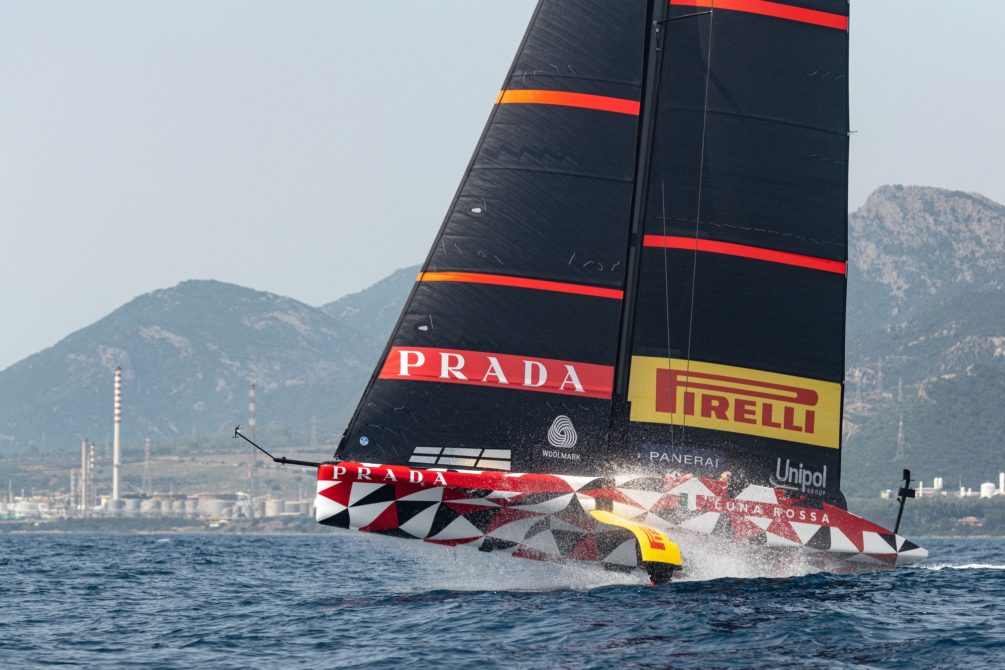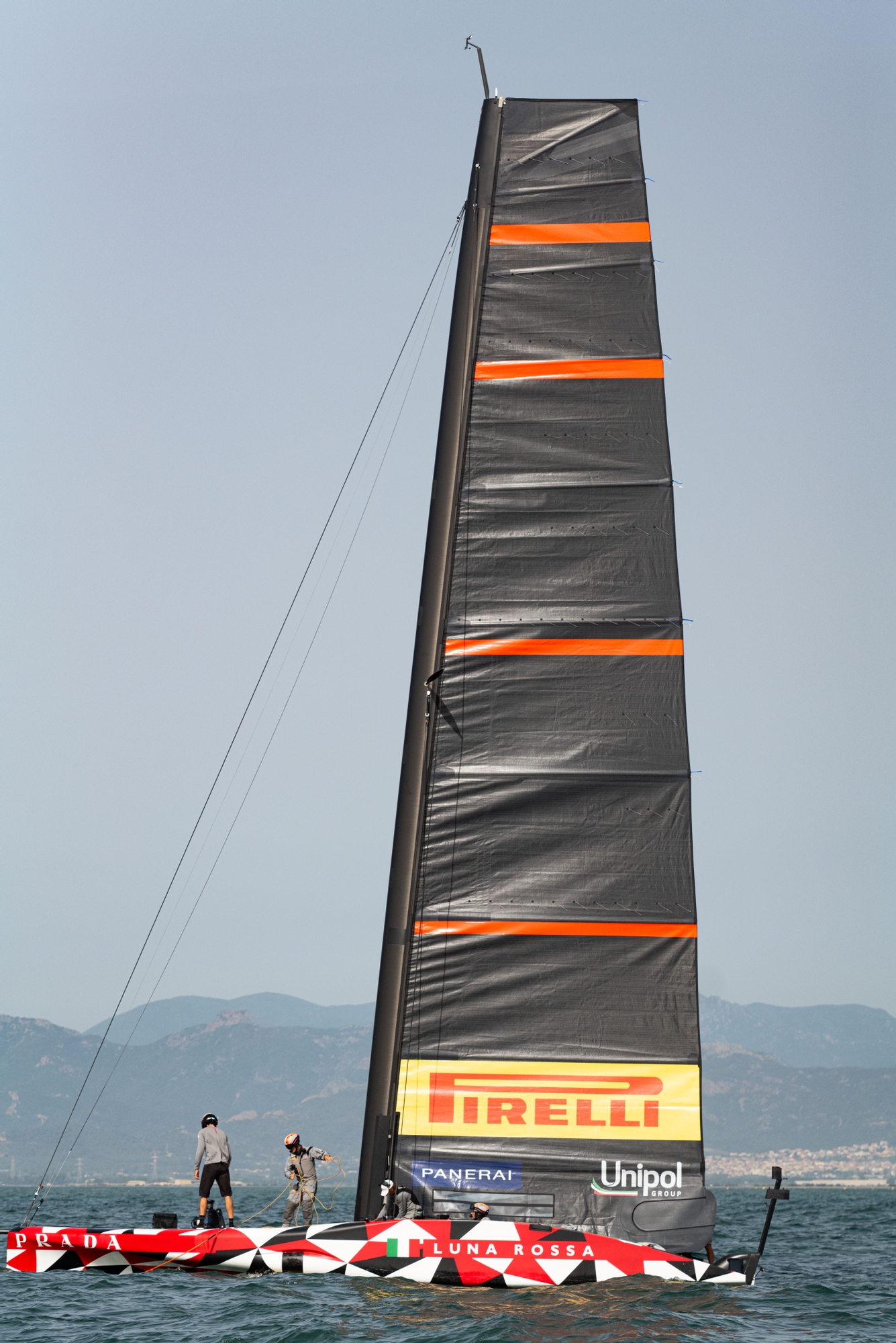 The summer is well and truly in down in the Mediterranean climes, and beneath sunny skies with the temperature at 26 degrees, Luna Rossa Prada Pirelli had a testing Cagliari day where the Gulf just wouldn’t yield consistent breeze but delivered a Barcelona-type chop that really tested the Flight Controllers.