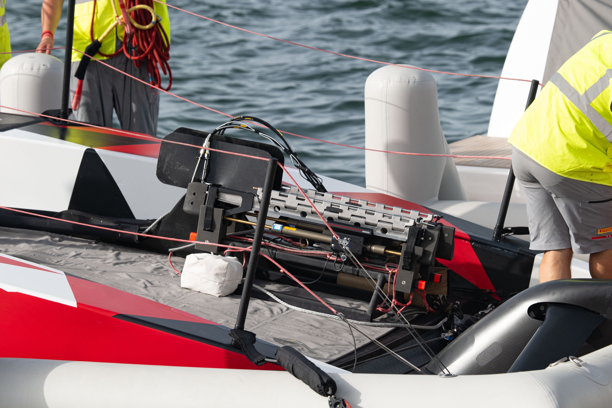 On Water Recon Unit Notes: Luna Rossa Prada Pirelli rolled out the LEQ12 at 08:15 scheduling dock-out for approximately one hour later. Beside some minor modifications and previously seen markings on wings, the boat seemed to run the usual configuration.