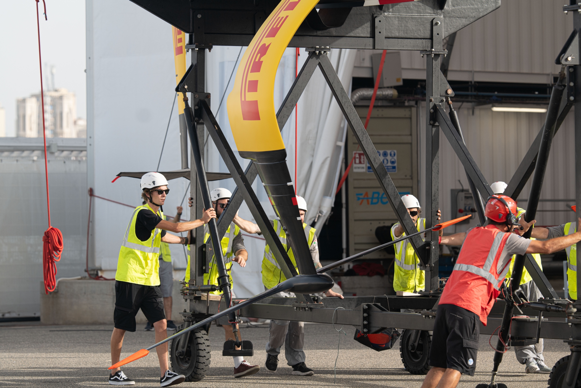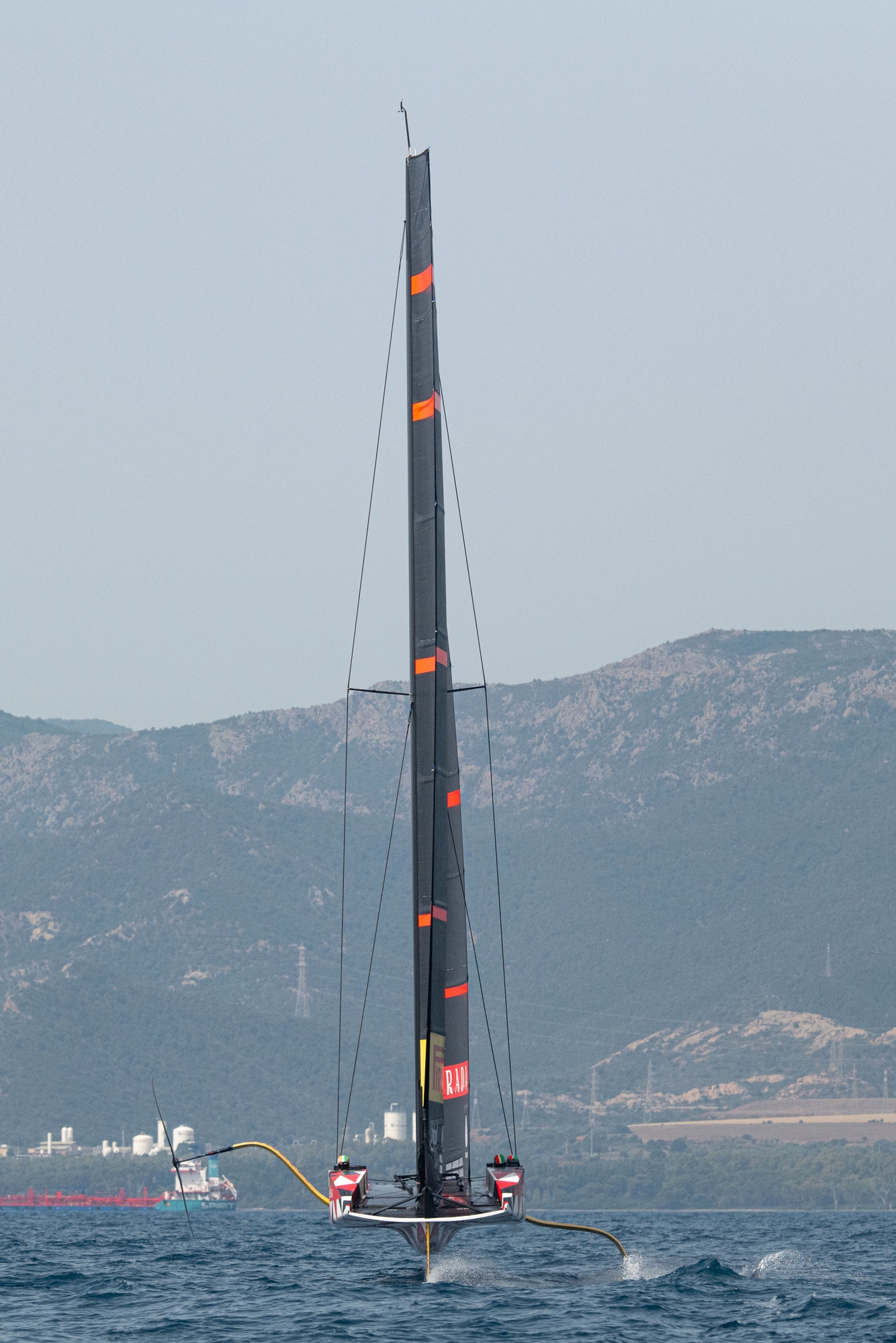 Speaking afterwards, Andrea Tesei alluded to the fine lines that the team were dancing on this busy and testing day: “We tried to get the conditions we think we're getting in Barcelona, with sea state and very light breeze, so the focus was handling and learning the boat and seeing how she behaved in this hard condition. You obviously need to be very precise in the handling and keep a really nice equilibrium to glide for the waves and not stall the foils and drop into the water… the forecast in the beginning should've been actually not too light a day. We planned for an early dock-out to get the lighter part and set into the sea state that was left over from yesterday but in the end the stronger breeze never filled in…so we just sailed where we saw the best pressure on the Gulf.”