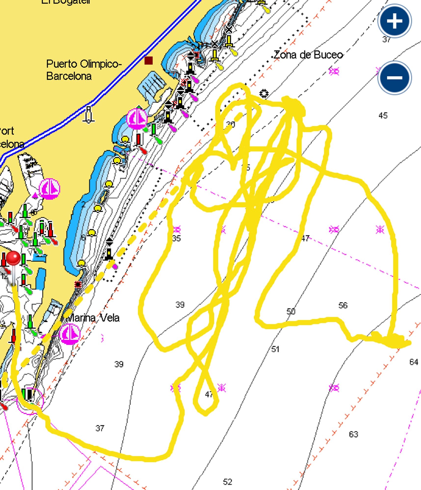 When talking about the sailing conditions, today we had a classic sea breeze Garbi, shifting to the right persistently during the day, starting on 180 and reaching 205 on the afternoon. As regards intensity, building during the day, commencing with 9 to 10 knots, and ending the day with 14 to 15 knots on average, measured at sea level.