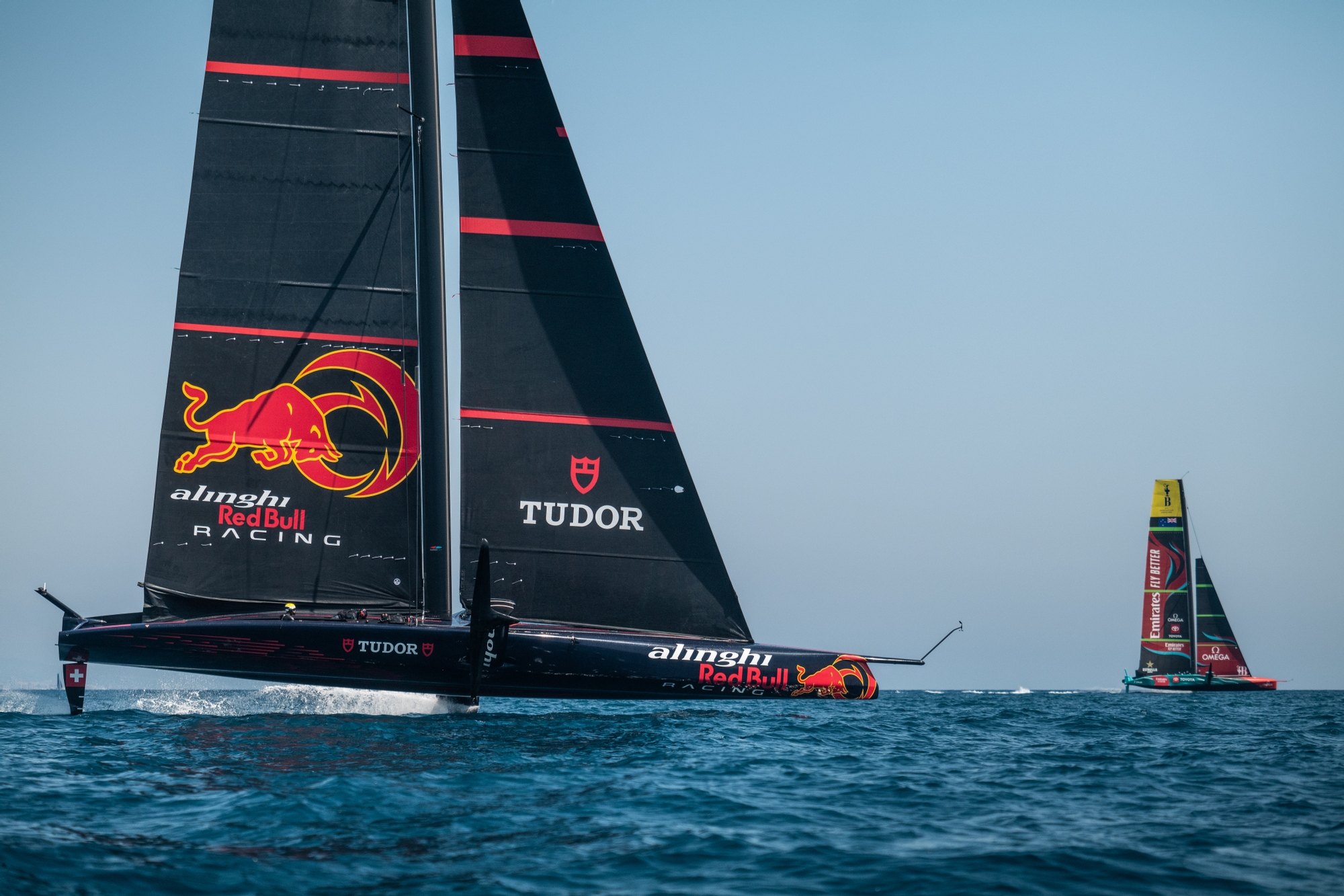 Today's session was planned to continue testing on their foils and aero with higher and different wind conditions but it ended being similar to yesterday's conditions.