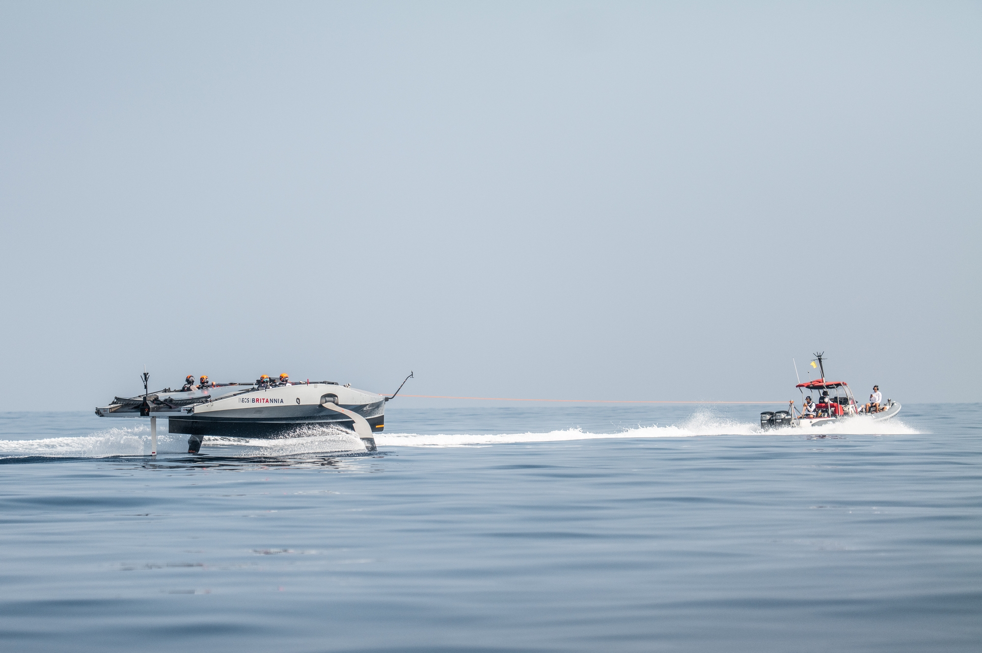 The yacht was towed eastward at stepped speeds between 20-30 knots, 6.5 Nautical Miles from the port entrance. Throughout this phase, the crew played with ride height and foil arm cant angles, notably without altering the yacht’s pitch. Subsequent to this distance, the team made the decision to return, towing back towards the base.