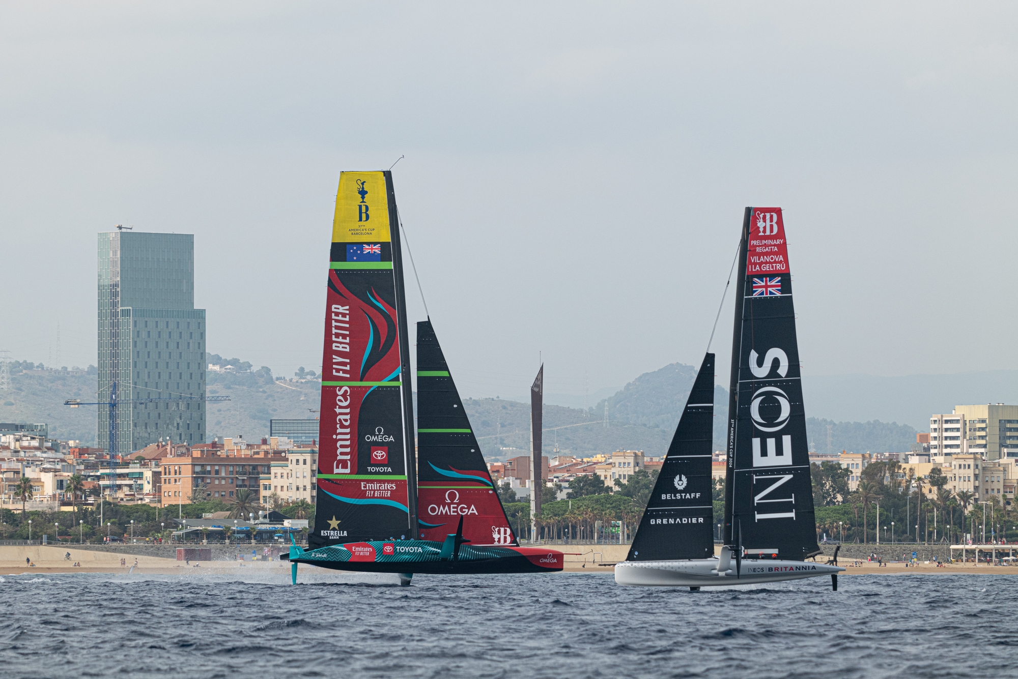 INEOS Britannia meanwhile were busy flying around the La Barceloneta beachfront in their AC40 and from background recon shots, certainly looked on the money and the team will be looking for a competitive performance in Jeddah, Saudi Arabia, at the end of November. Orient Express Racing Team punched out late in the afternoon also and again, this is a team to watch in this America’s Cup cycle, with much Gallic flair and sheer sailing ability, they will always cause an upset. No sign of Luna Rossa Prada Pirelli today nor Alinghi Red Bull Racing.