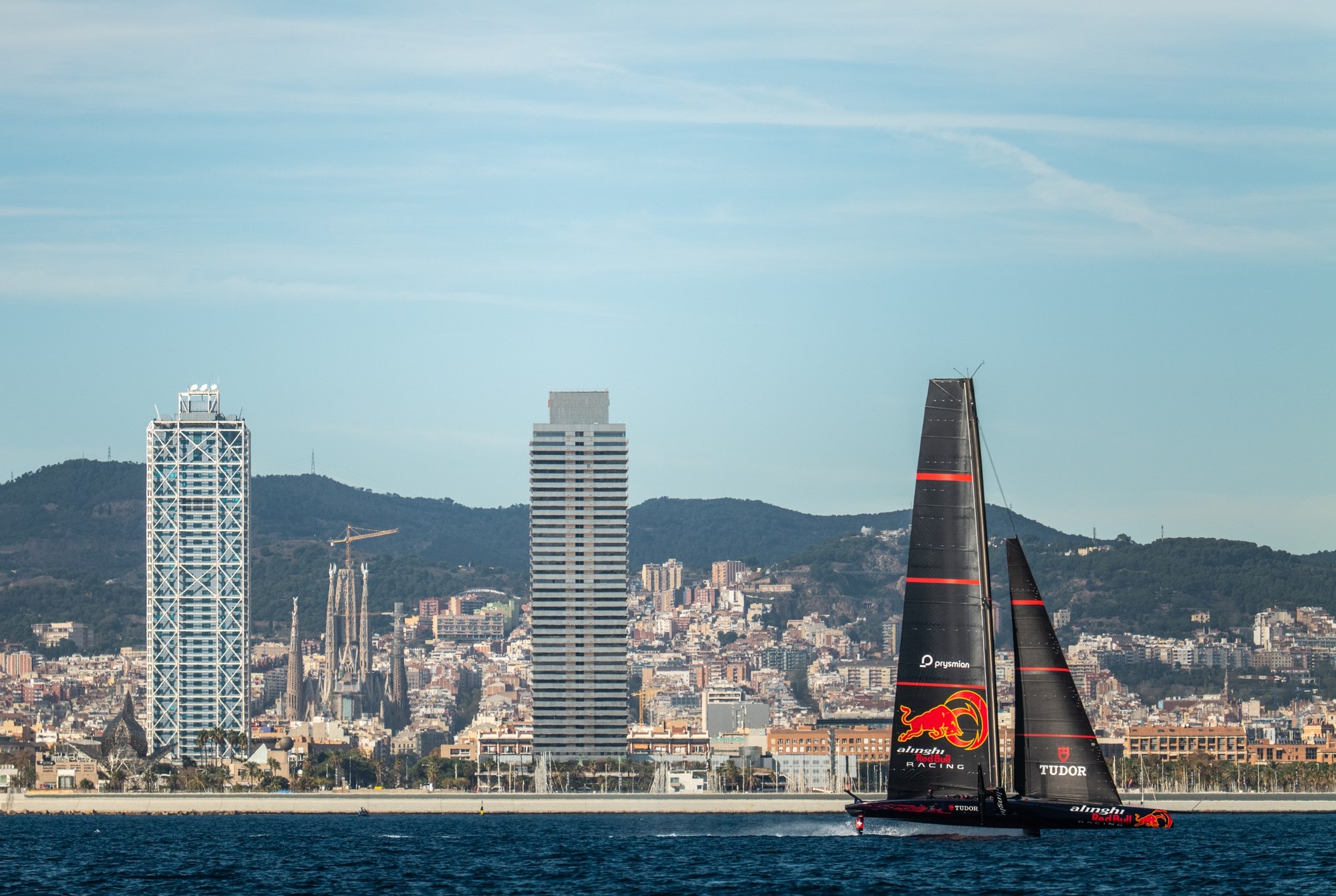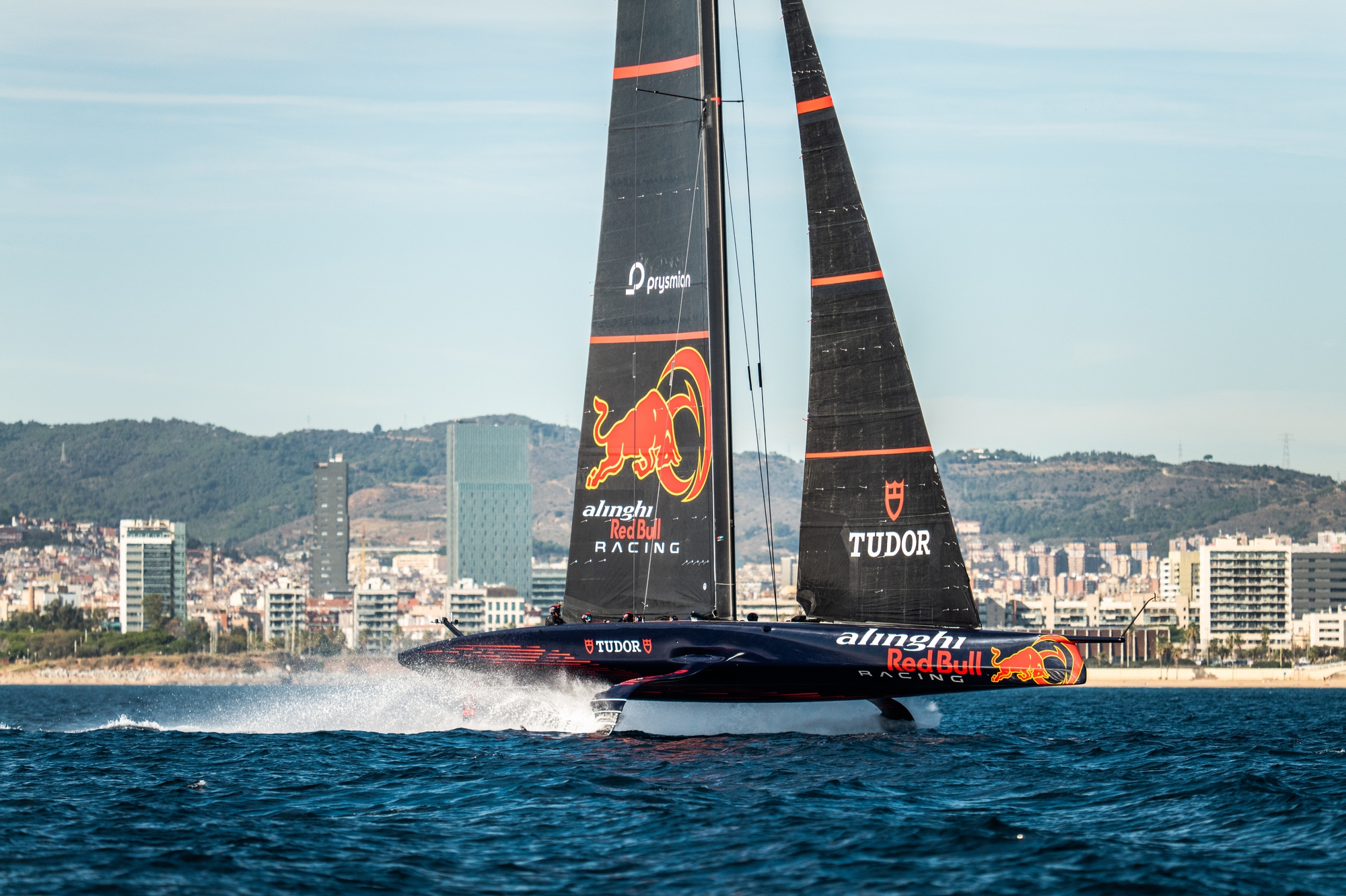 The casual spectator strolling the La Barceloneta beachfront or grabbing a quick lunchtime bite at the various cafes and beach-bars today would have been spoiled for spectacle with the truly awe-inspiring sight of not one, but two, AC75s blasting around at warp speed in a temperate 21 degrees Celsius and glorious sunshine.
