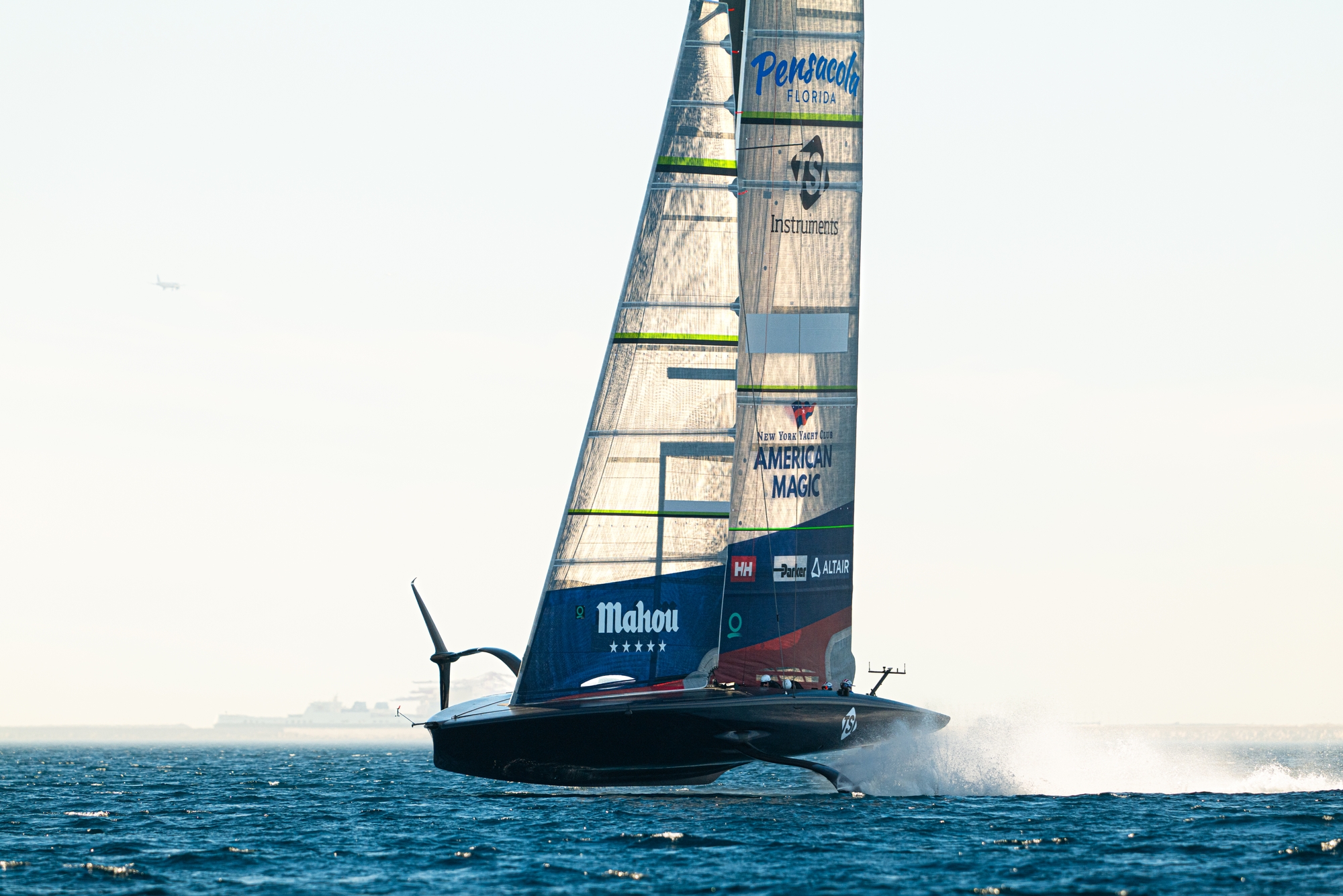 Trimming-on, it was a cautious first flight with Paul Goodison and Lucas Calbrese taking the wheels today as Tom Slingsby was away collecting the World Sailor of the Year title for the third time at the World Sailing Awards in Malaga but once up and flying, ‘Patriot’ looked sublime, and the crew-work just got slicker and slicker with more commitment through the tacks and gybes and better transitions between the helms.