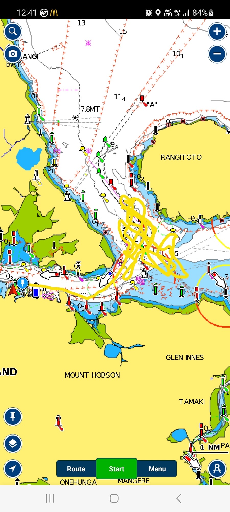 Sails were hoisted off North Head, going with the M2 and J3 to start. Average wind speed was around 13-14 knots with gusts to 16 at times from around 165-170 degrees. The team started sailing at 10:04 and kept their entire training session in the vicinity of the Rangitoto Channel, and as far up to Bastian Reef area off St Heliers.